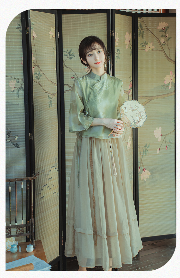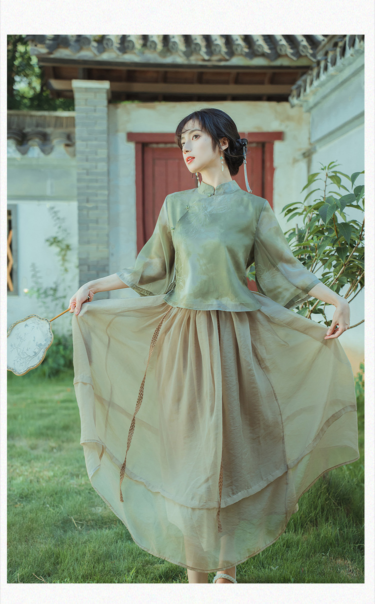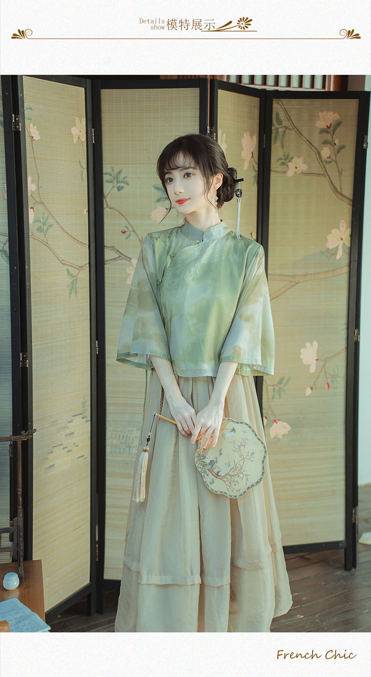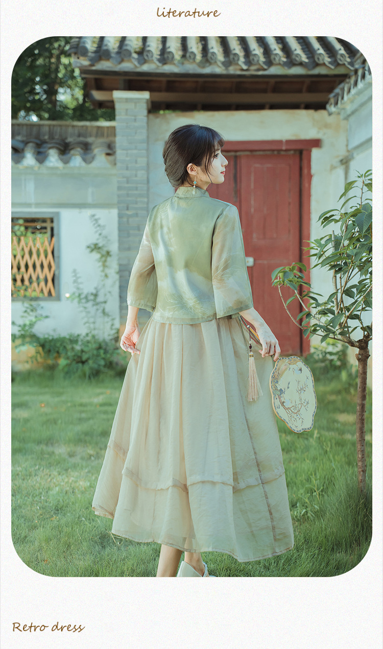 WZBT-F088-9148新中式禅意茶服旗袍两件套日常改良汉服文艺国风显瘦温柔连衣裙