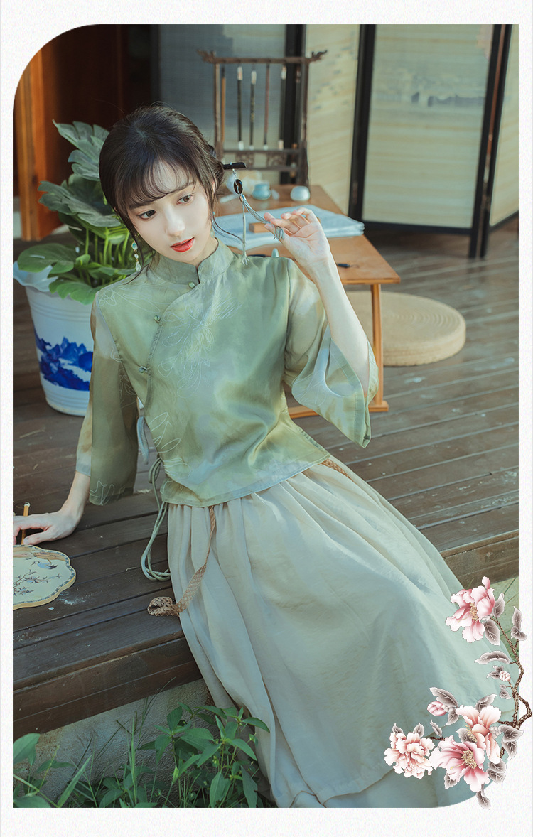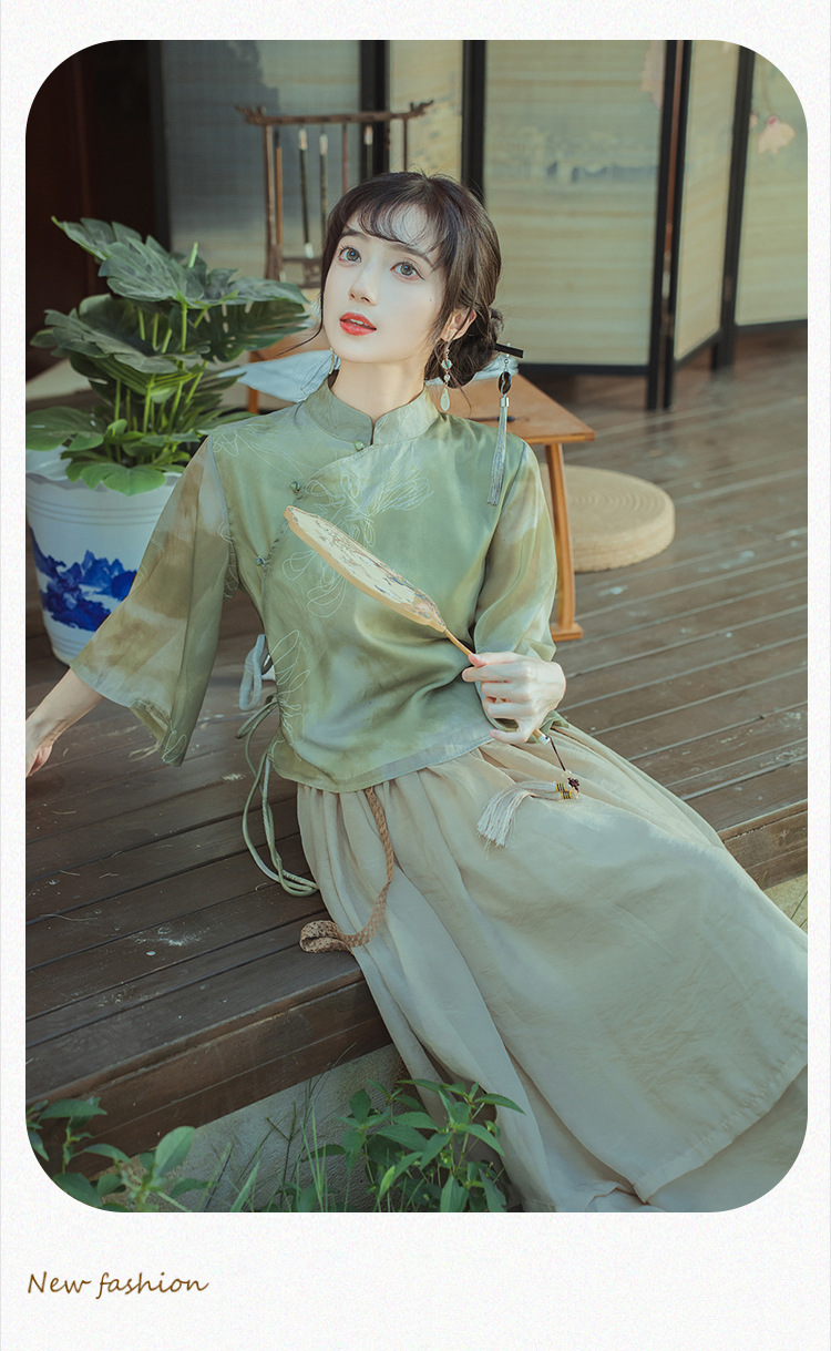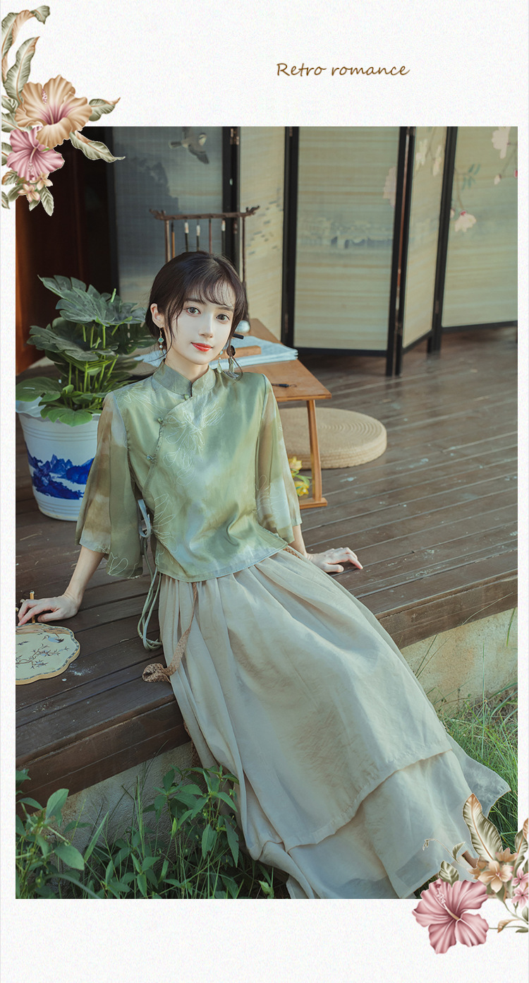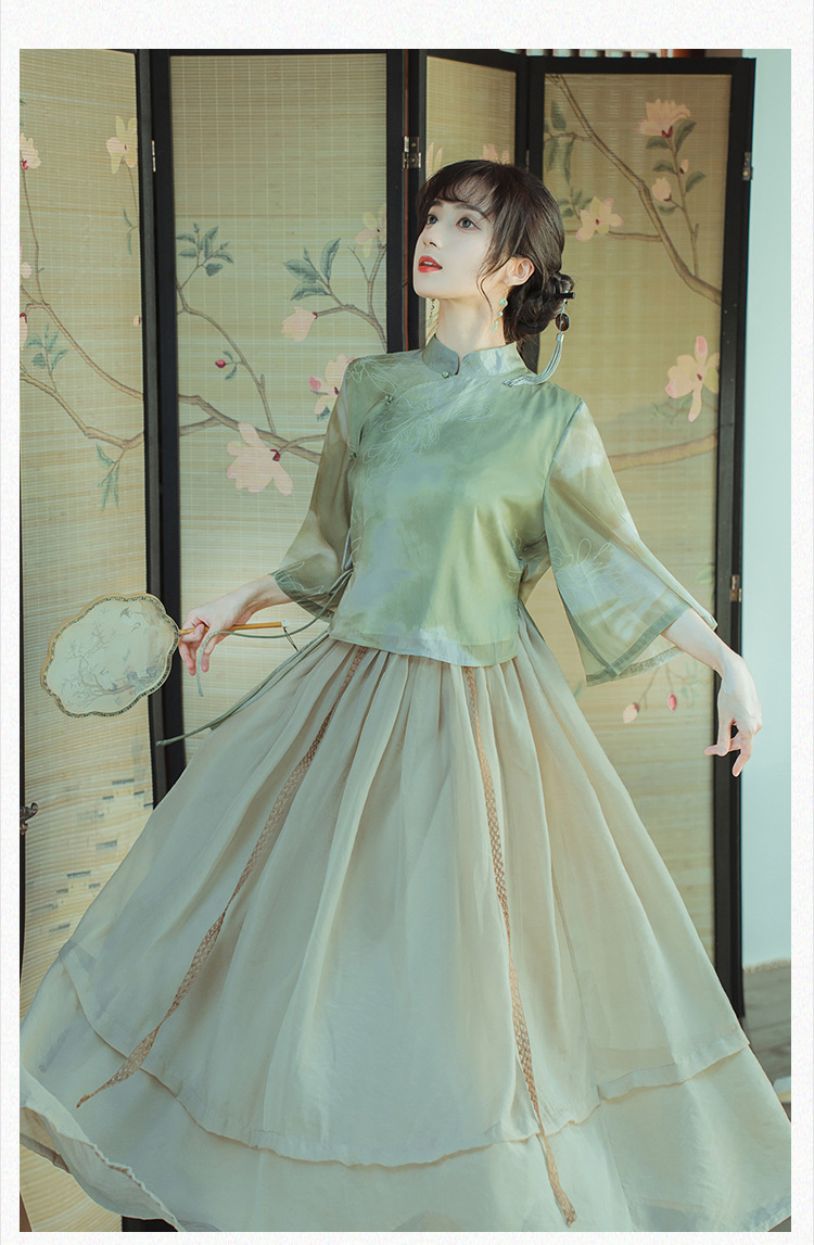 WZBT-F088-9148新中式禅意茶服旗袍两件套日常改良汉服文艺国风显瘦温柔连衣裙