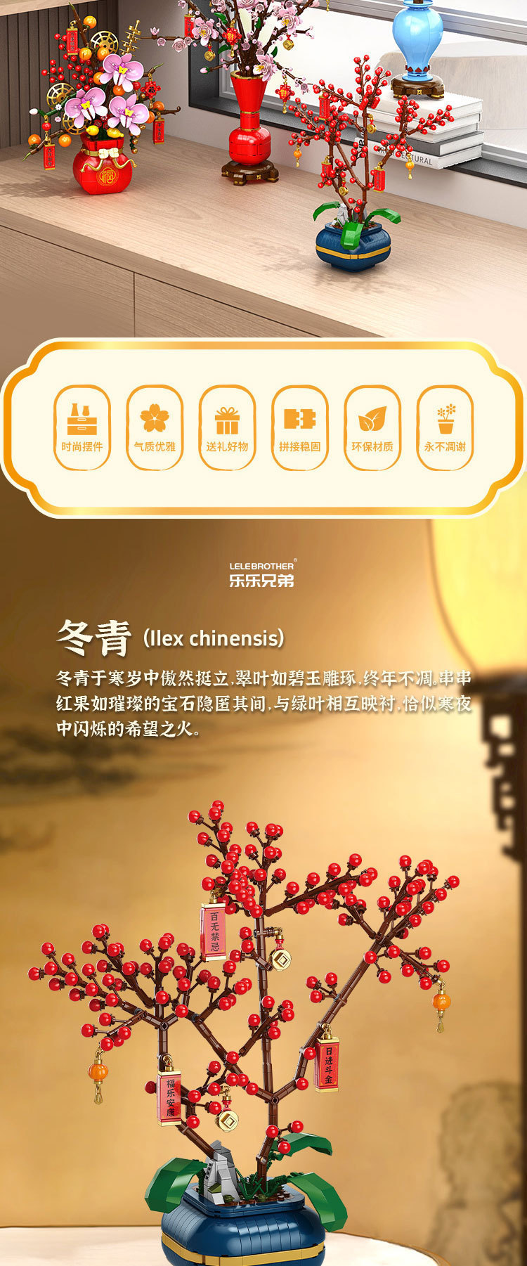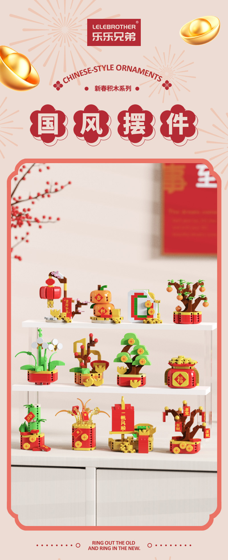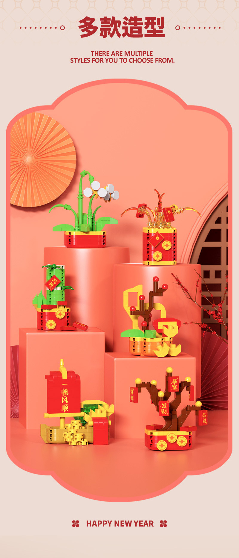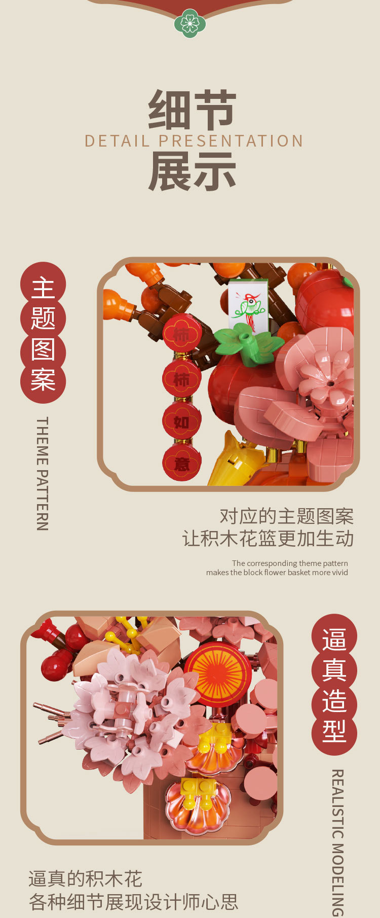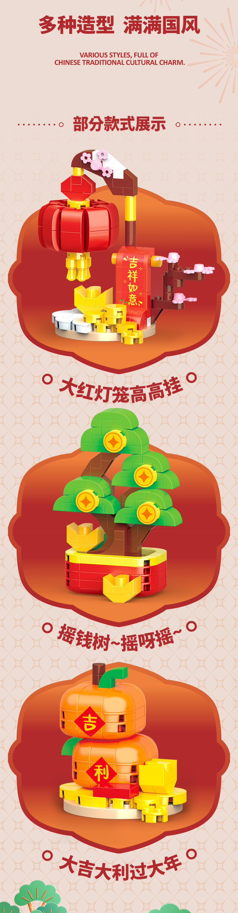 新年春节盆花积木摆件礼物柿柿如意金桔树摆件拼装积木儿童玩具