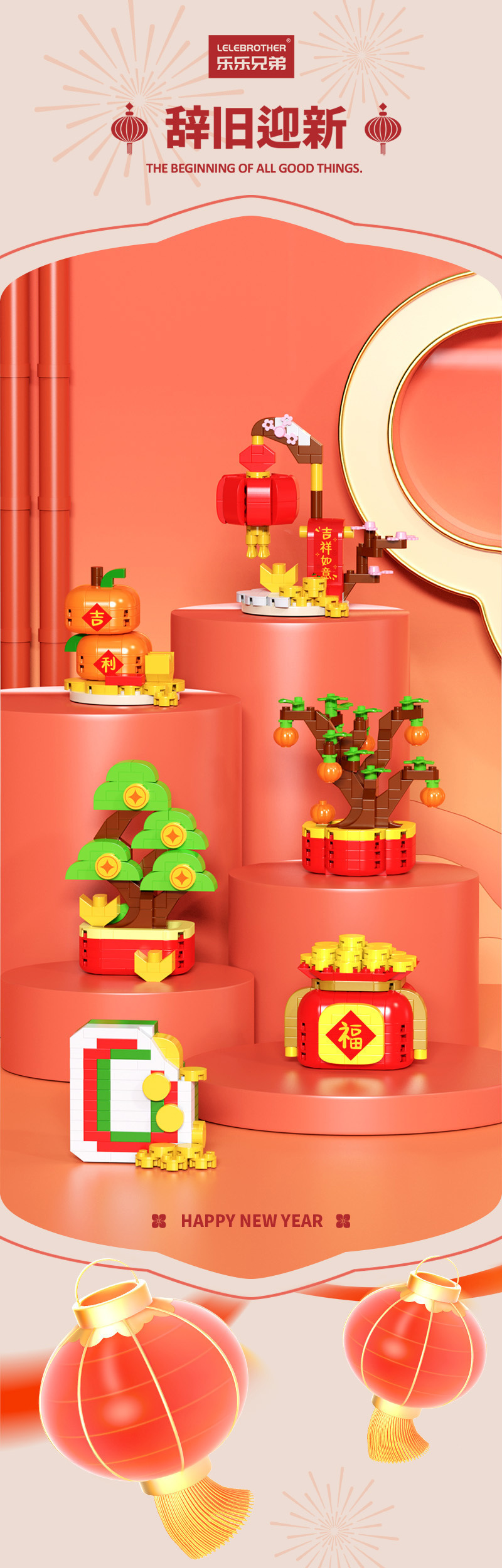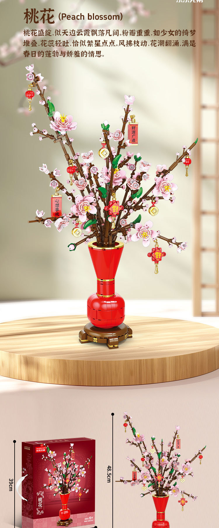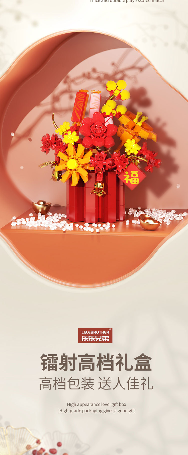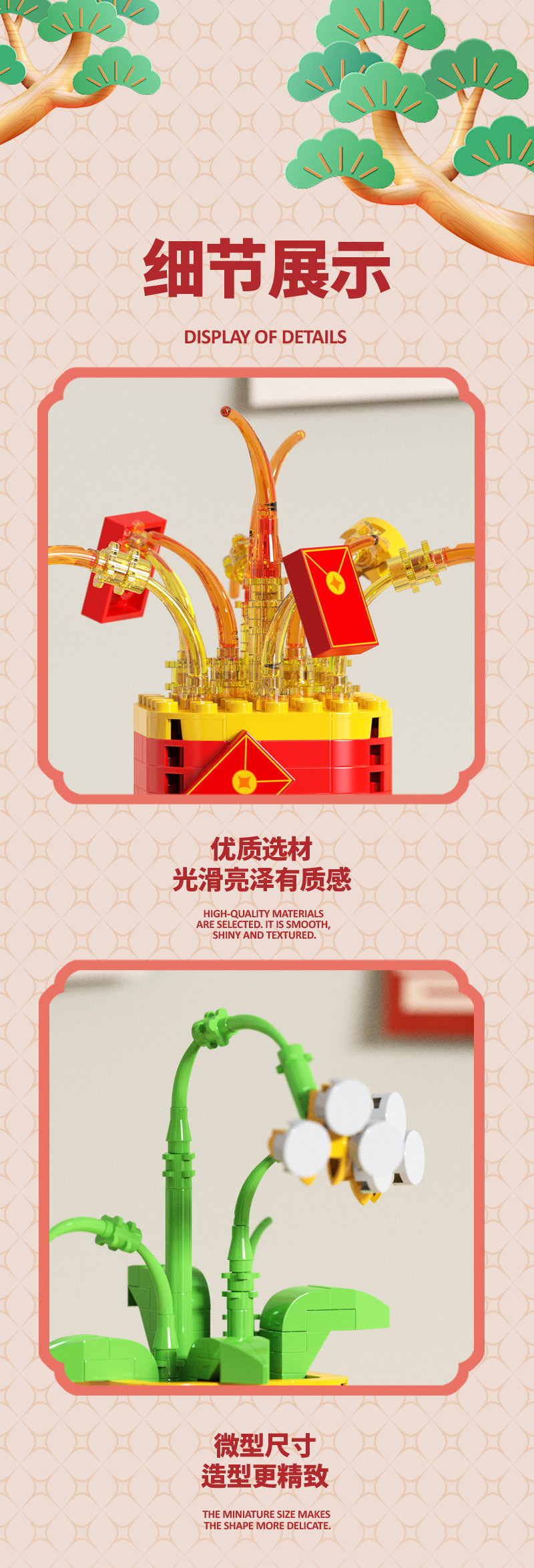 新年春节盆花积木摆件礼物柿柿如意金桔树摆件拼装积木儿童玩具