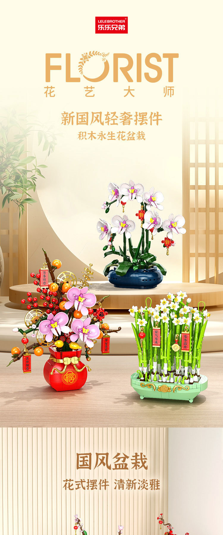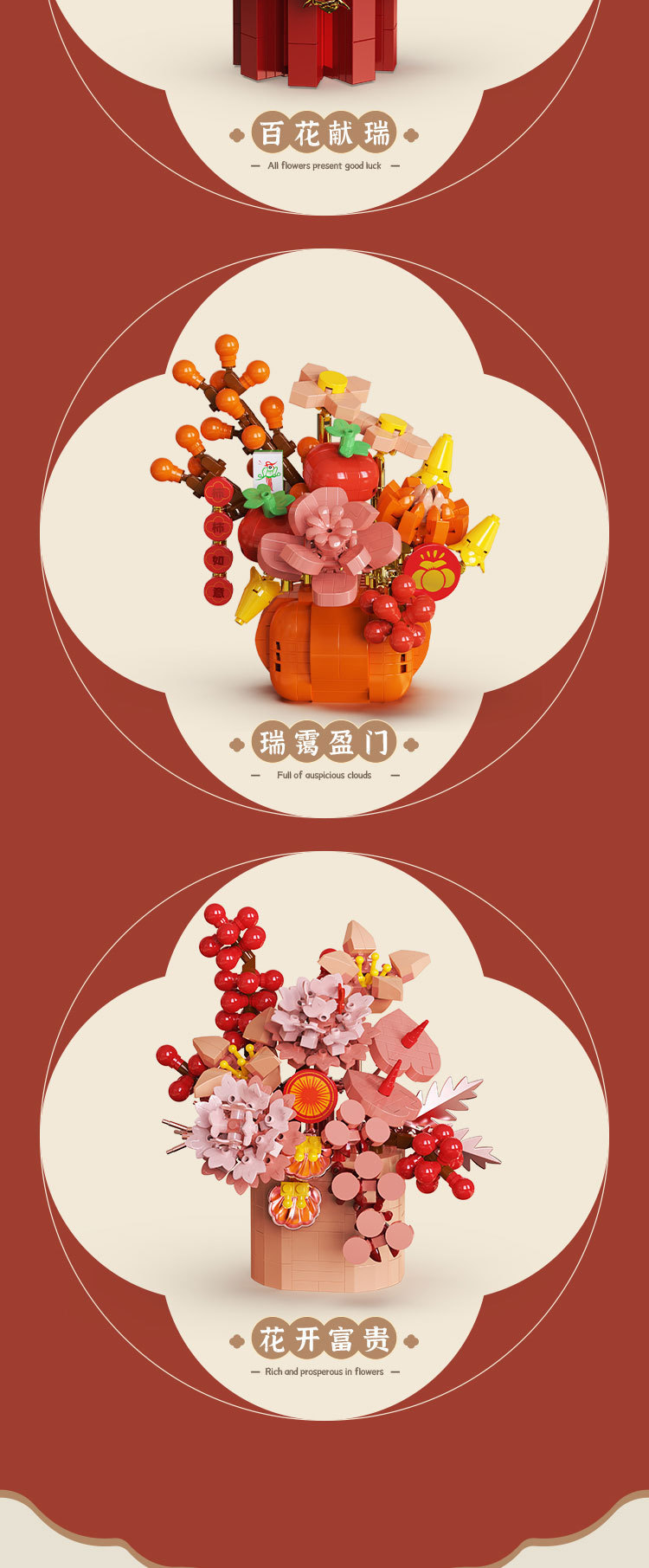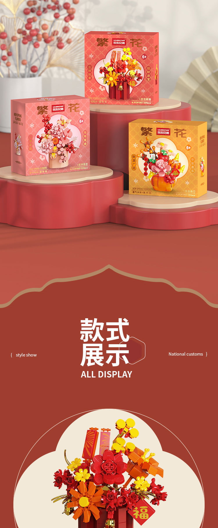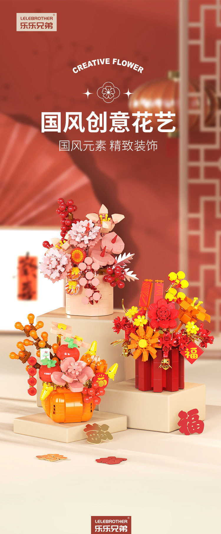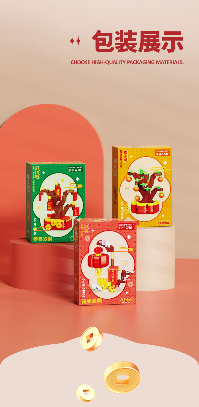 新年春节盆花积木摆件礼物柿柿如意金桔树摆件拼装积木儿童玩具