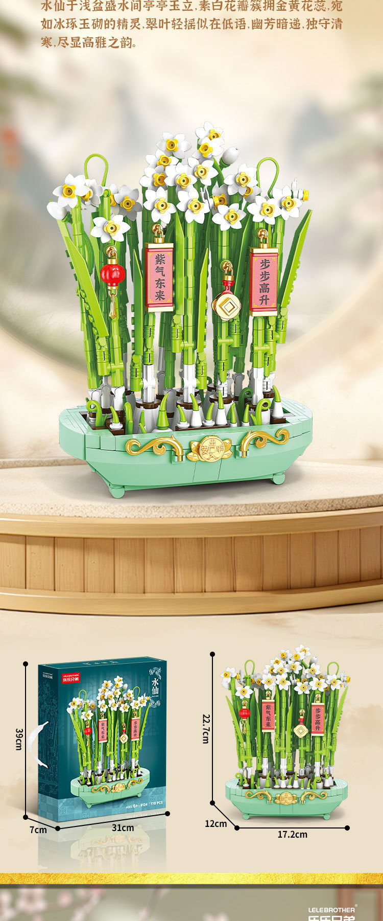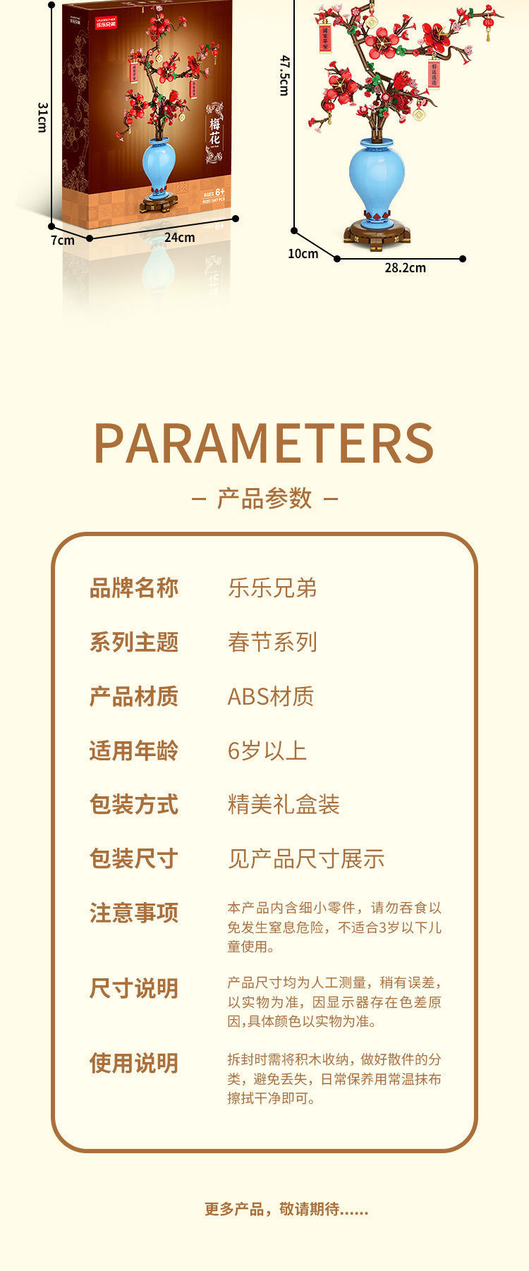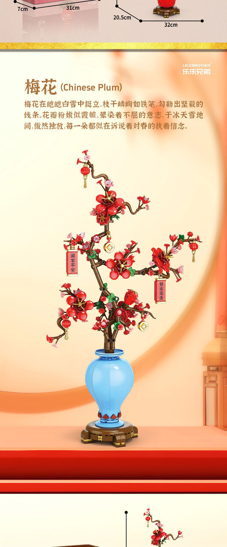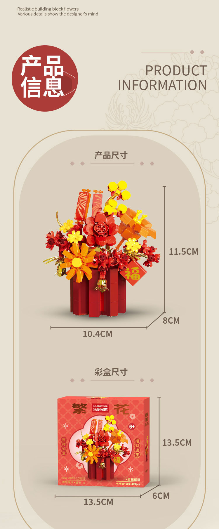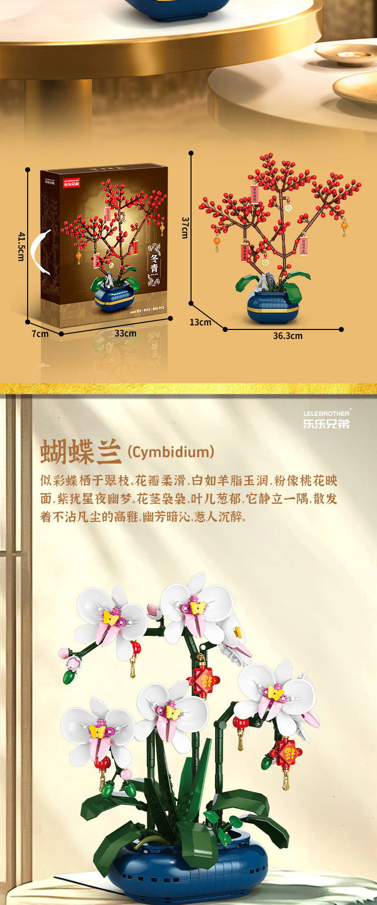 新年春节盆花积木摆件礼物柿柿如意金桔树摆件拼装积木儿童玩具