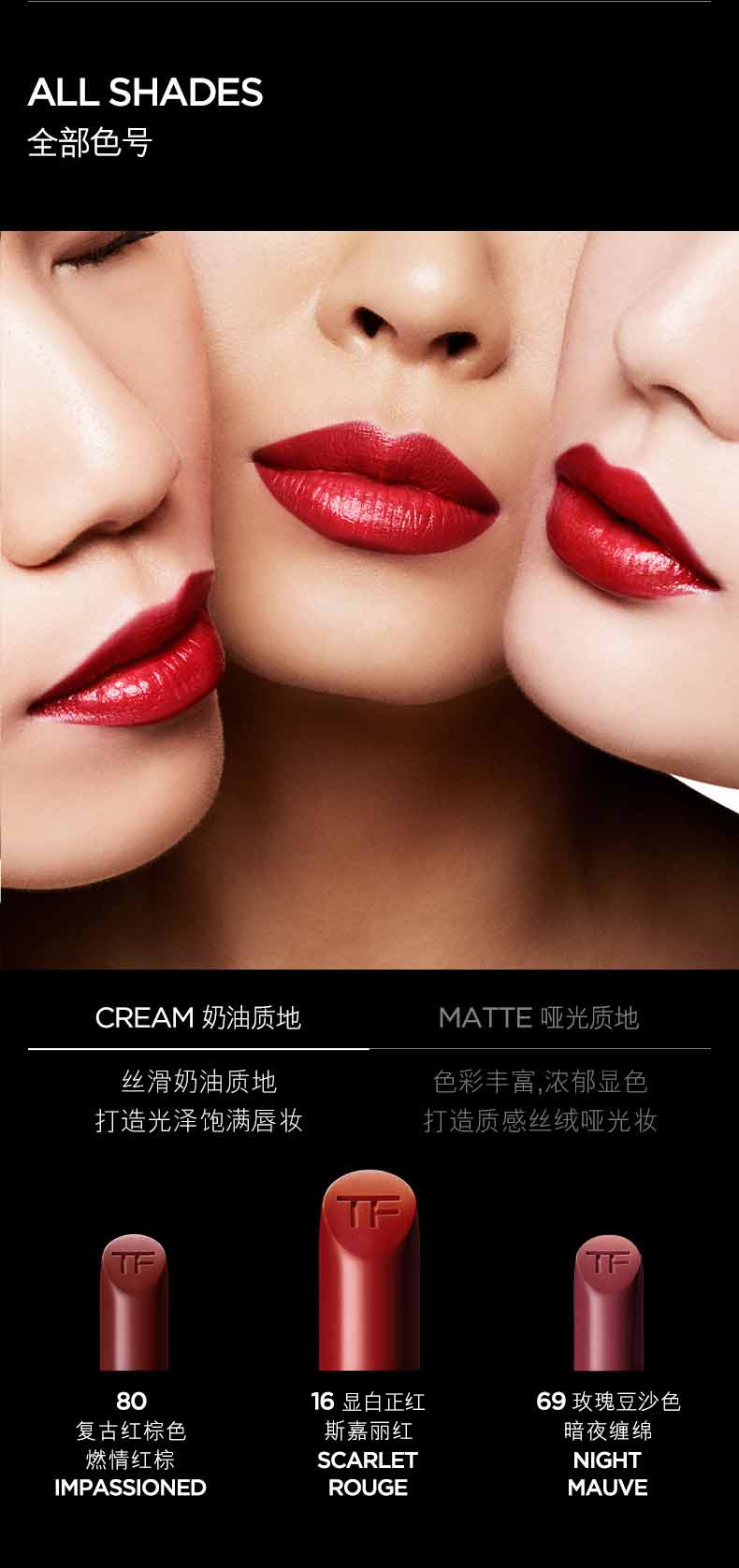 美国汤姆福特TOM FORD黑管口红哑光 80燃情红棕 复古红3g