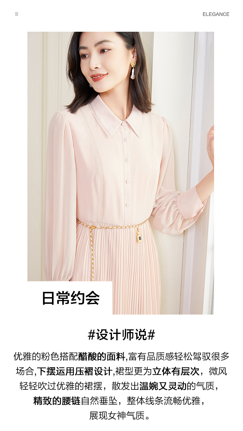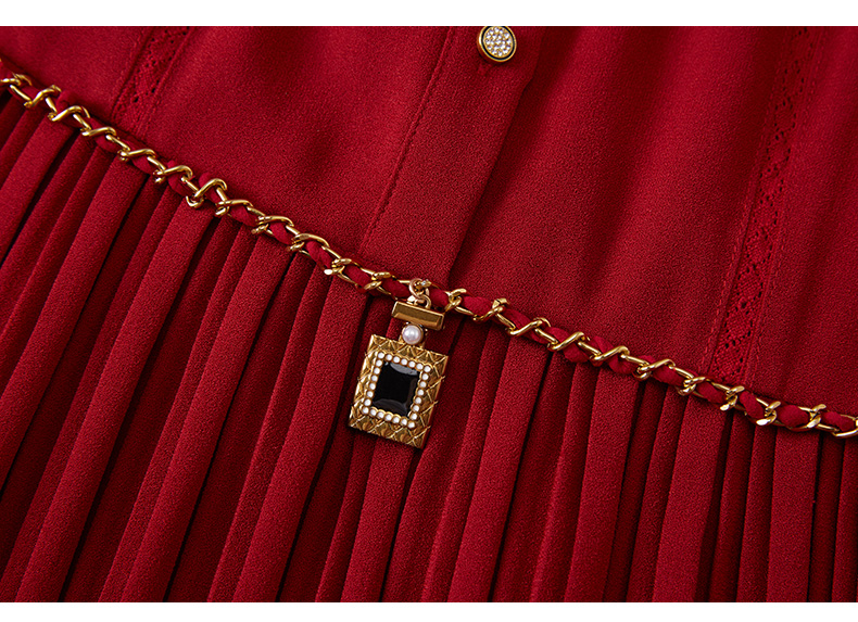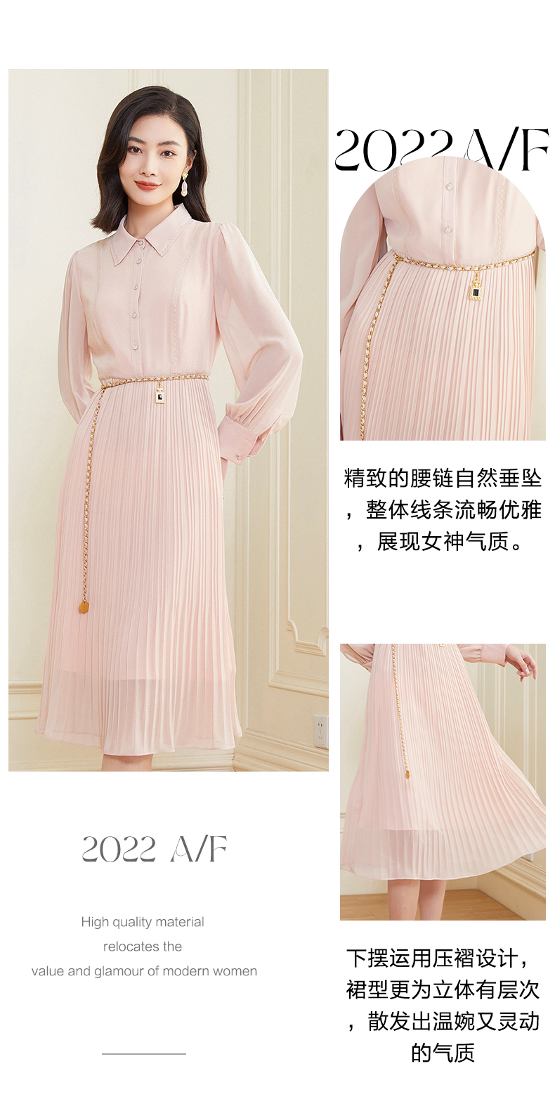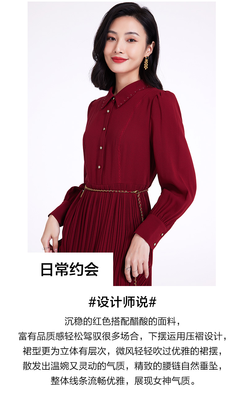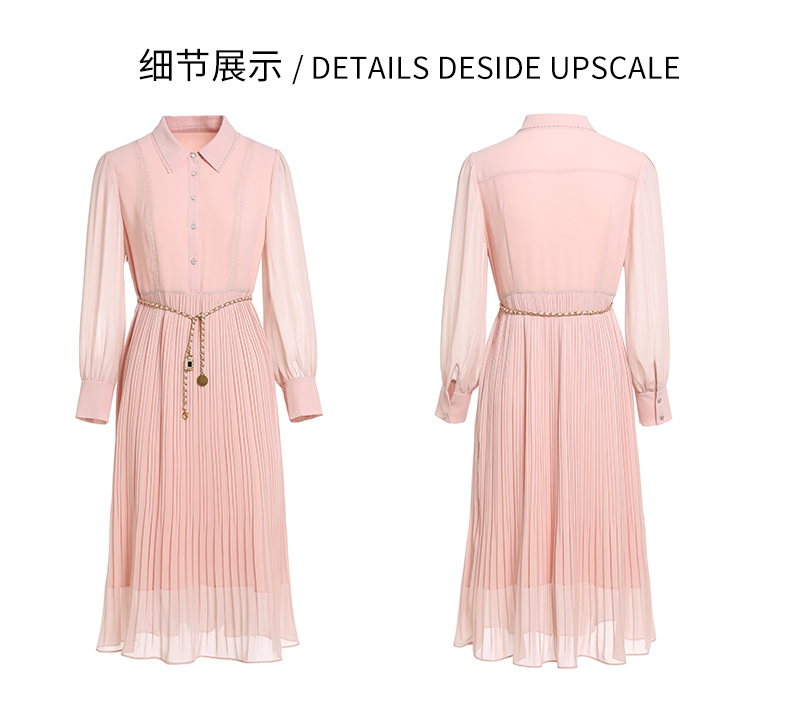 乔万尼春款连衣裙新款长袖收腰百褶长裙EF3E867