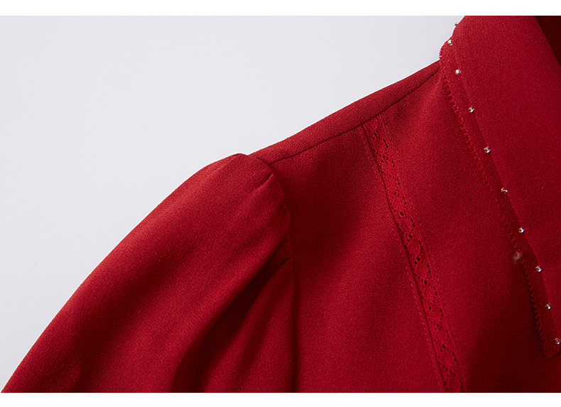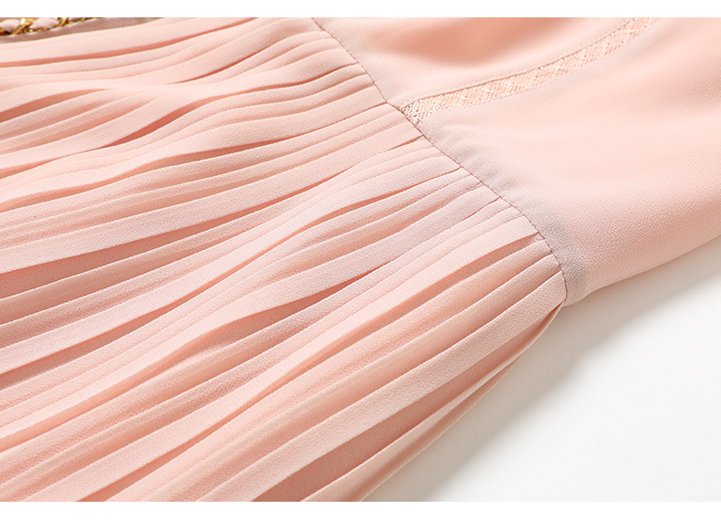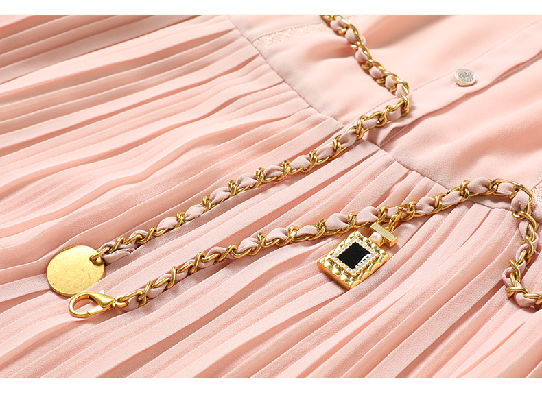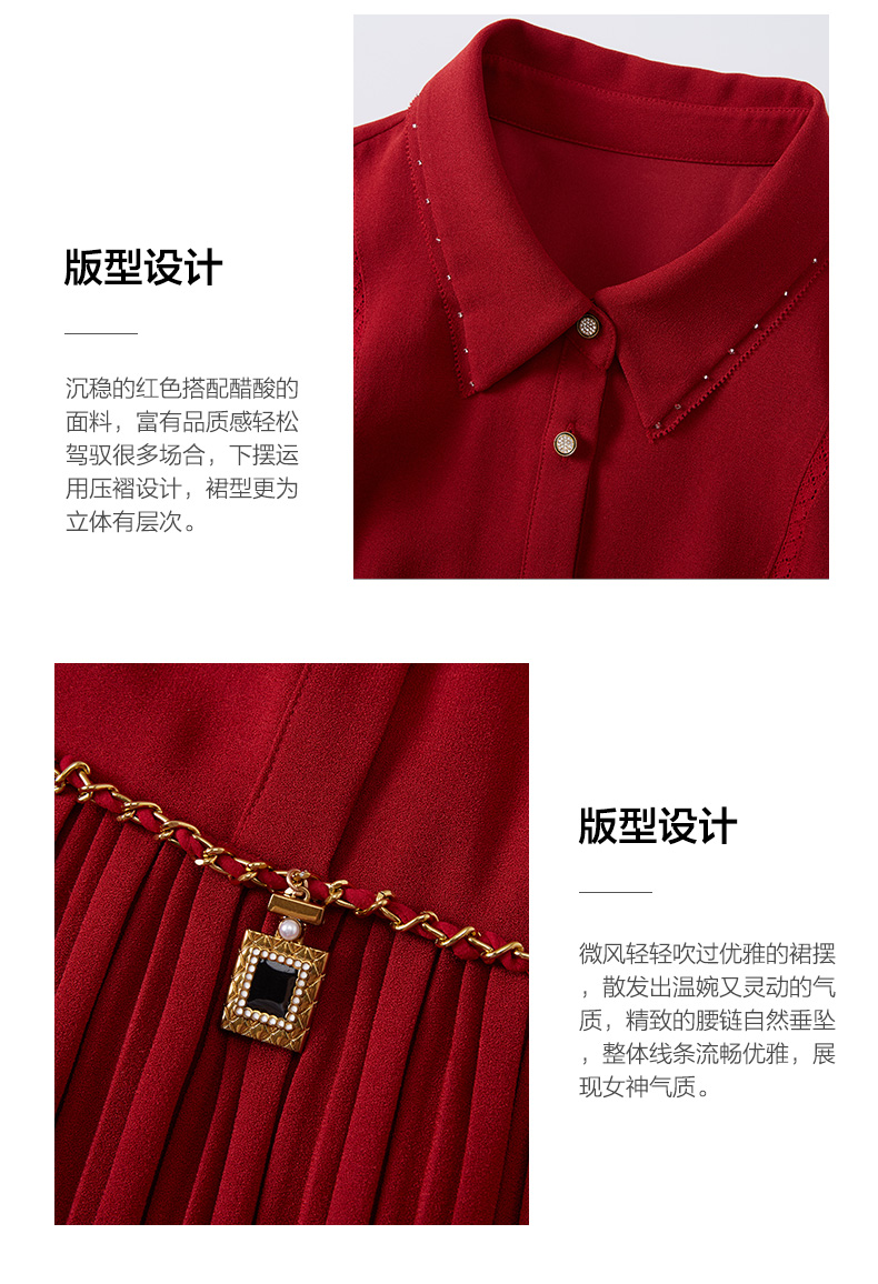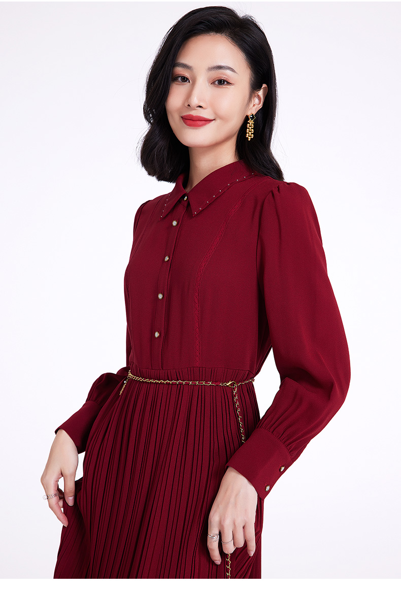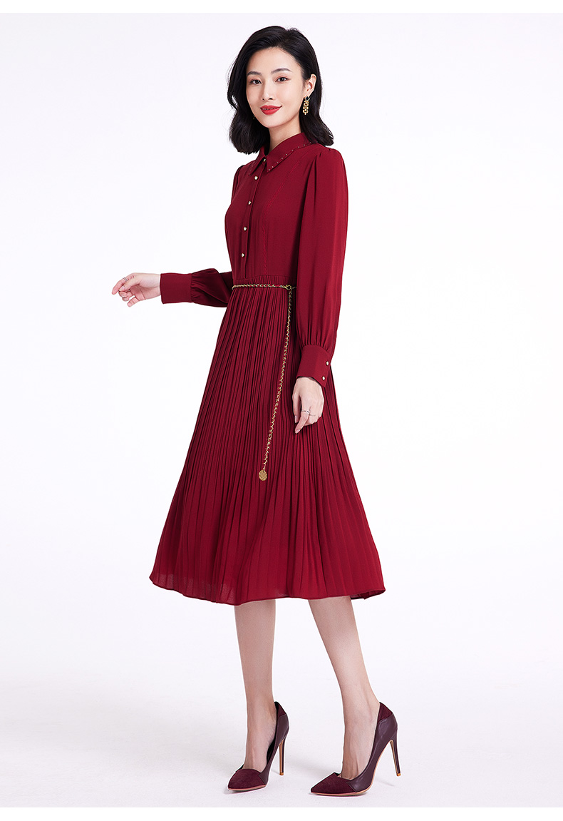 乔万尼春款连衣裙新款长袖收腰百褶长裙EF3E867
