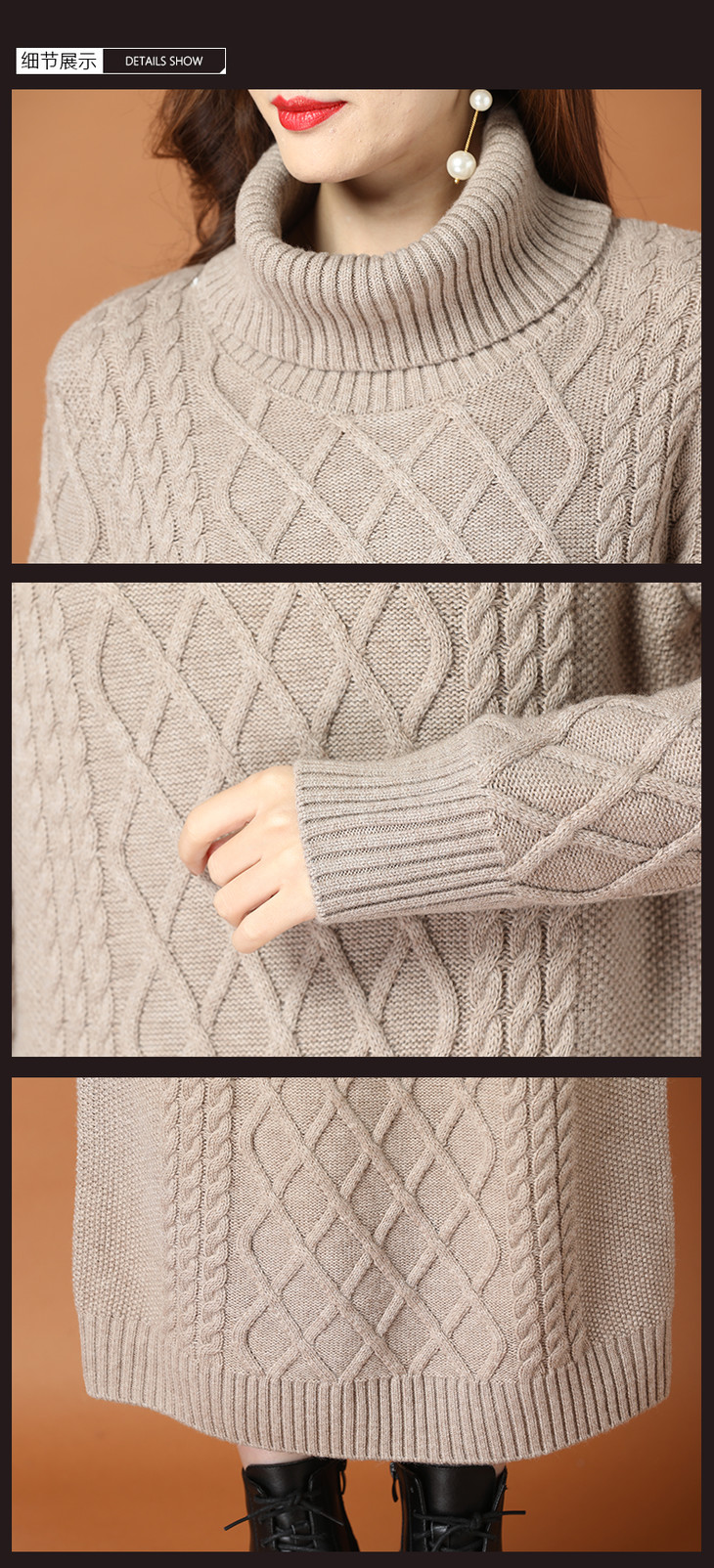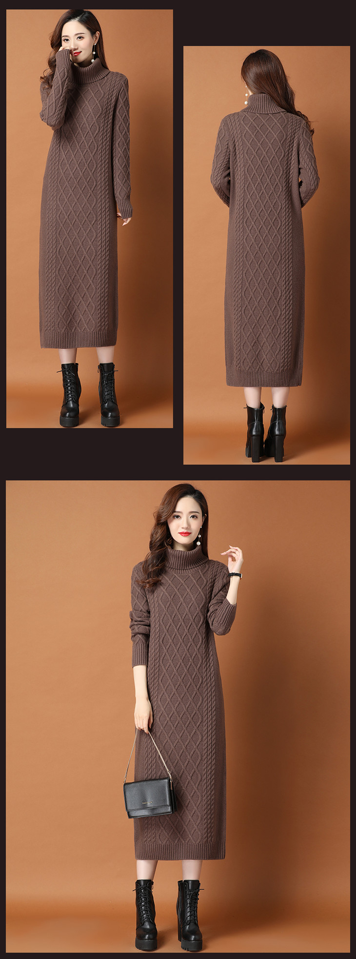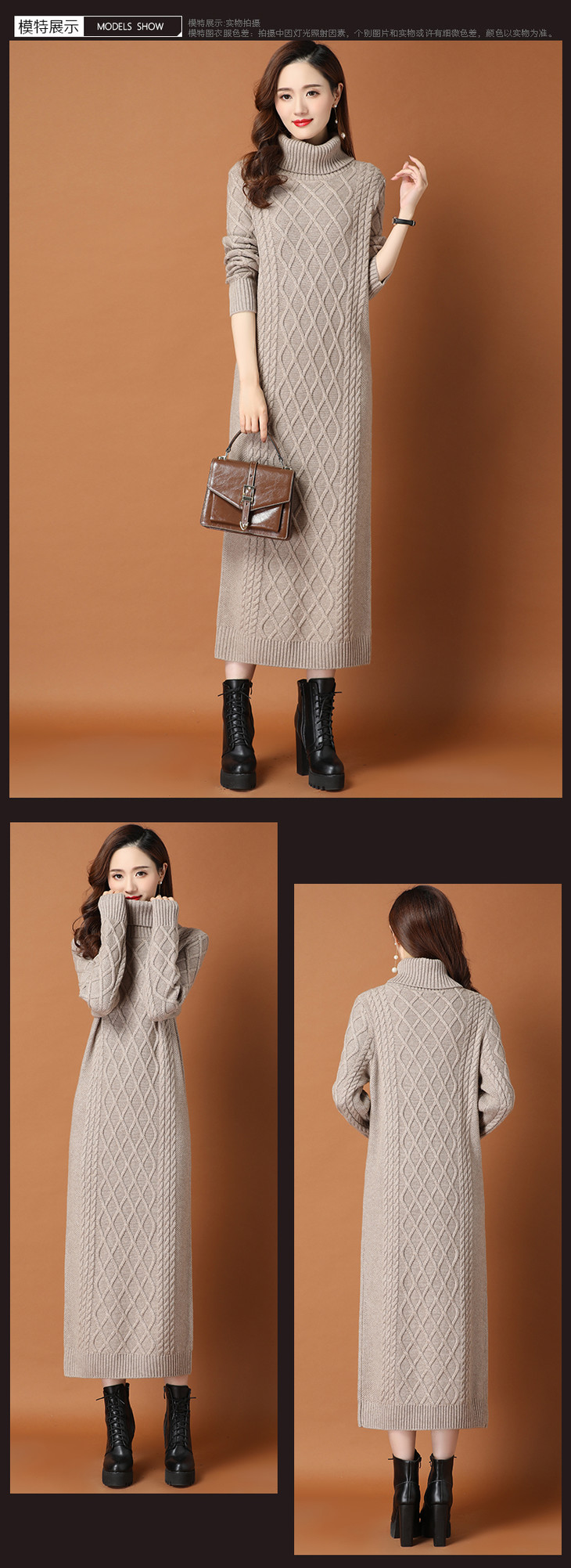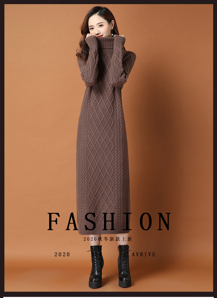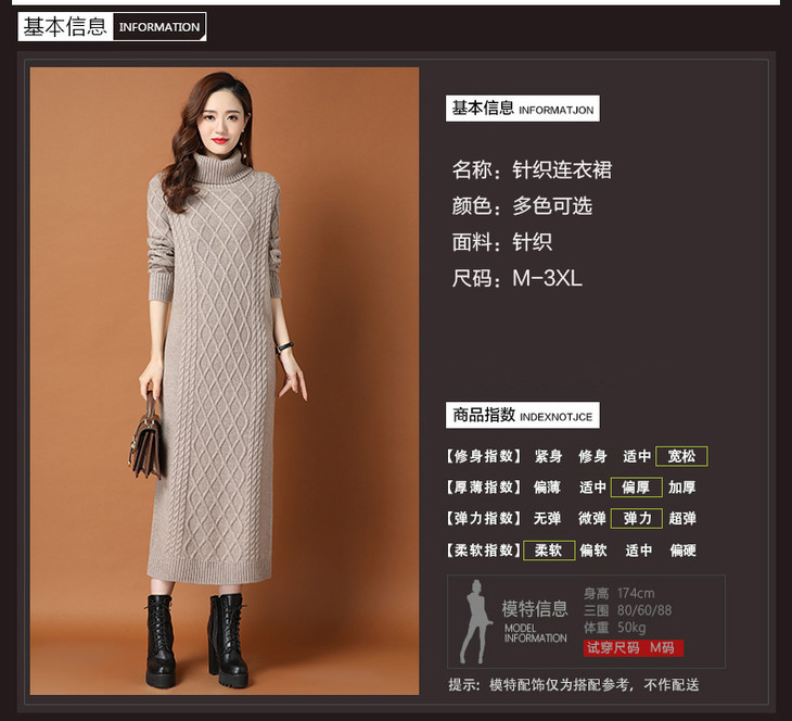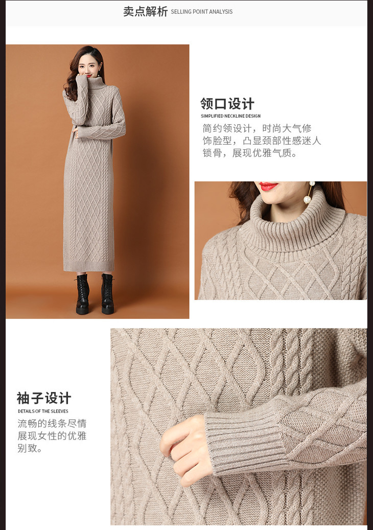 KLJ2163 新款过膝加厚保暖高领显瘦针织连衣裙