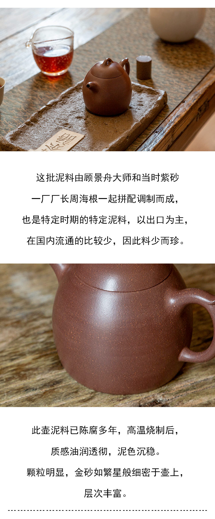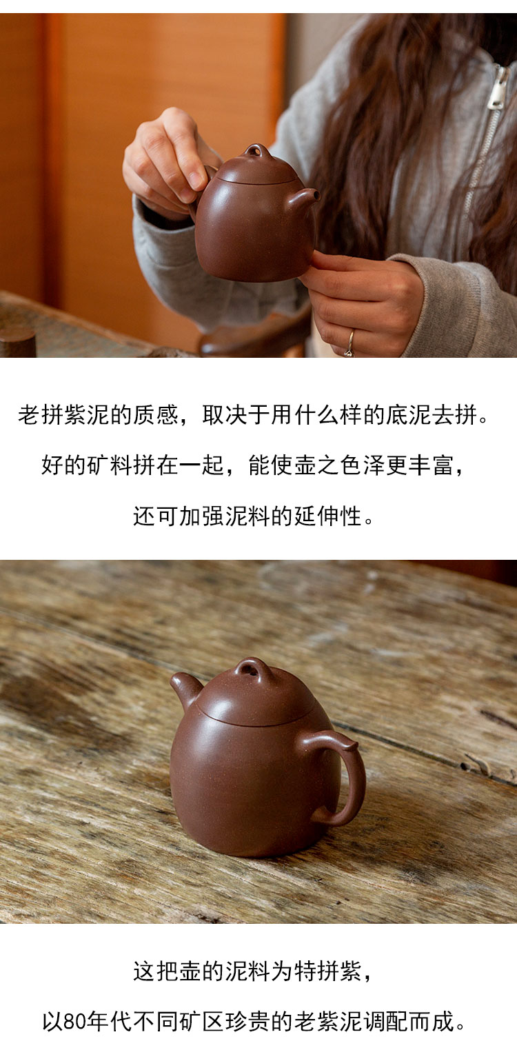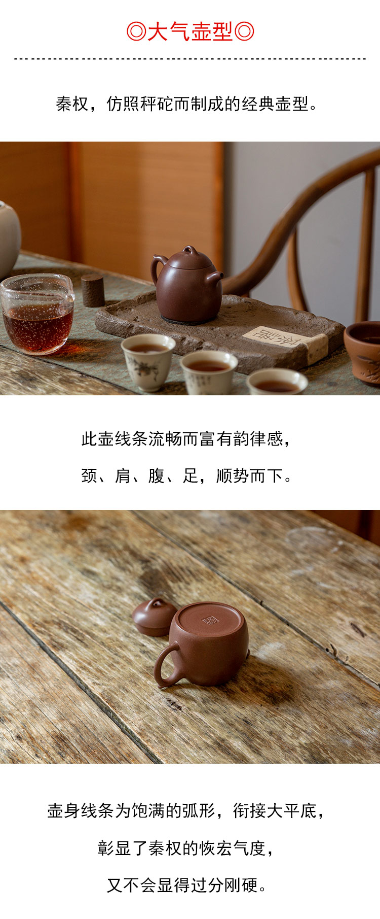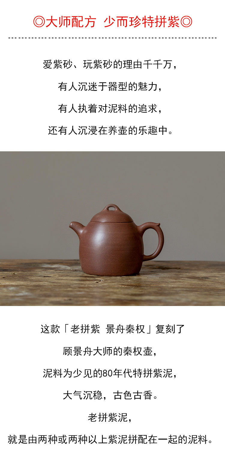 茶香记 紫砂壶 老拼紫景舟秦权 泥料少见 器型经典 古朴大气