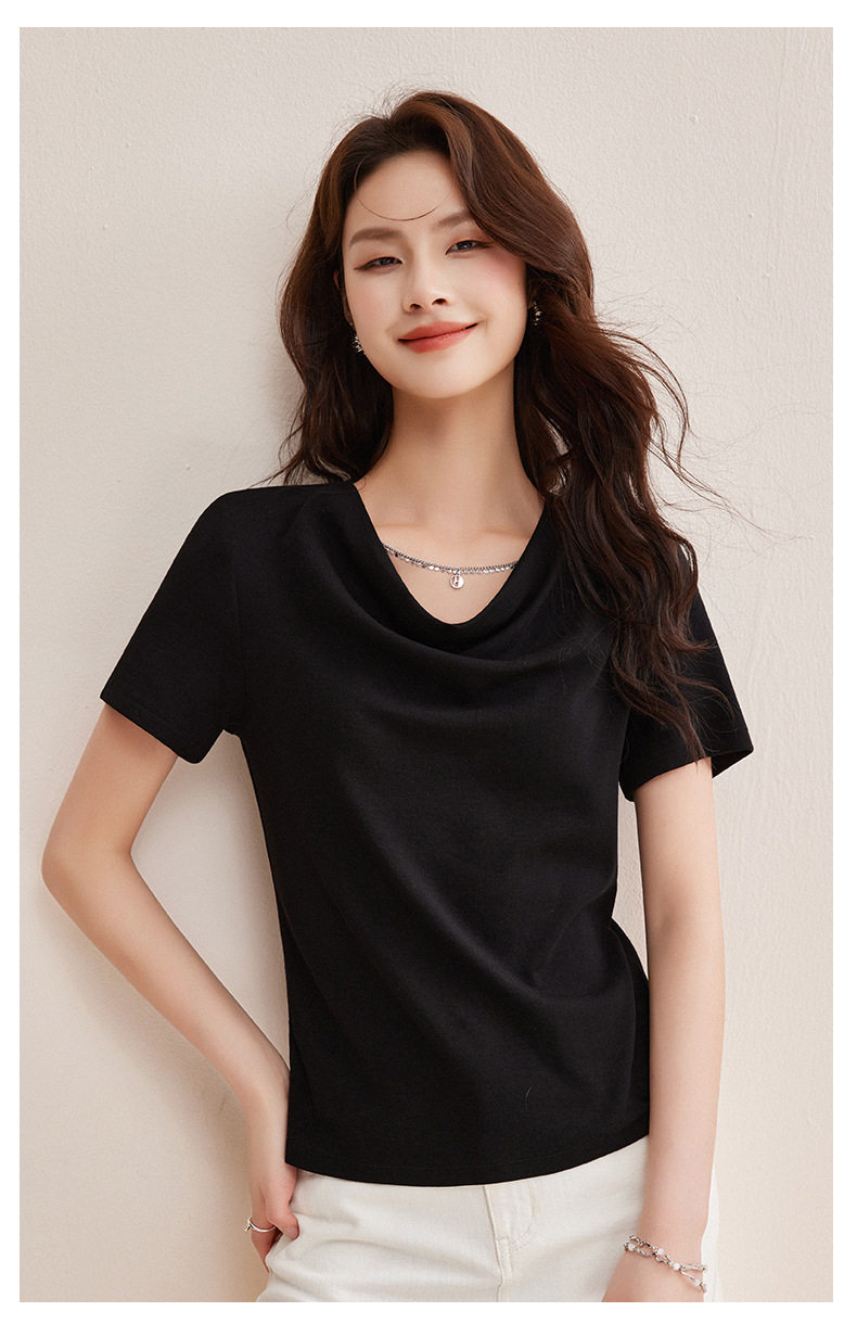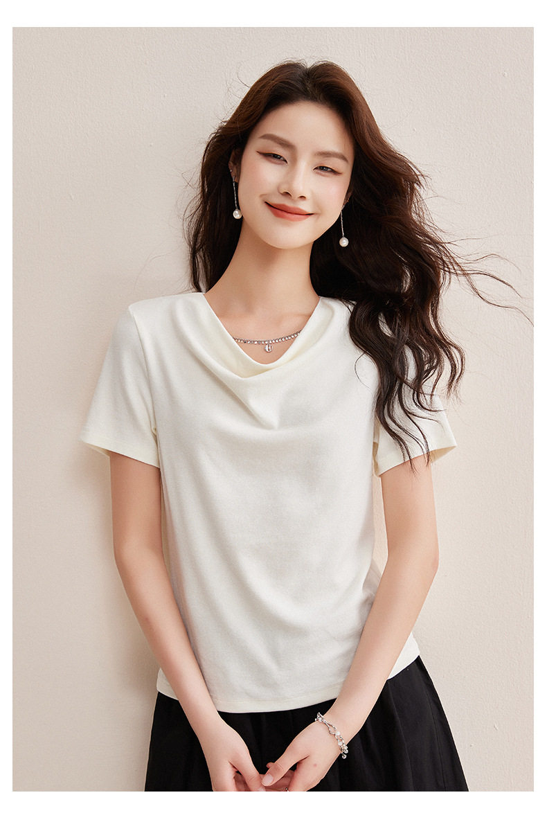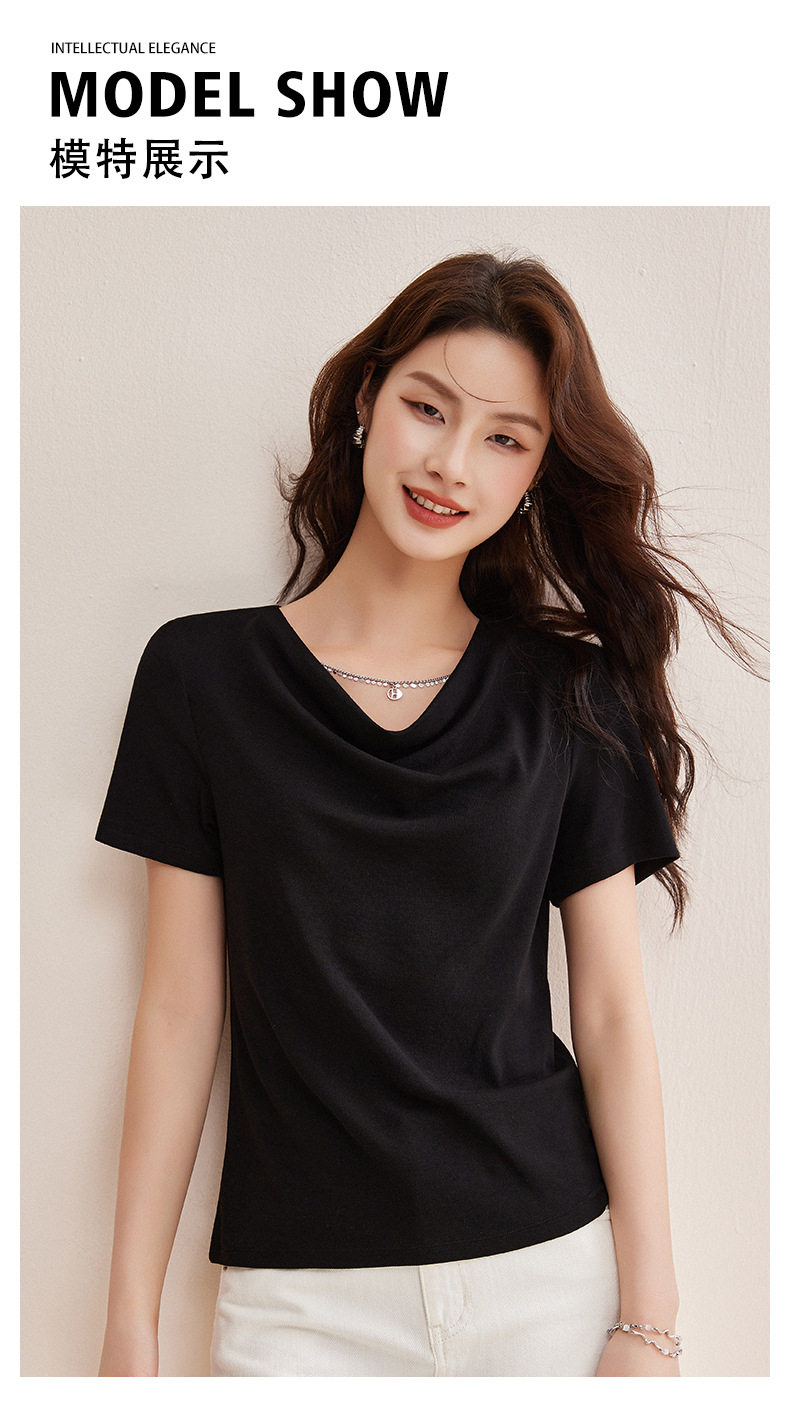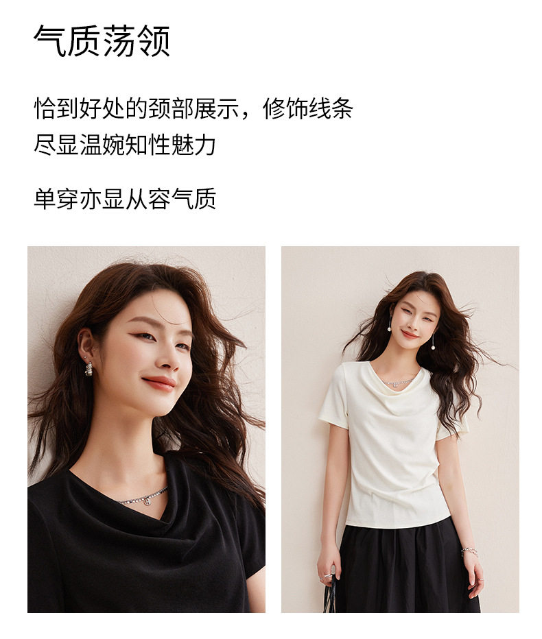 精仿羊绒美拉德复古咖色短袖t恤女高级感荡领修身内搭打底衫上衣  BY-W34 商品图4