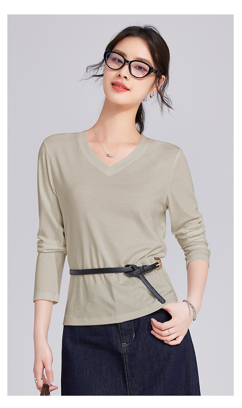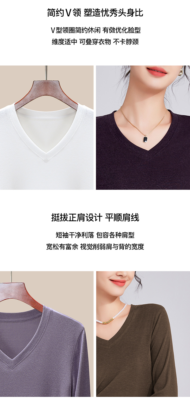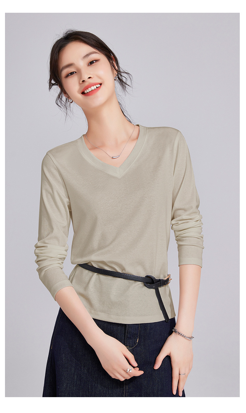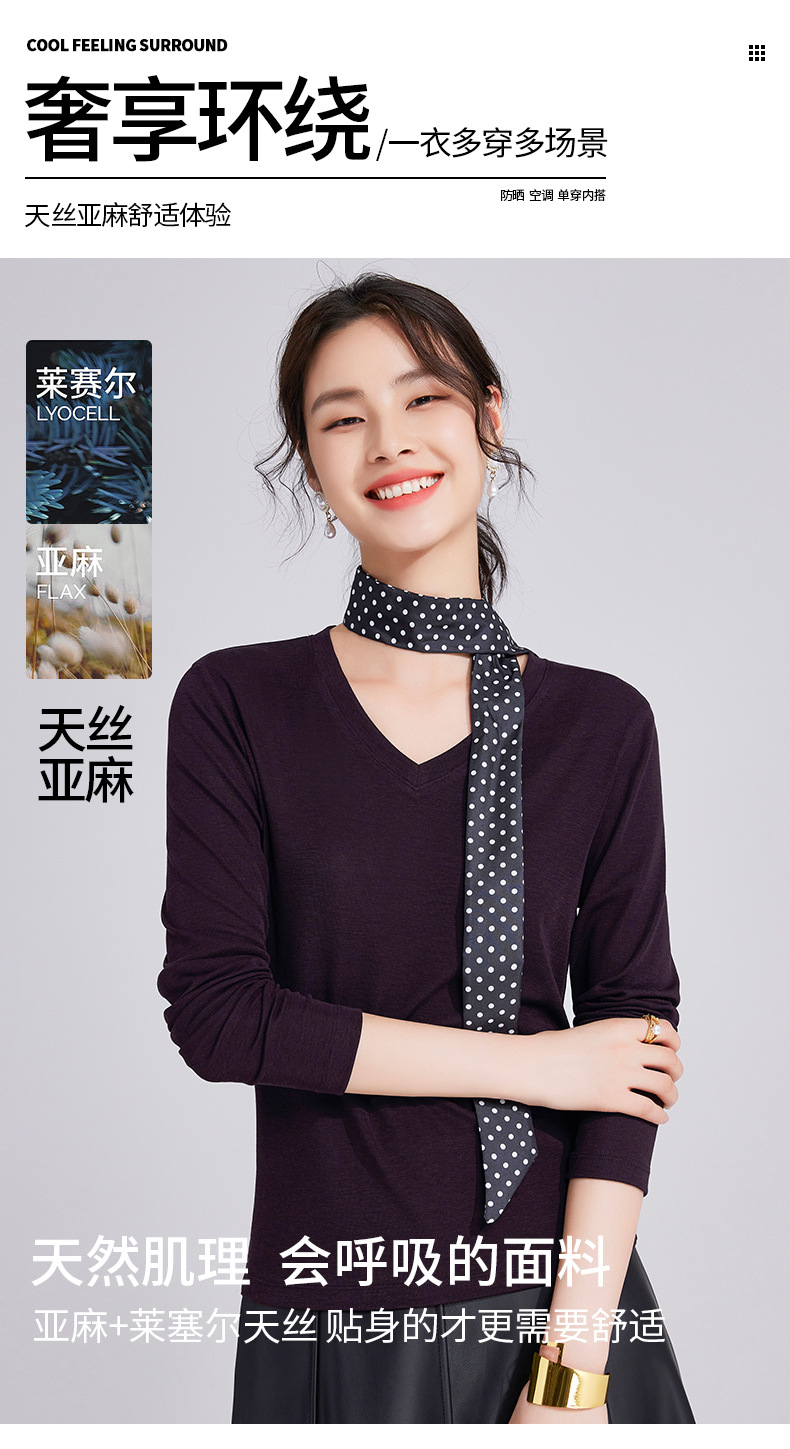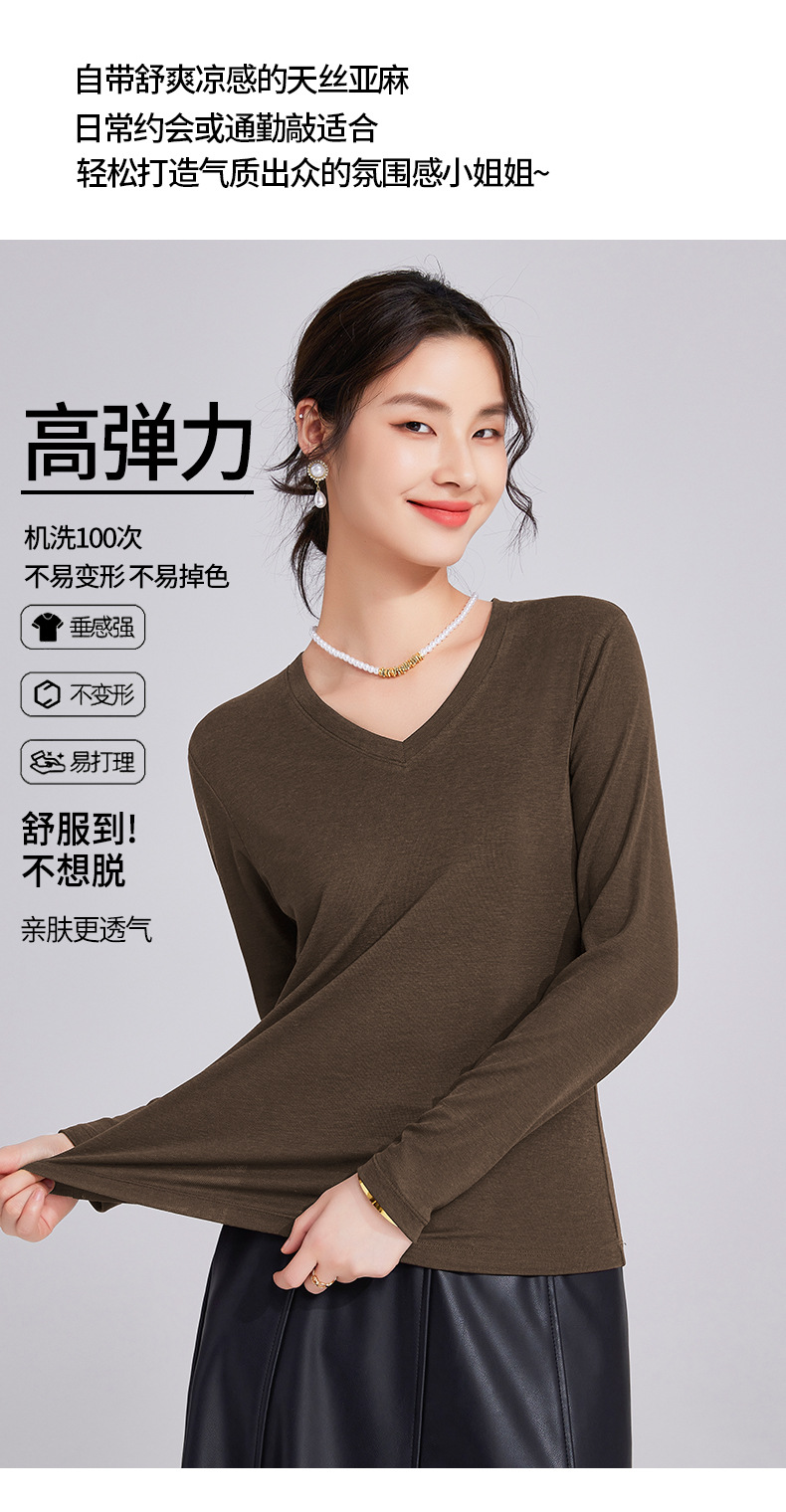 「自j」全新升级【铂金会员119/天猫159/差价40】(01951)洛诗琳莱赛尔天丝V领T恤2025秋季亚麻透气修身打底衫上衣女