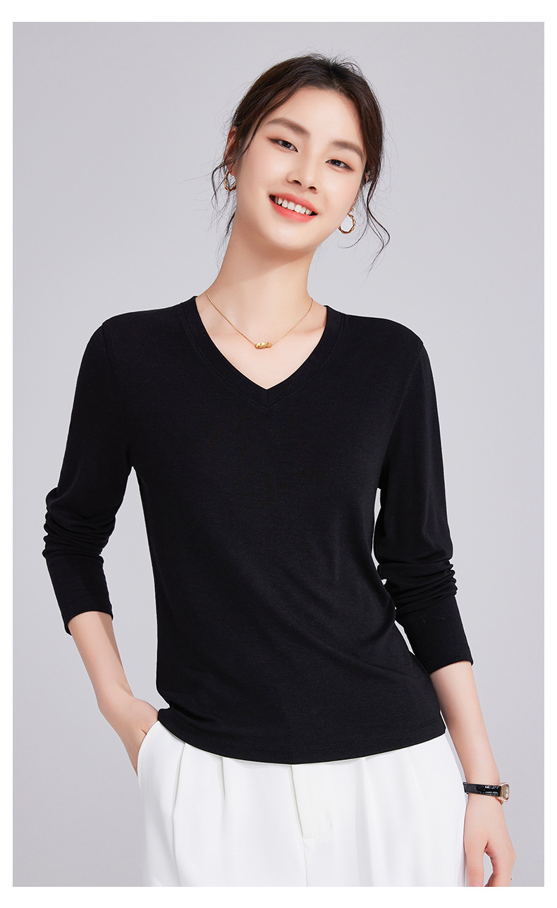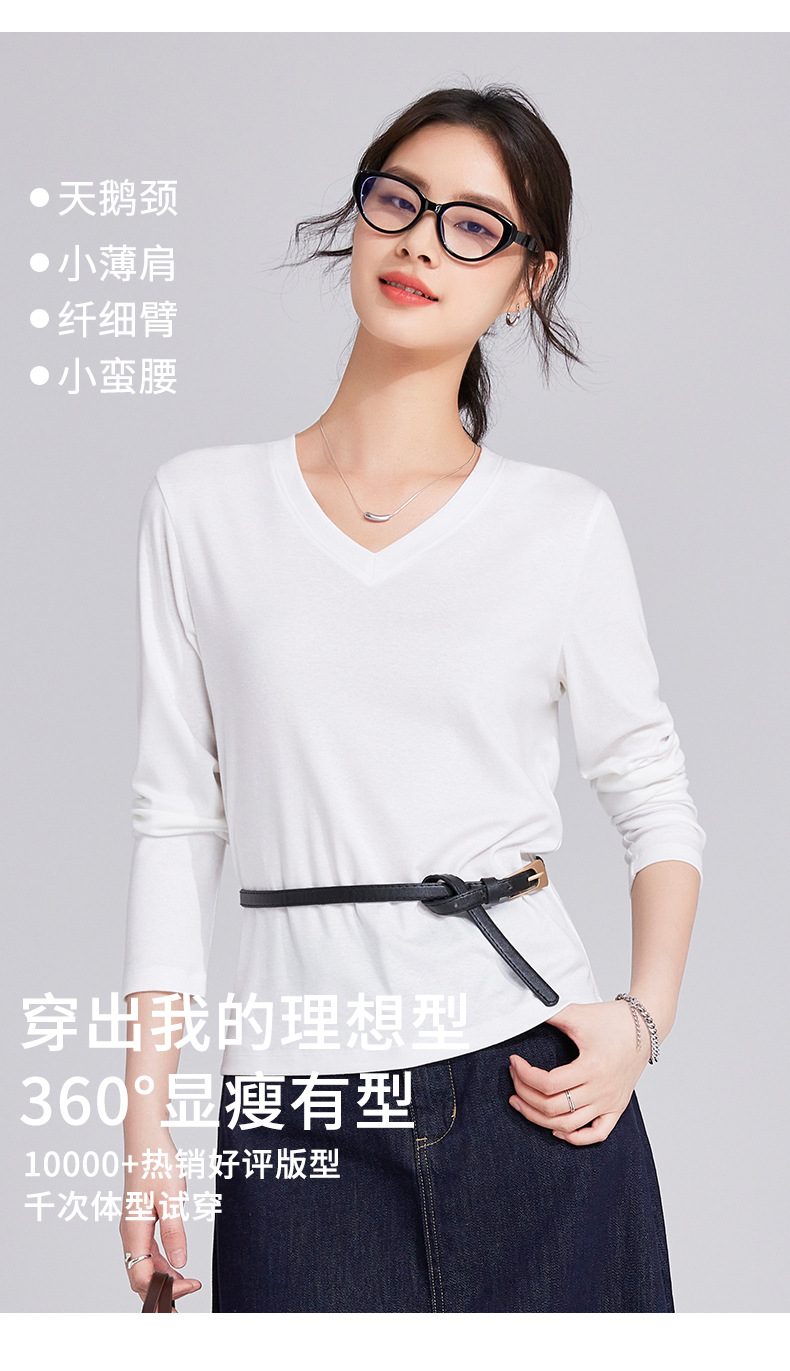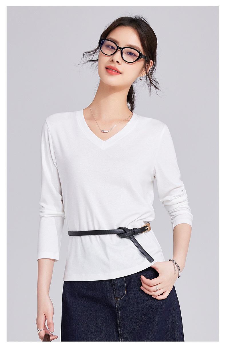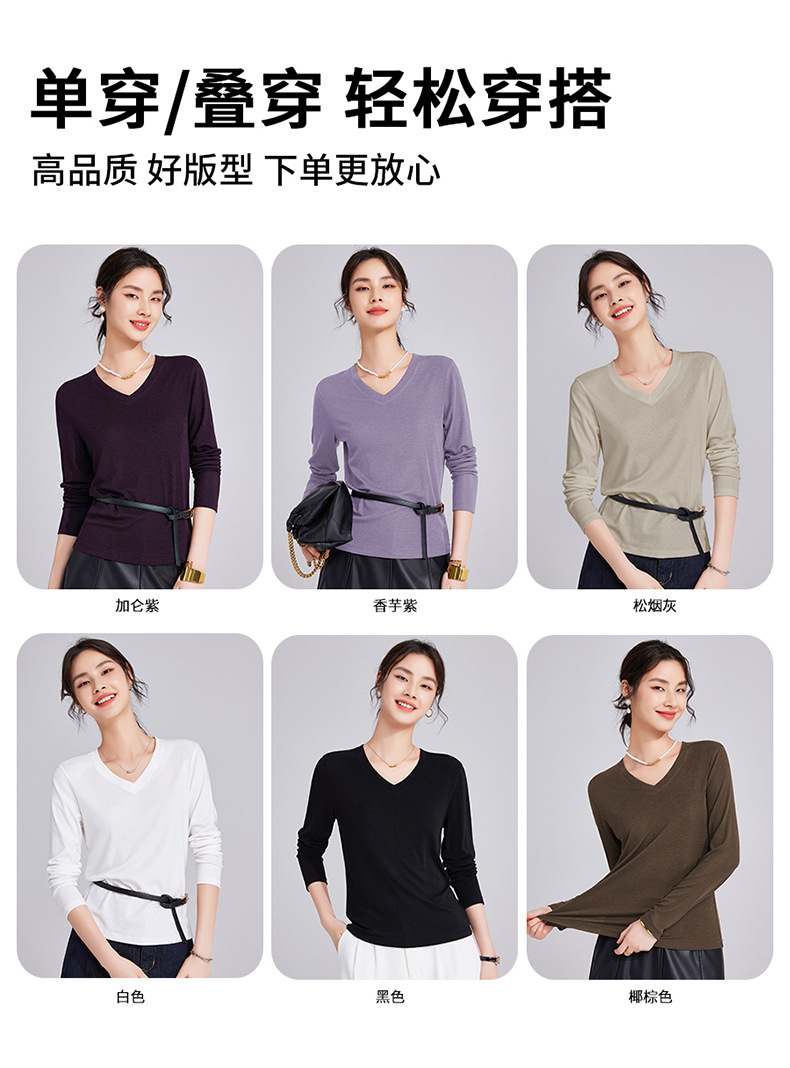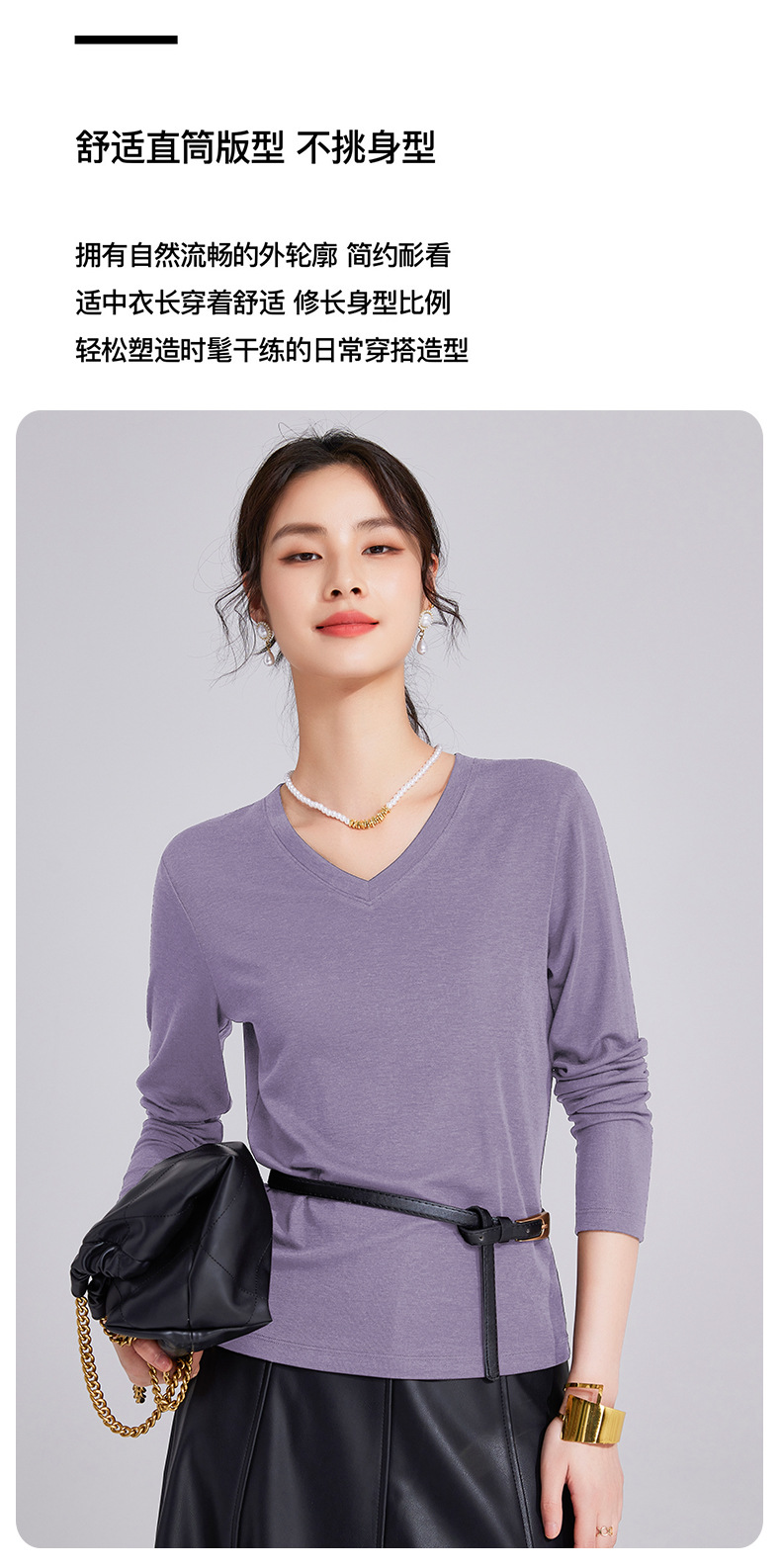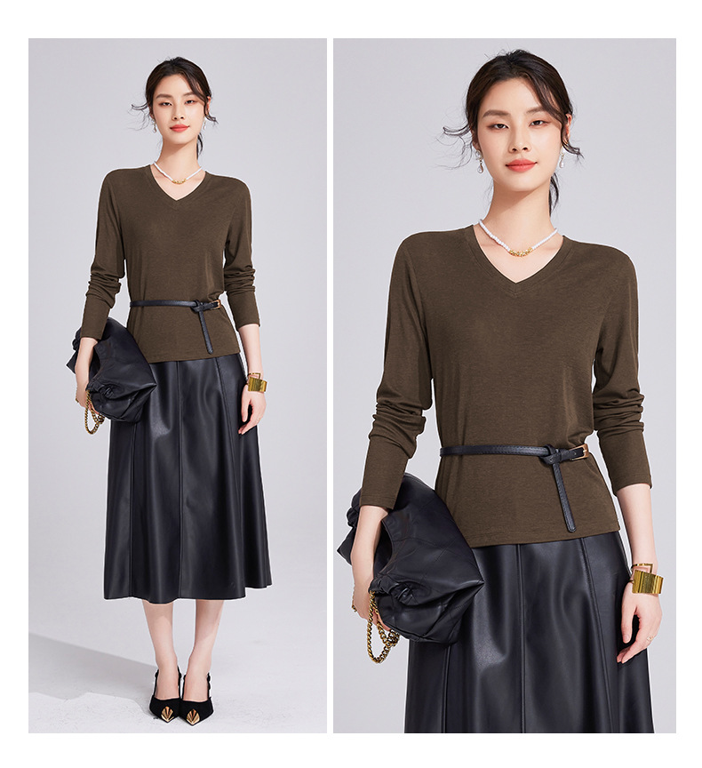 「自j」全新升级【铂金会员119/天猫159/差价40】(01951)洛诗琳莱赛尔天丝V领T恤2025秋季亚麻透气修身打底衫上衣女