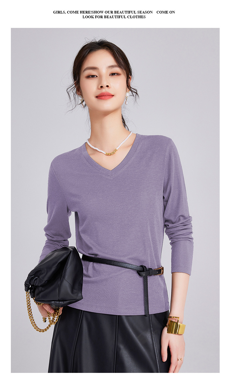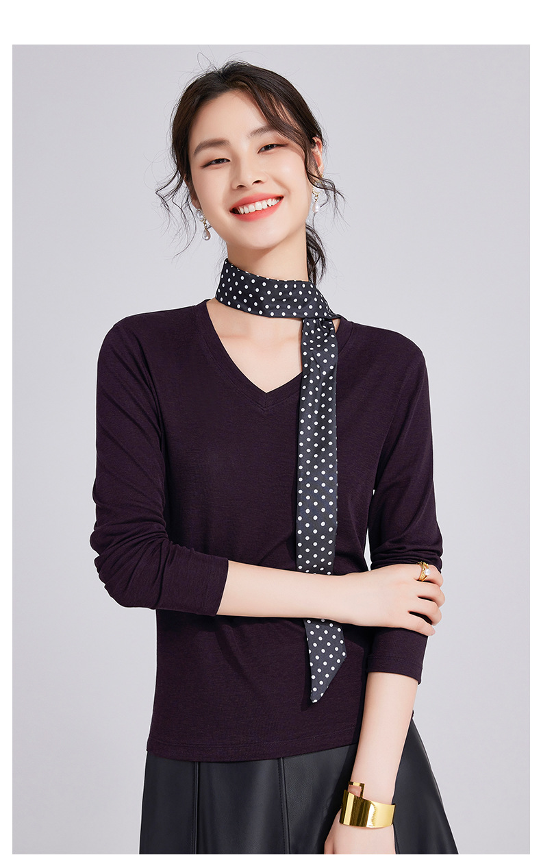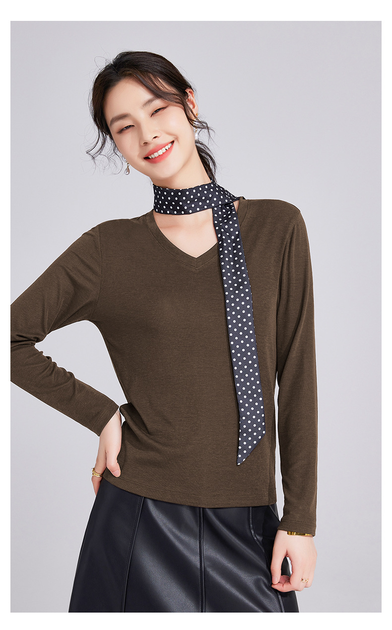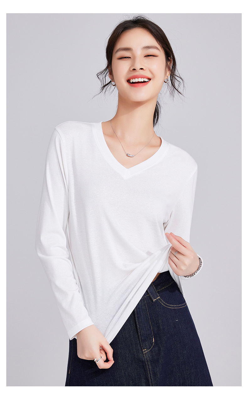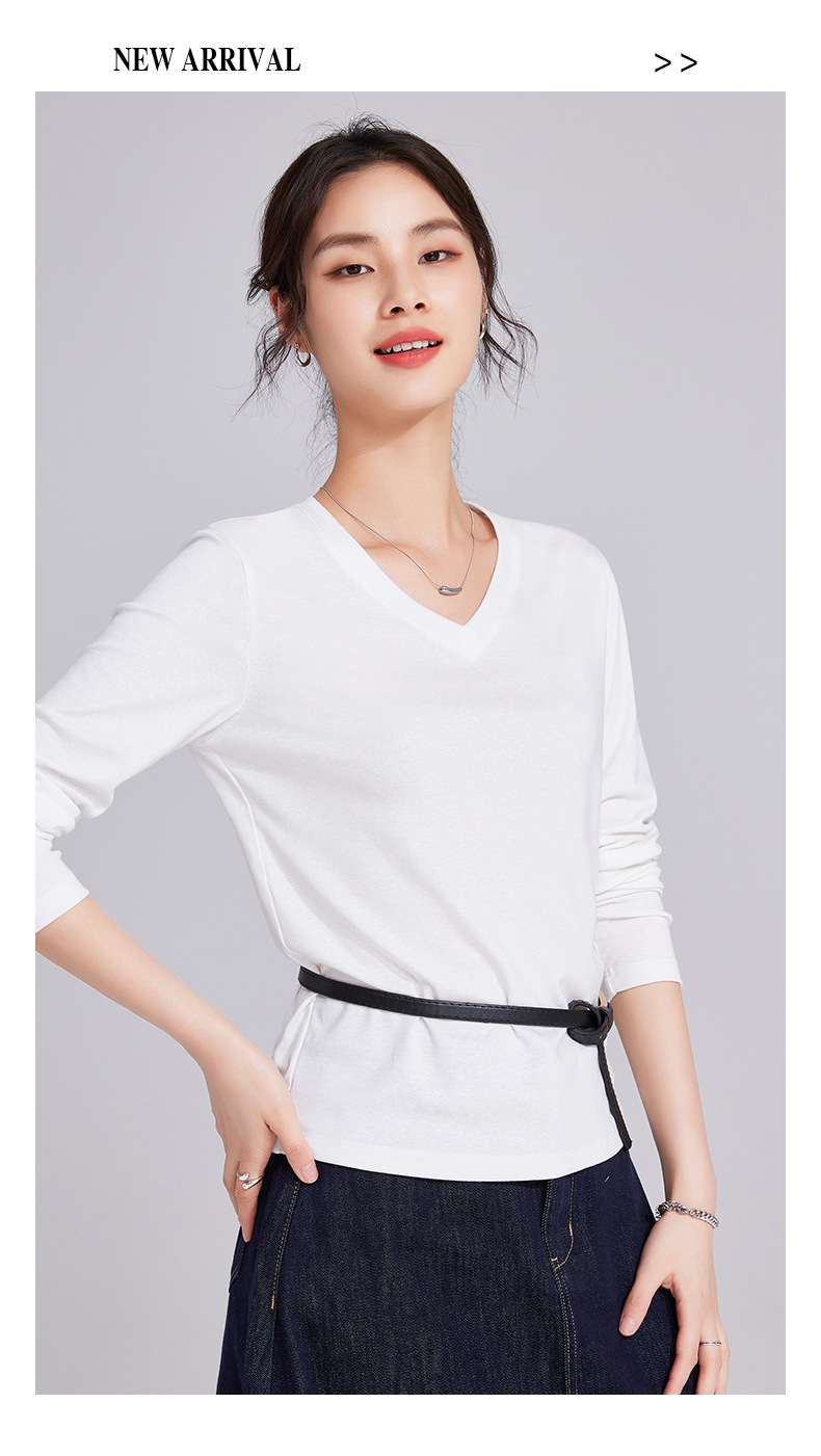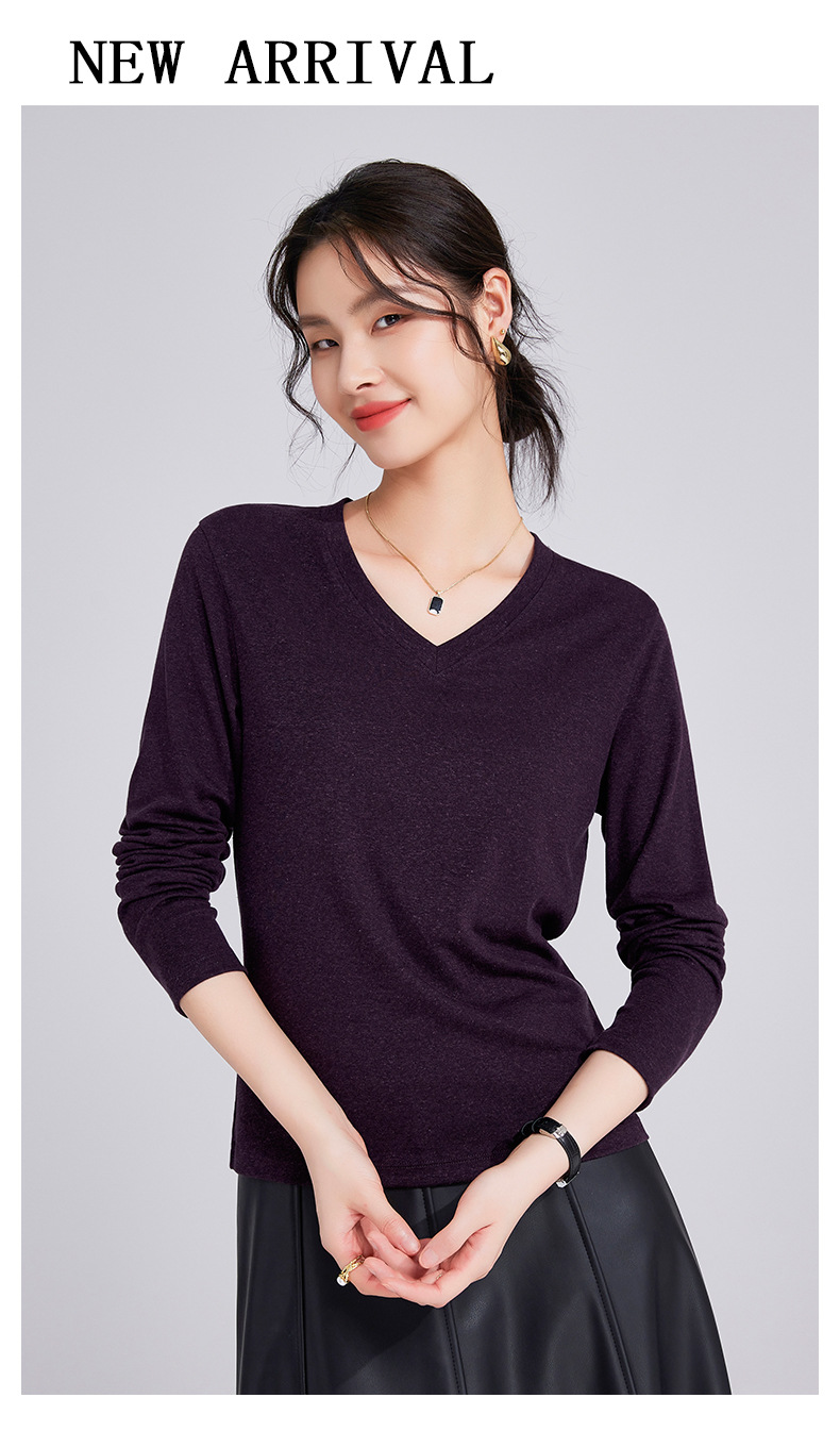 「自j」全新升级【铂金会员119/天猫159/差价40】(01951)洛诗琳莱赛尔天丝V领T恤2025秋季亚麻透气修身打底衫上衣女