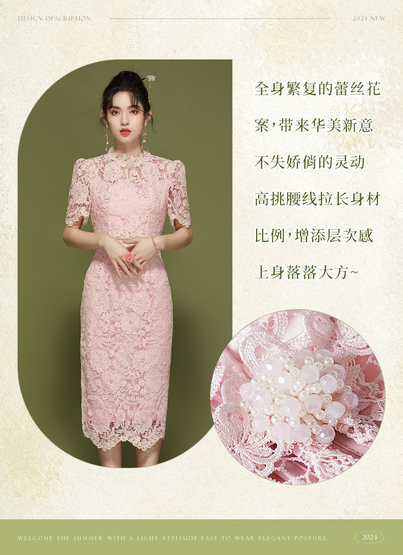 「自」全新升级【铂金会员422/天猫569/差价147】(02052)洛诗琳新中式气质刺绣连衣裙225夏季国风修身改良旗袍裙女