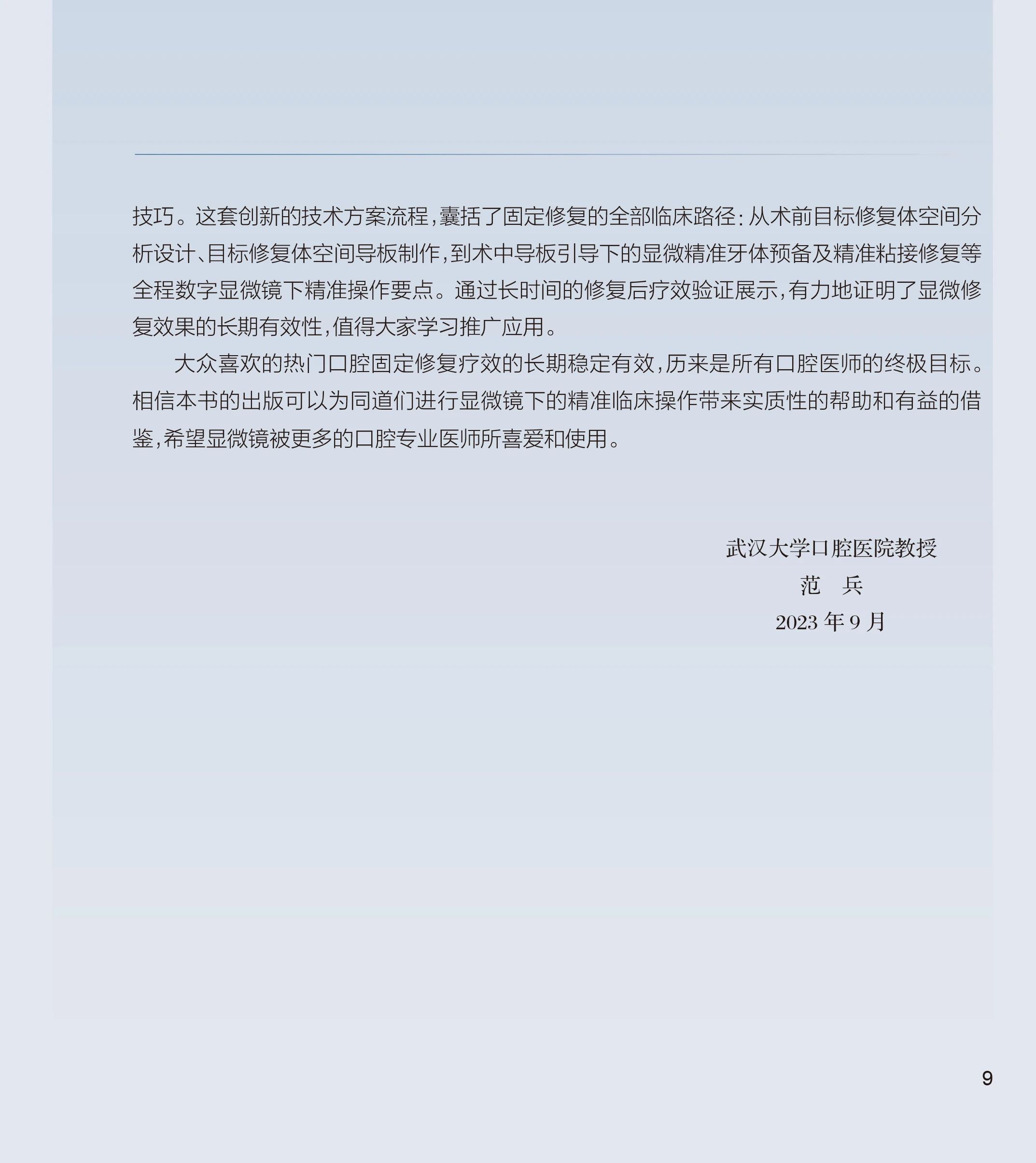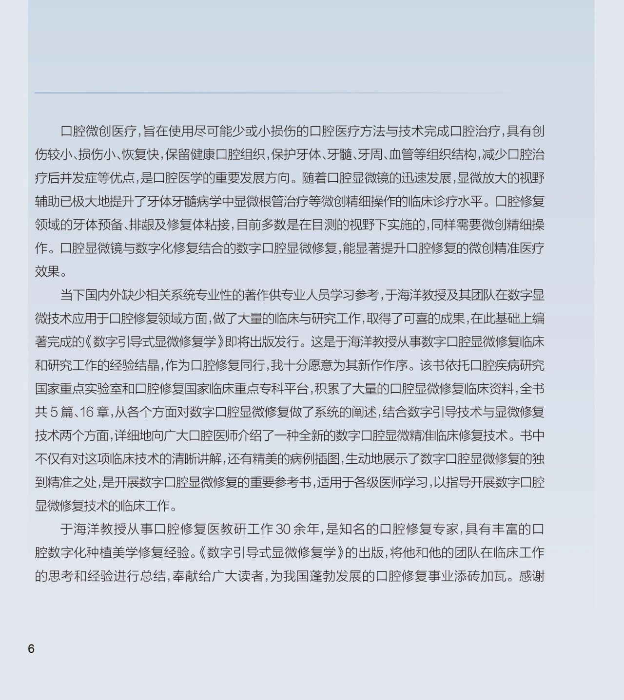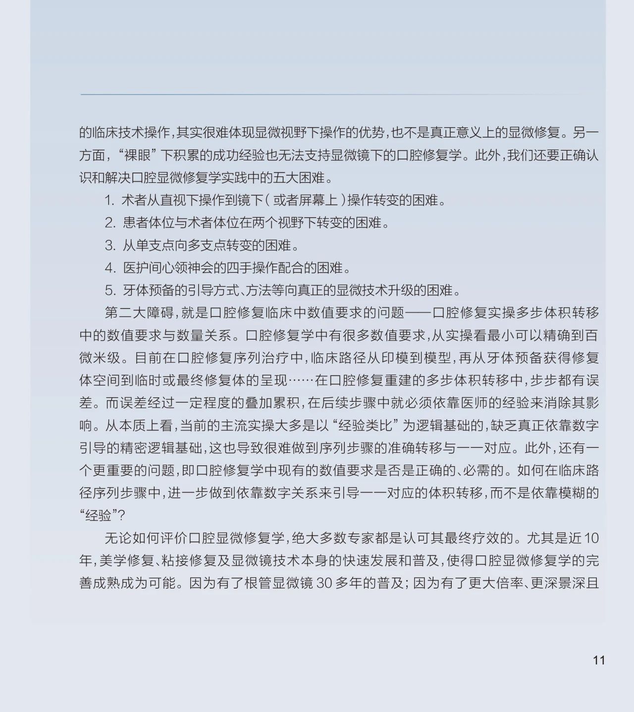 2. 全书共5篇、16章,内容由浅入深、由理论到实践,对数字口腔显微修复做了系统阐述,结合数字引导技术与显微修复技术,详细介绍了一种全新的数字口腔显微精准临床修复技术。