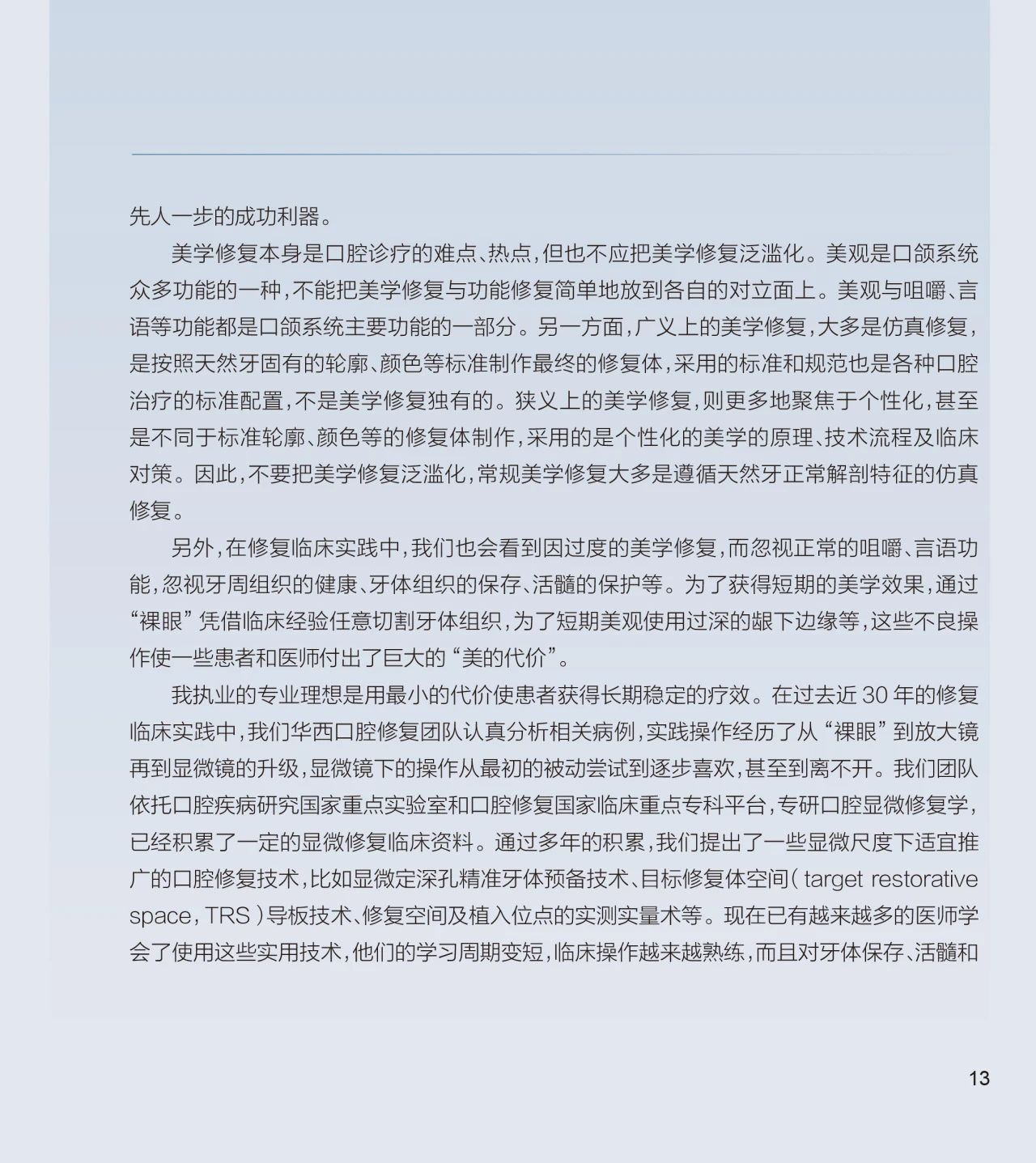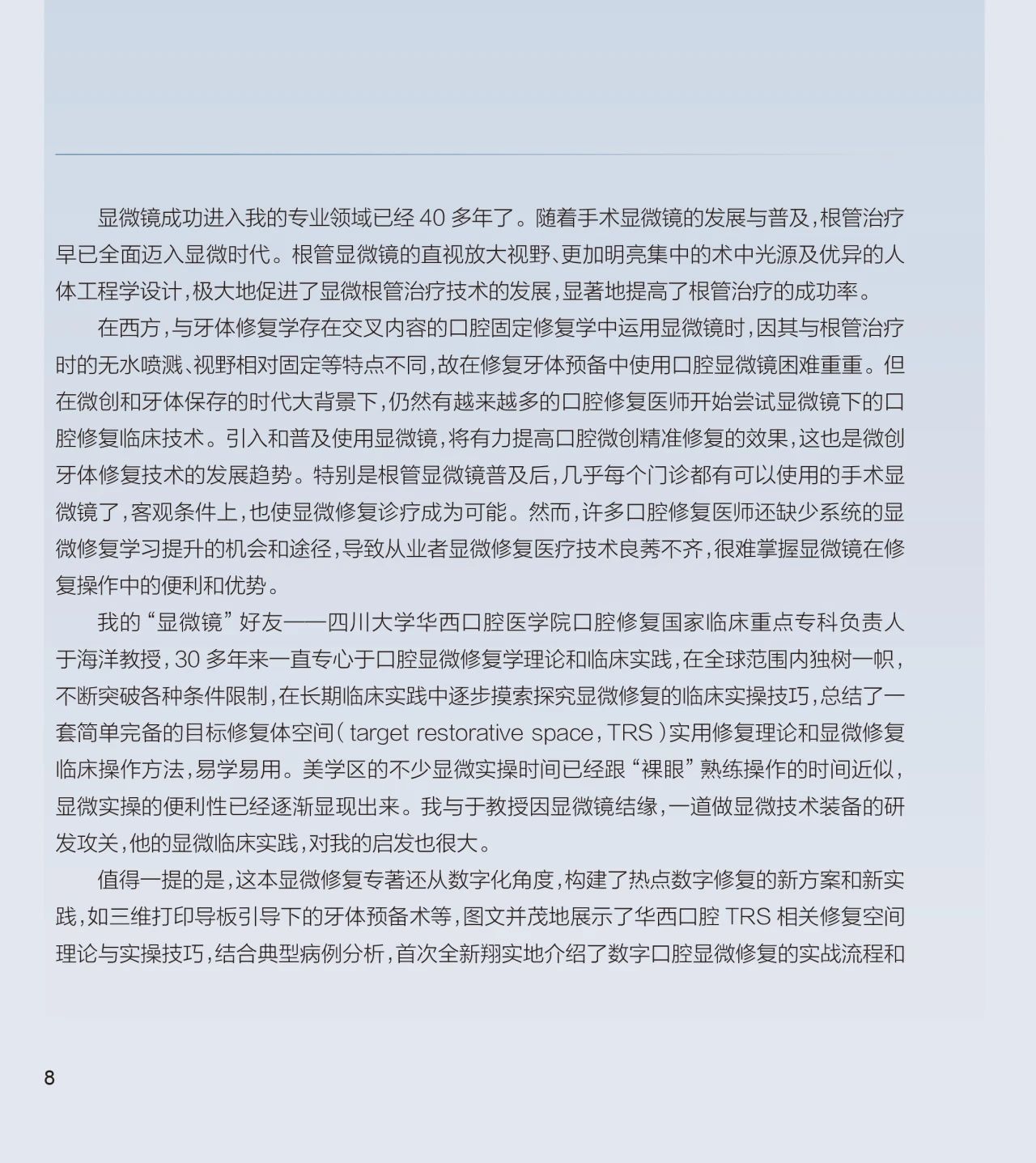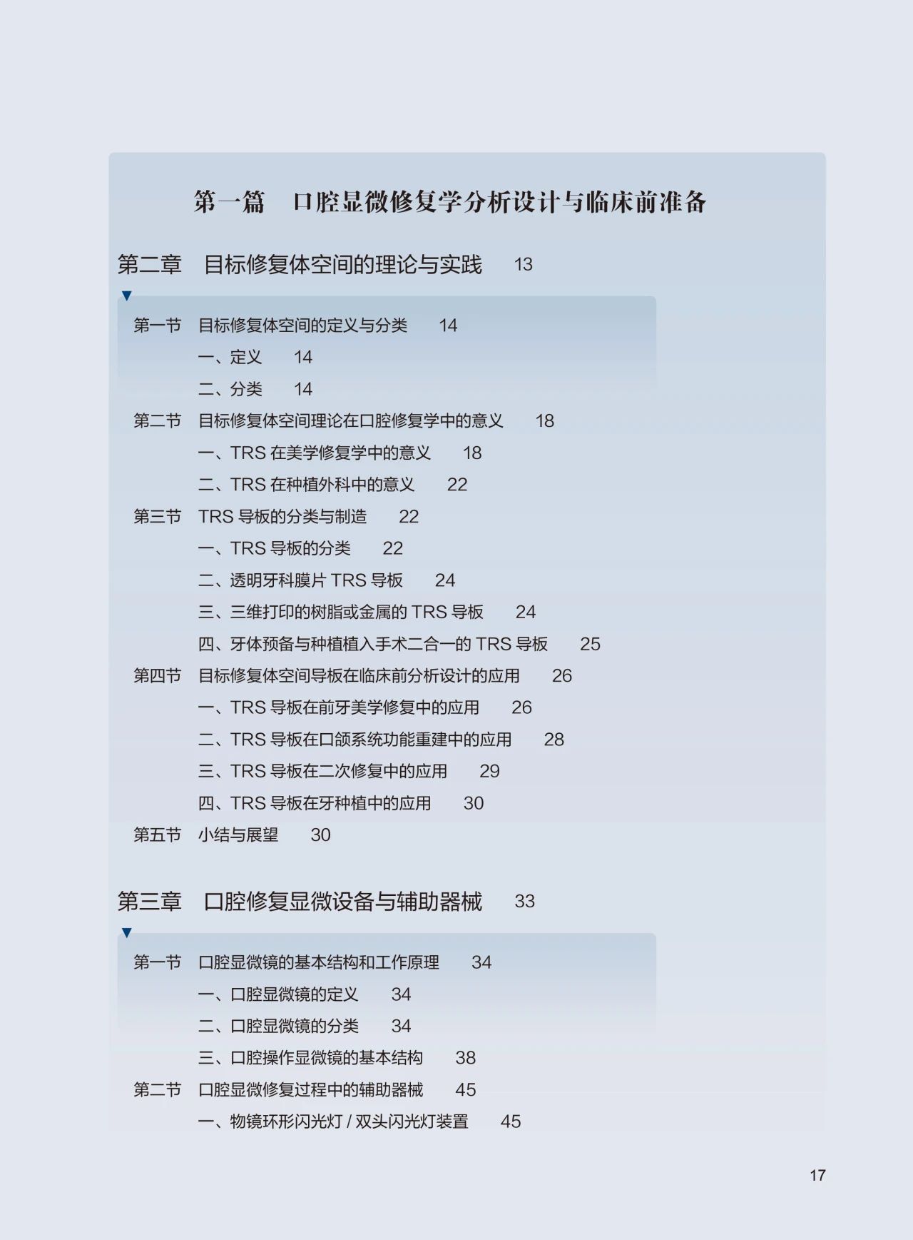 2. 全书共5篇、16章,内容由浅入深、由理论到实践,对数字口腔显微修复做了系统阐述,结合数字引导技术与显微修复技术,详细介绍了一种全新的数字口腔显微精准临床修复技术。