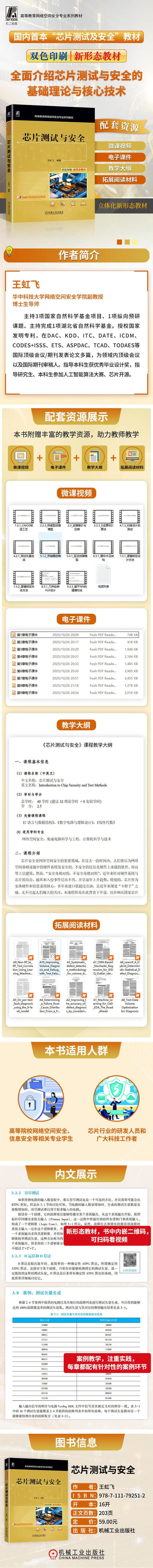 本书适合作为高等院校网络空间安全、集成电路、计算机科学与技术、电子信息工程等相关专业高年级本科生、研究生的教材,也可供芯片测试与安全行业的研发人员和广大科技工作者参考。