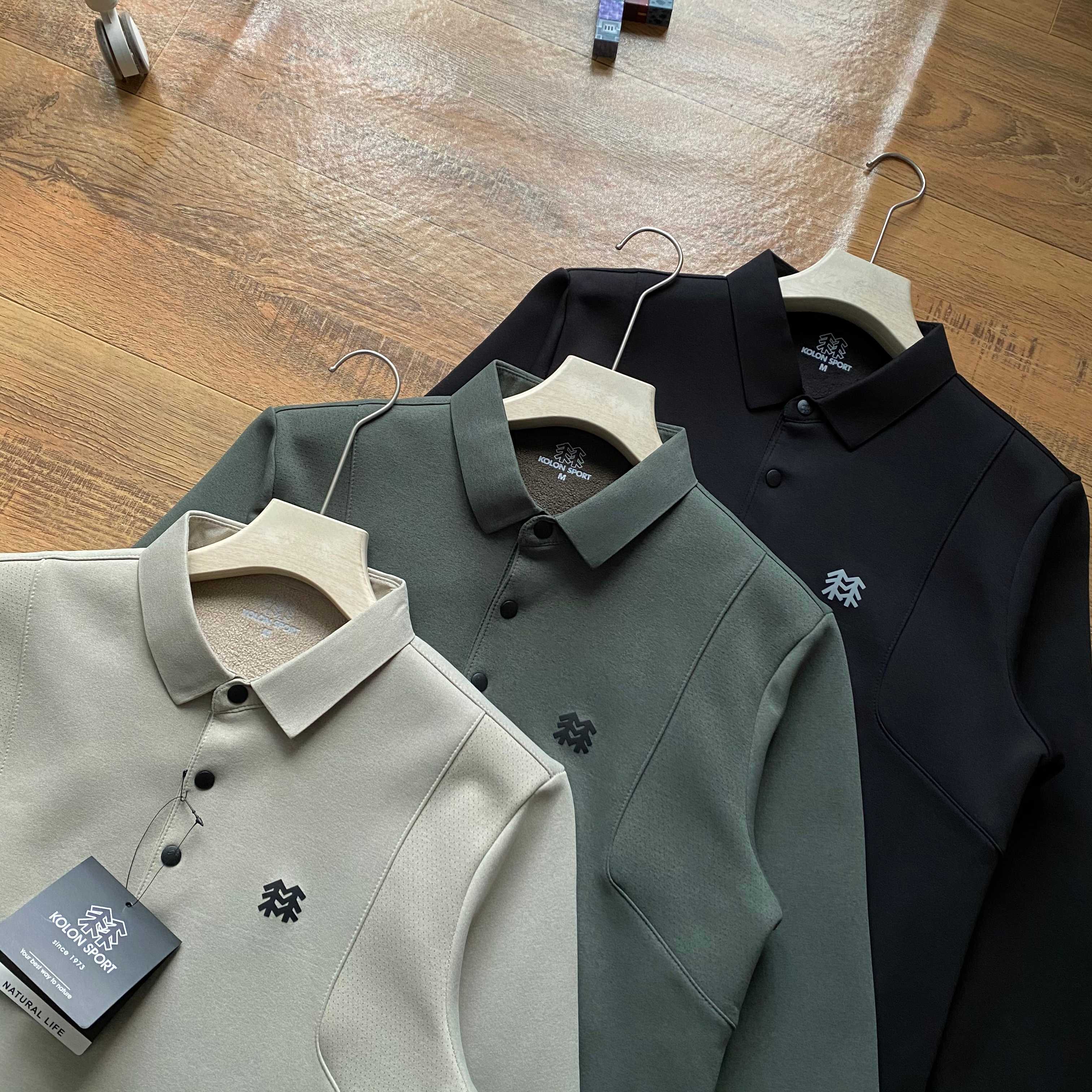 KOLON SPORT可隆秋冬加绒加厚户外翻领长袖POLO打底