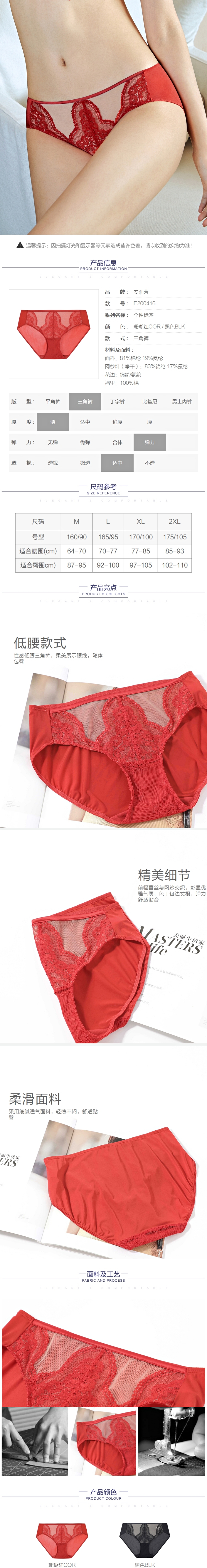 安莉芳内裤女士结婚新娘本命年红色蕾丝包臀低腰三角裤E200416