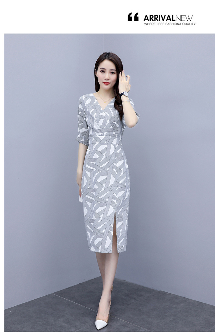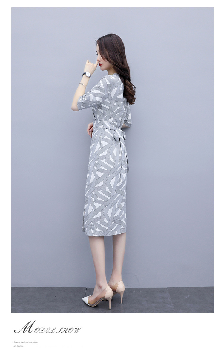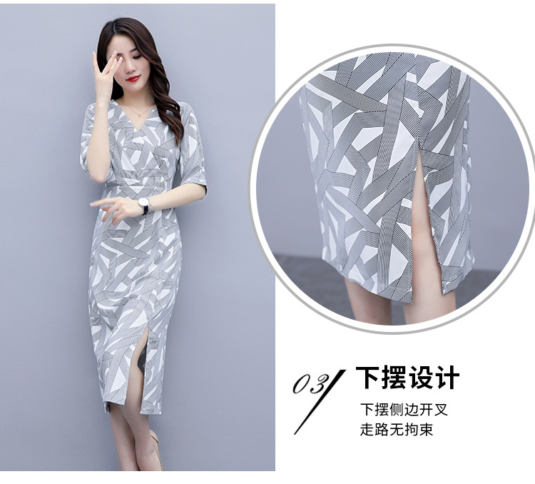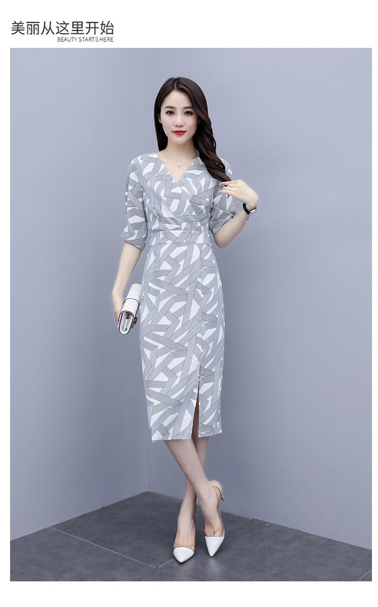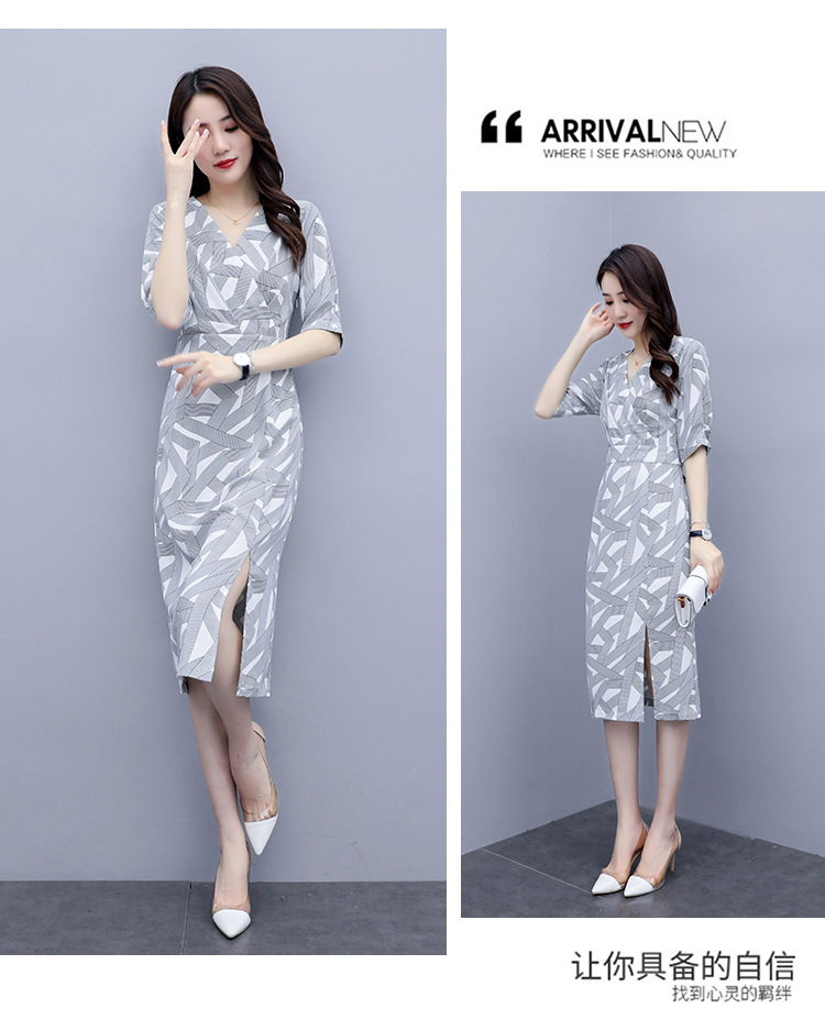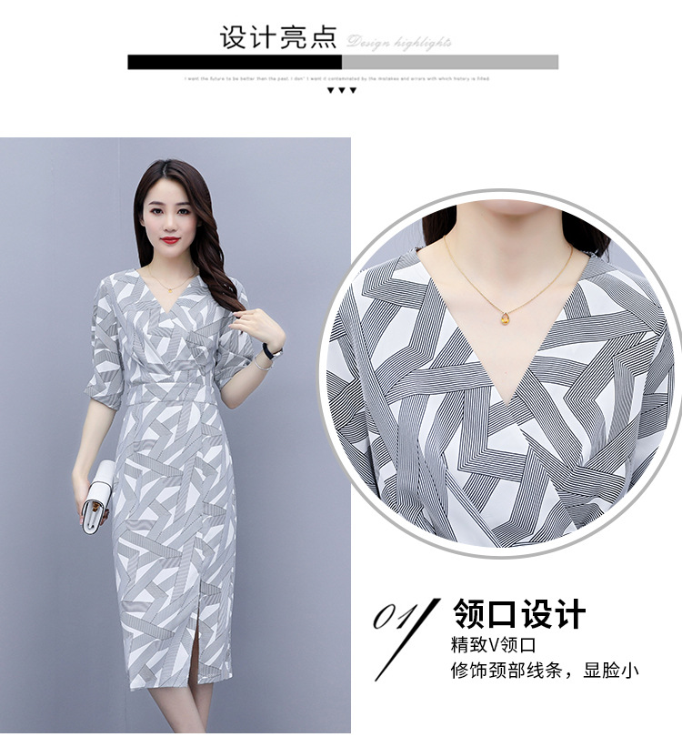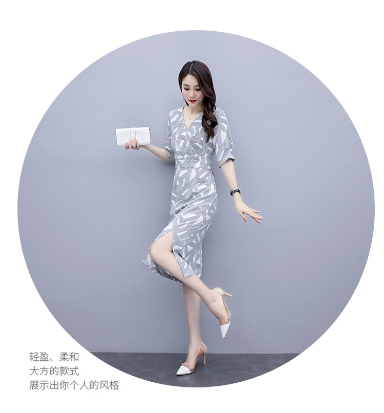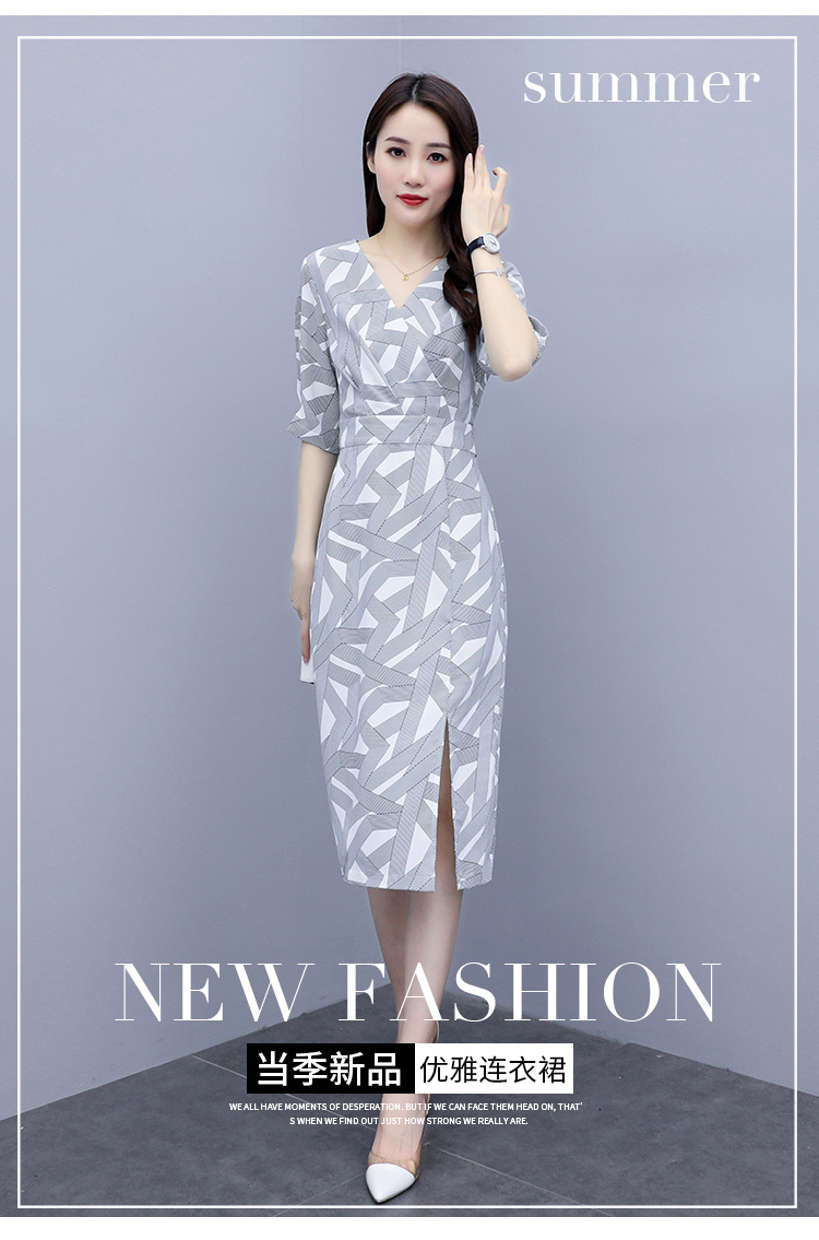 XFFS-WR31759女人味印花连衣裙夏新款韩版气质淑女优雅修身高腰一步裙