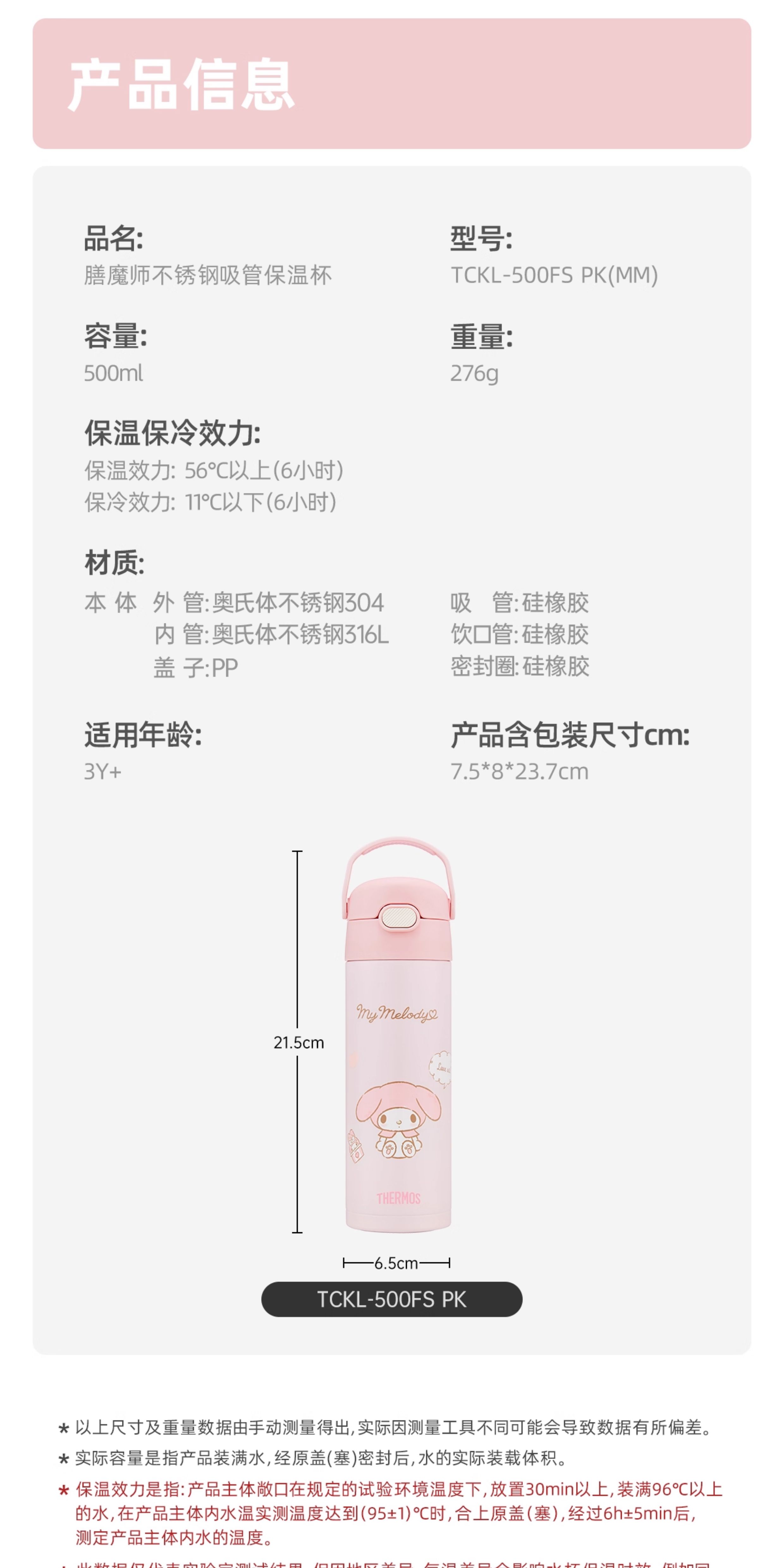 【暖冬季】日本膳魔师高真空不锈钢保温杯TCKL-500FS PK(甜心美乐蒂)水杯