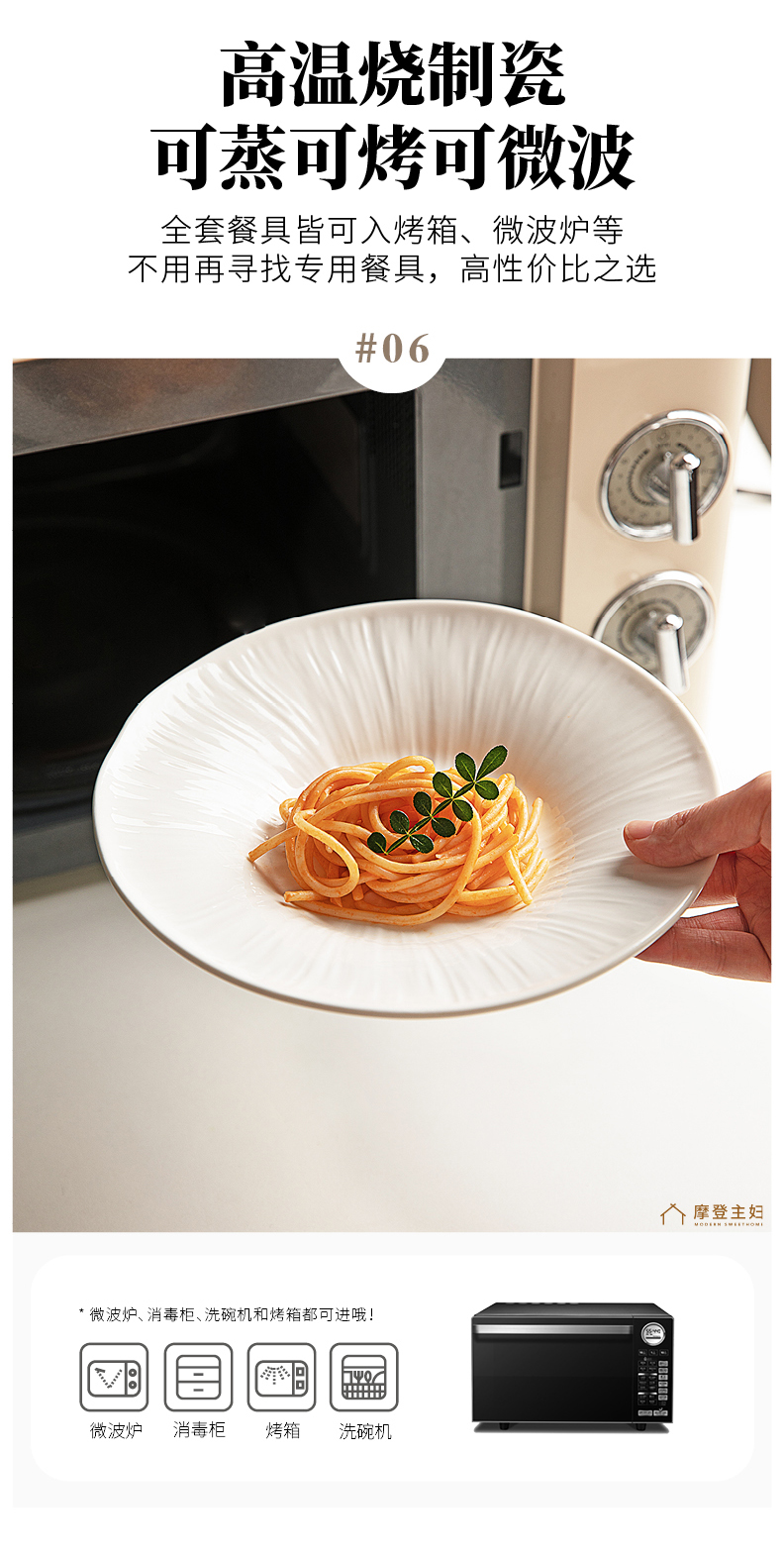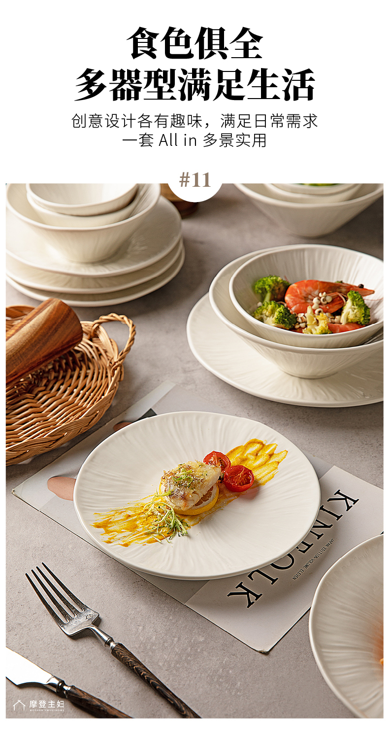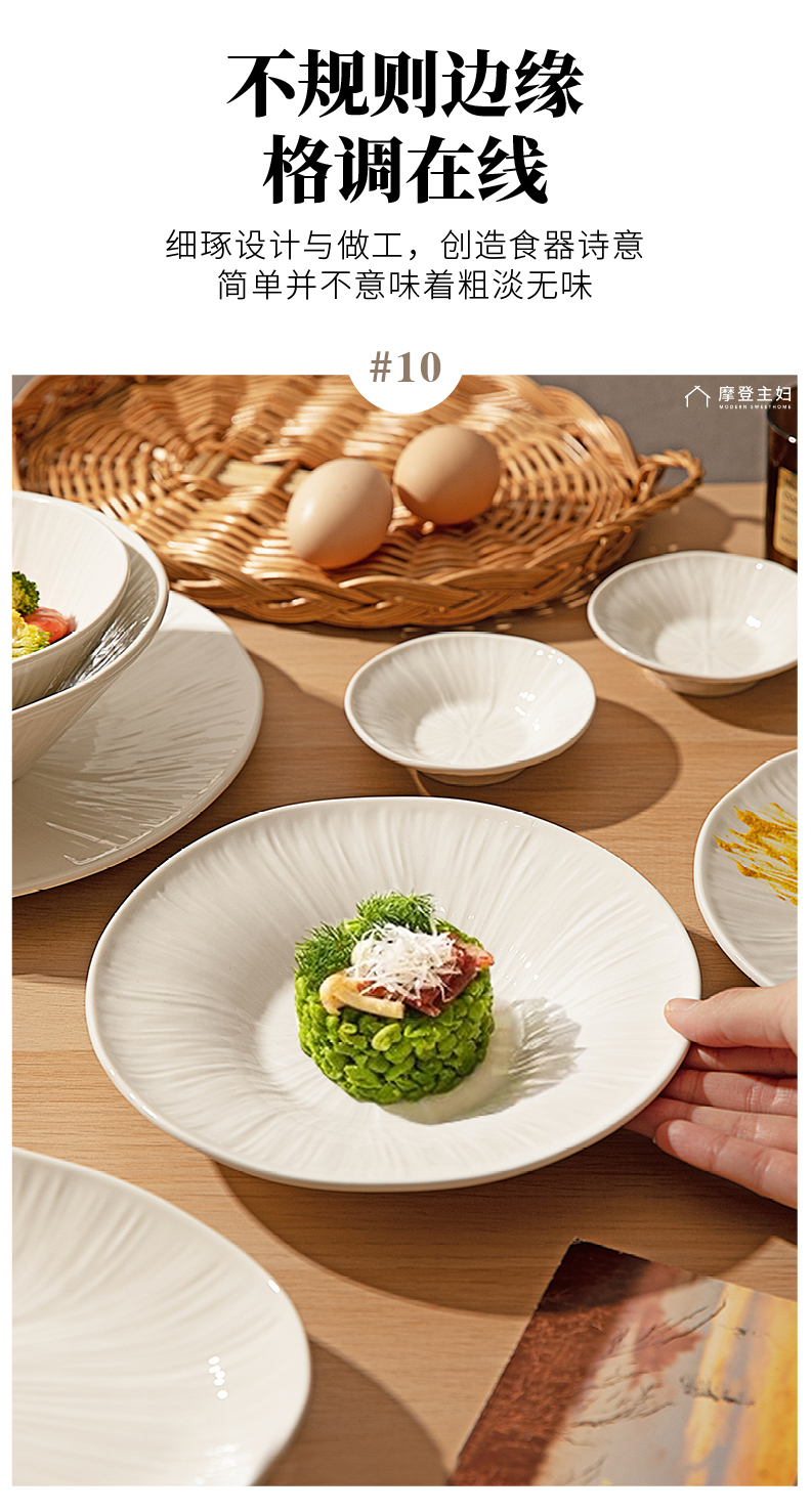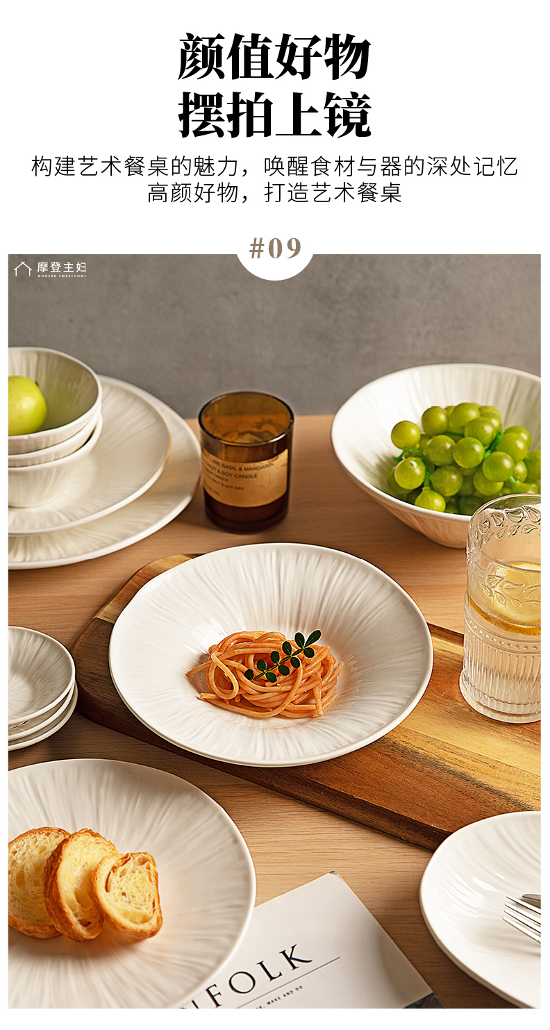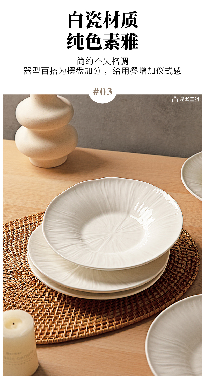 摩登主妇牛排餐盘白色盘子家用菜盘高级感餐具意面盘平盘深西餐盘