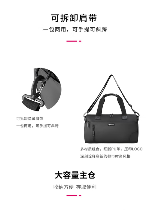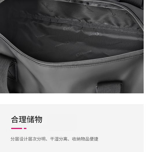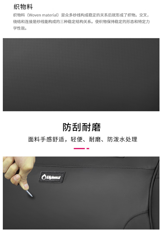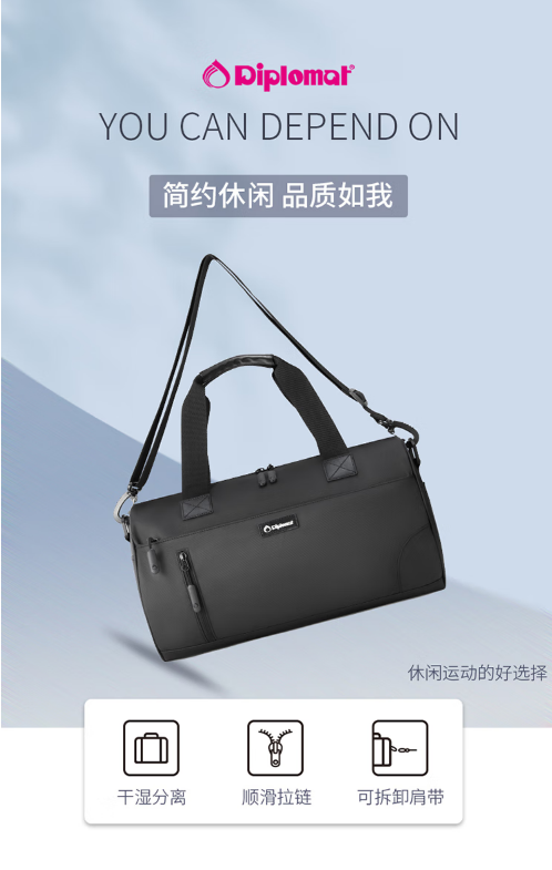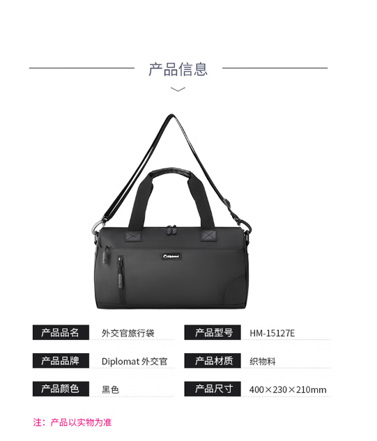 Diplomat外交官 多用途休闲简约旅行袋 HM-15127E黑色 商品图4