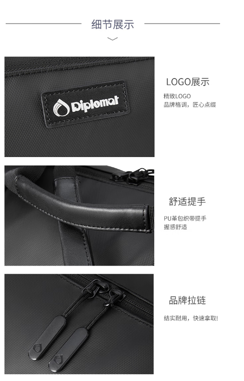 Diplomat外交官 多用途休闲简约旅行袋 HM-15127E黑色 商品图3