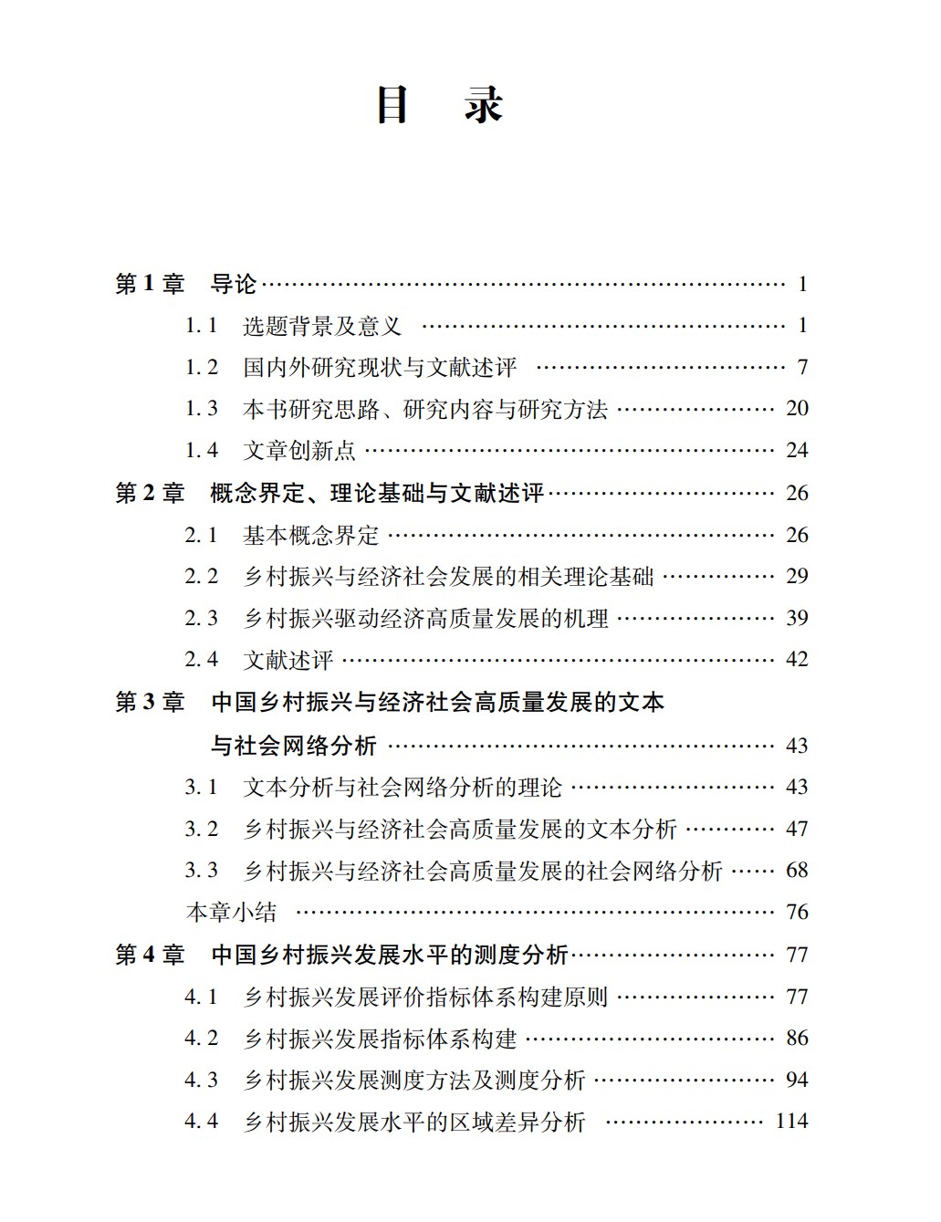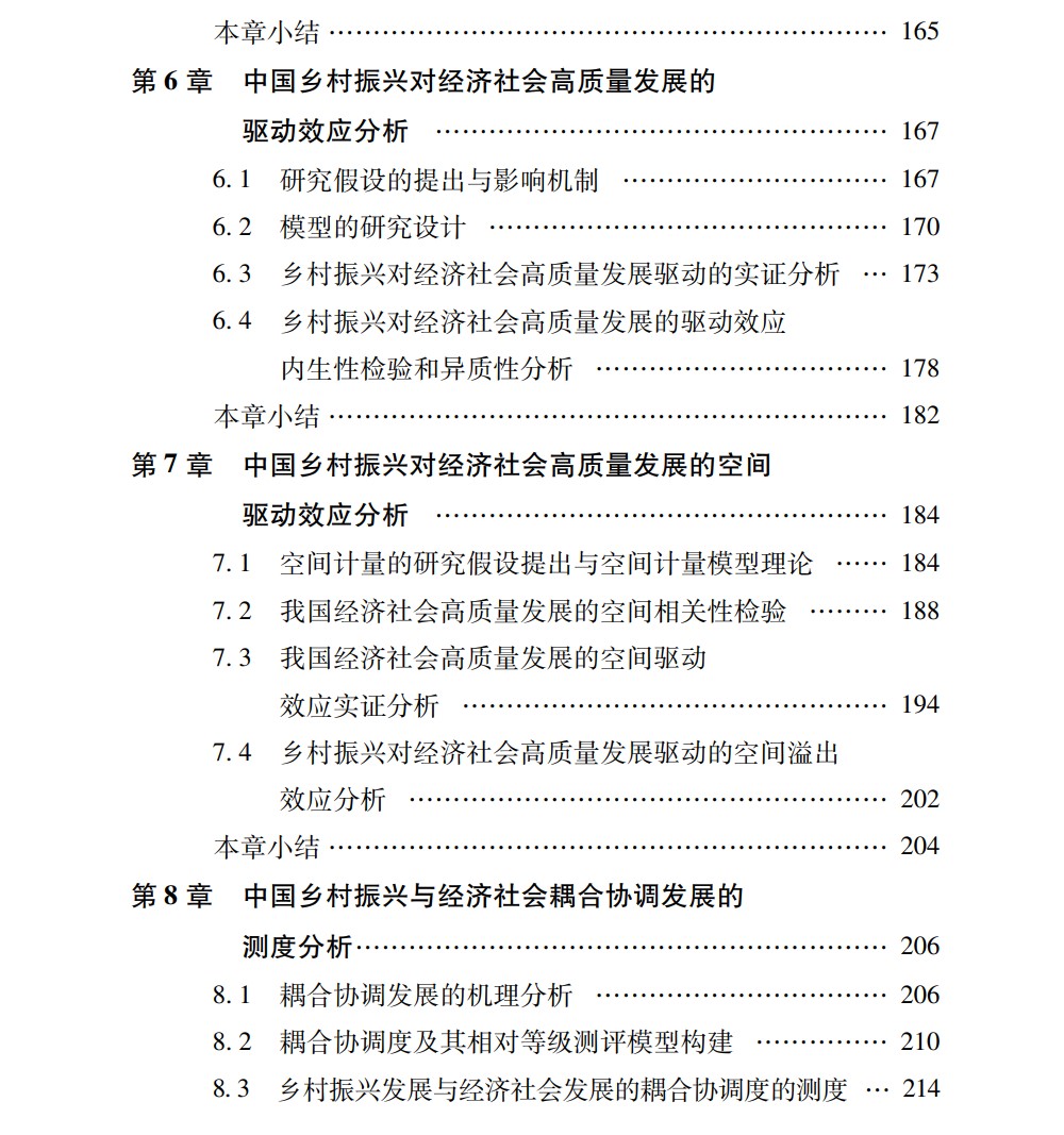 本书围绕乡村振兴与经济社会高质量发展的内在逻辑、测度方法及协同路径展开深入研究。全书共八章,在理论层面,系统构建了包含产业兴旺、生态宜居、乡风文明、治理有效、生活富裕的乡村振兴评价指标体系,以及涵盖经济发展、创新驱动、民生福祉、绿色生态、安全保障的高质量发展指标体系,并通过文本分析与社会网络分析揭示了两者的研究热点与关联机制。