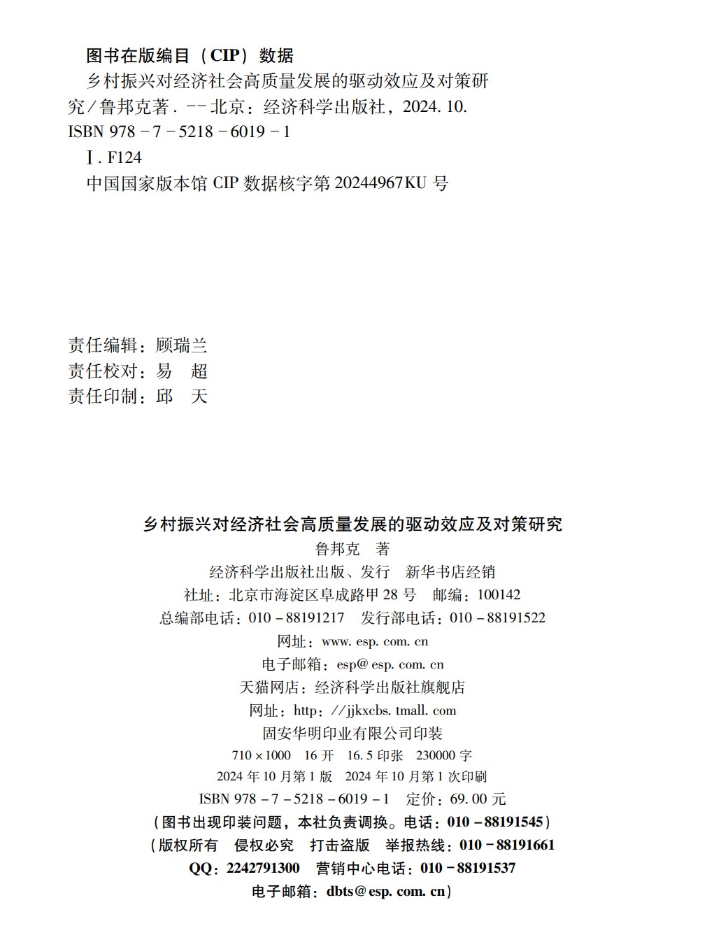《乡村振兴对经济社会高质量发展的驱动效应及对策研究》以国家战略为导向,构建多维度评价指标体系,通过政策文本分析与空间计量模型,揭示乡村振兴对高质量发展的驱动机制、空间溢出效应及耦合协调关系。研究发现,乡村振兴通过产业升级、生态优化等路径推动城乡融合,农业大省效应显著,区域协同发展潜力巨大。本书为学界与政策制定者提供了理论创新与实践路径,是破解城乡发展不平衡的权威指南。