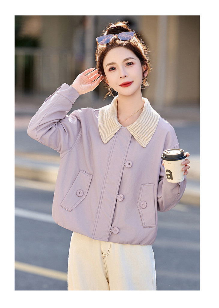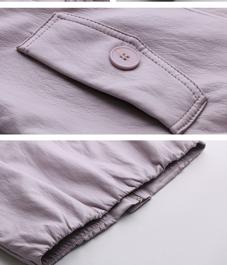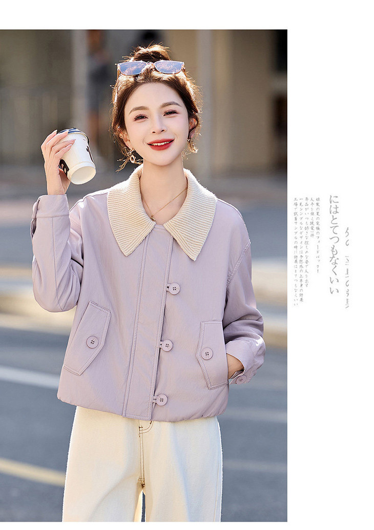 简约风超软蛋白皮皮衣春季新款短款可拆卸针织领皮衣外套WAYA20 商品图4