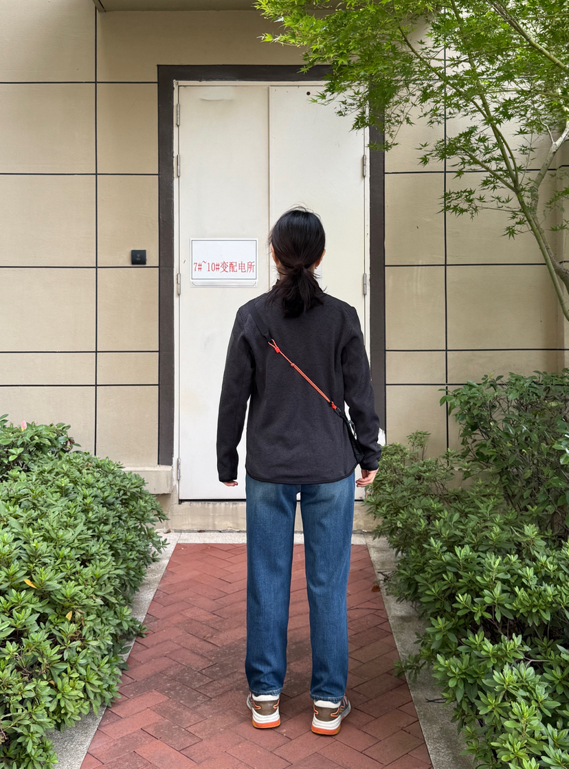男:阿木173-138斤 内搭一件T 穿L修身合适刚刚好!
