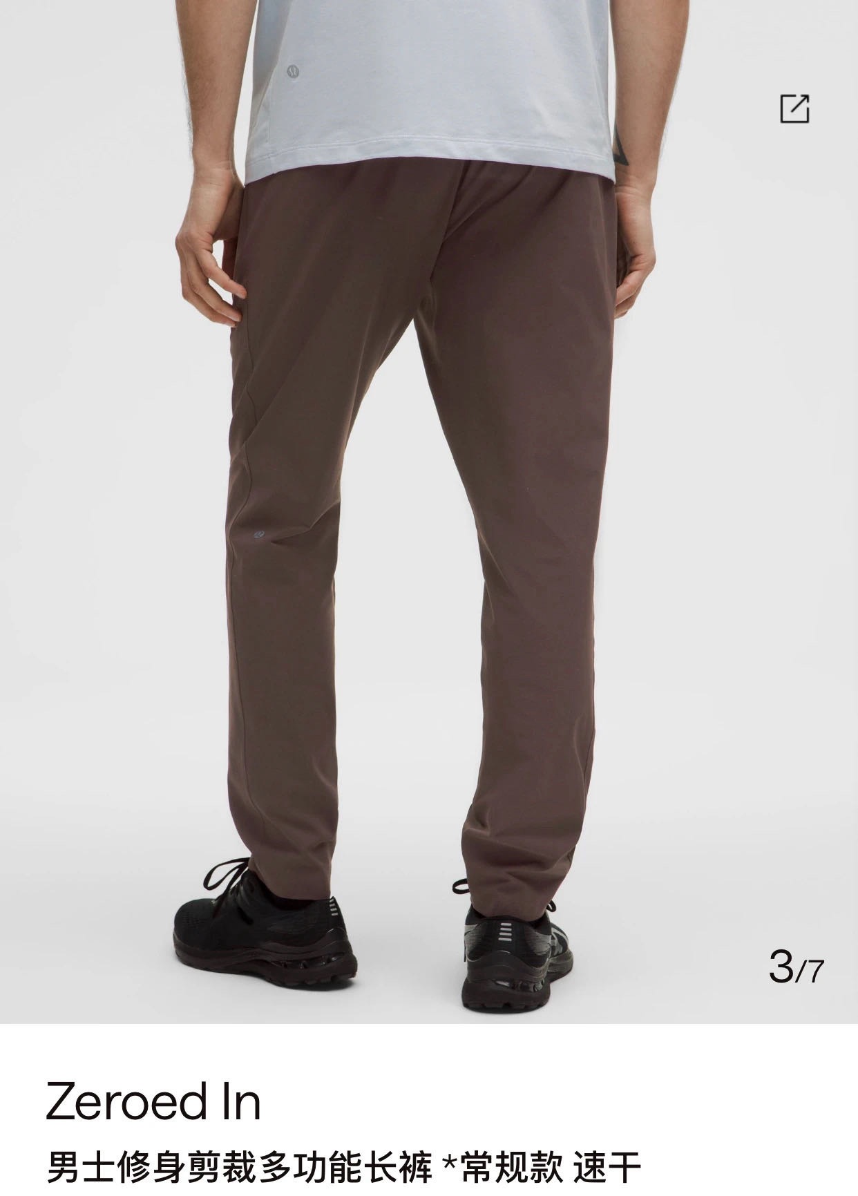 露露Zeroed ln系列!超轻零压芯吸速干高弹!男士多功能松紧腰立裁长裤露露家,荃新 Zeroed ln 系列,男士多功能立裁长裤!