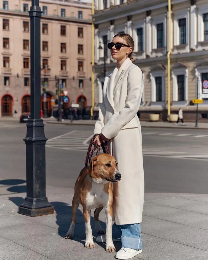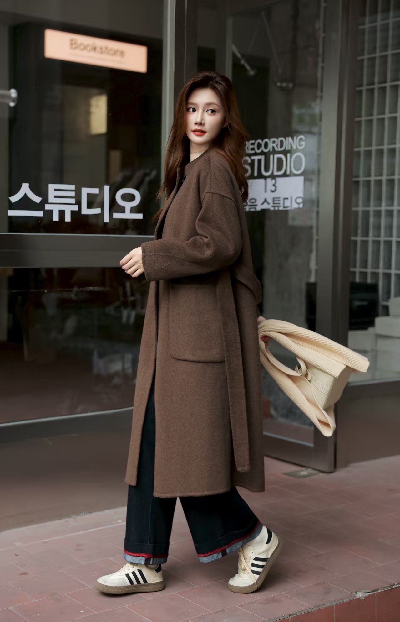 而搭配蓝色牛仔裤和白色运动鞋,则更加的休闲随性。H版型的大衣,搭配的阔腿裤直筒略阔就好,这样能能保持身形修长的一致性。