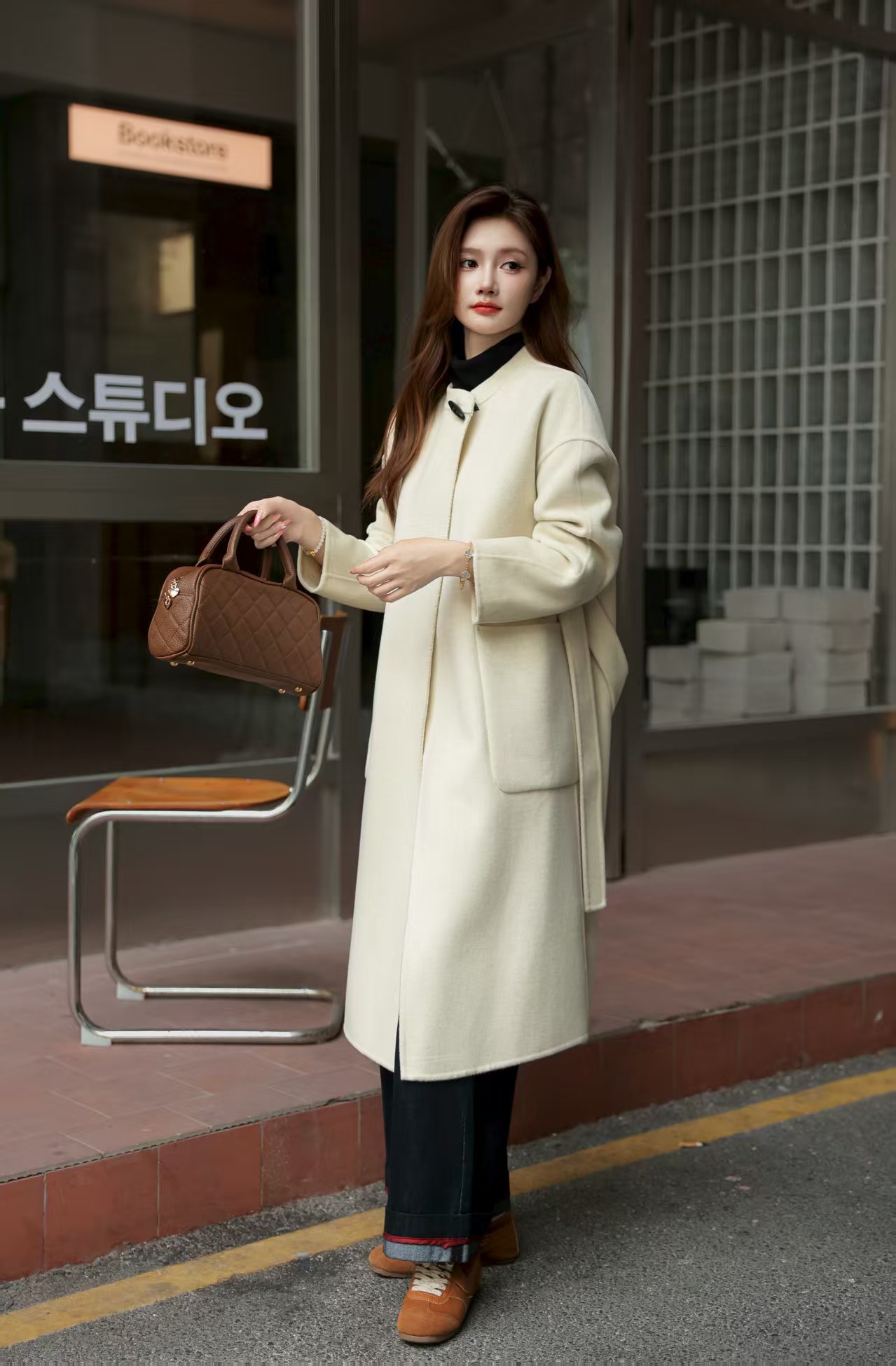 绝版羊绒大衣 高货 柔软不扎肉 softcolly含羊绒的莱赛尔羊绒大衣 一粒牛角立领扣 白月光 经典款 高克重 柔软不扎
