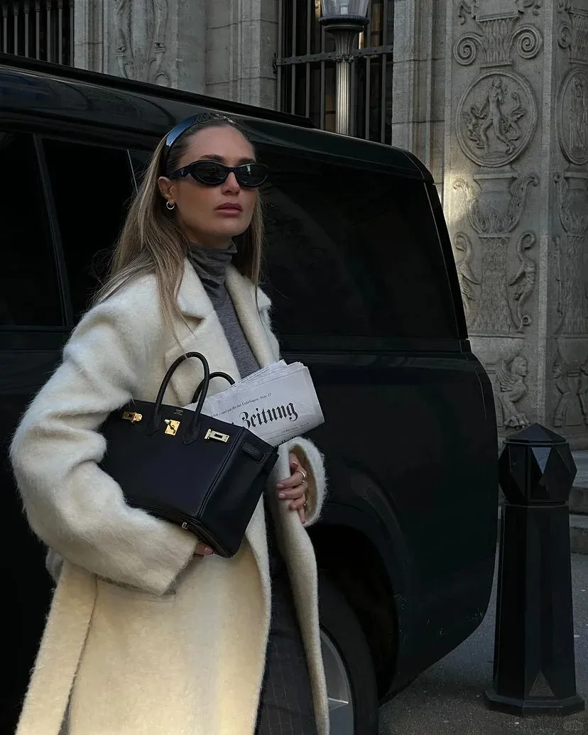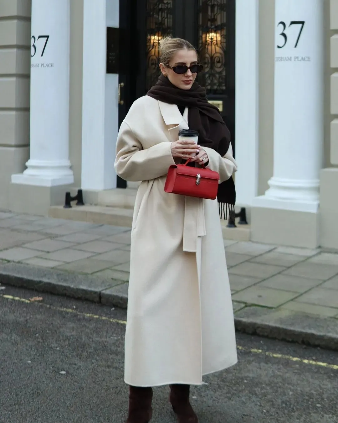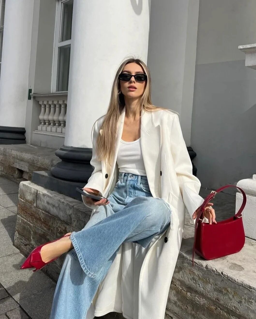 白色大衣与阔腿裤,像冬天里的一页留白。它不争不抢,却自带纯净的气场,搭配阔腿裤,把身姿衬得笔直又松弛,用简单的颜色撑起高级的气质。