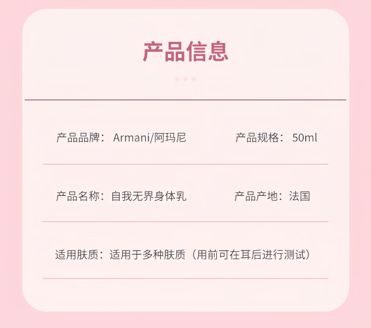 阿玛尼Armani自我无界身体乳50ML