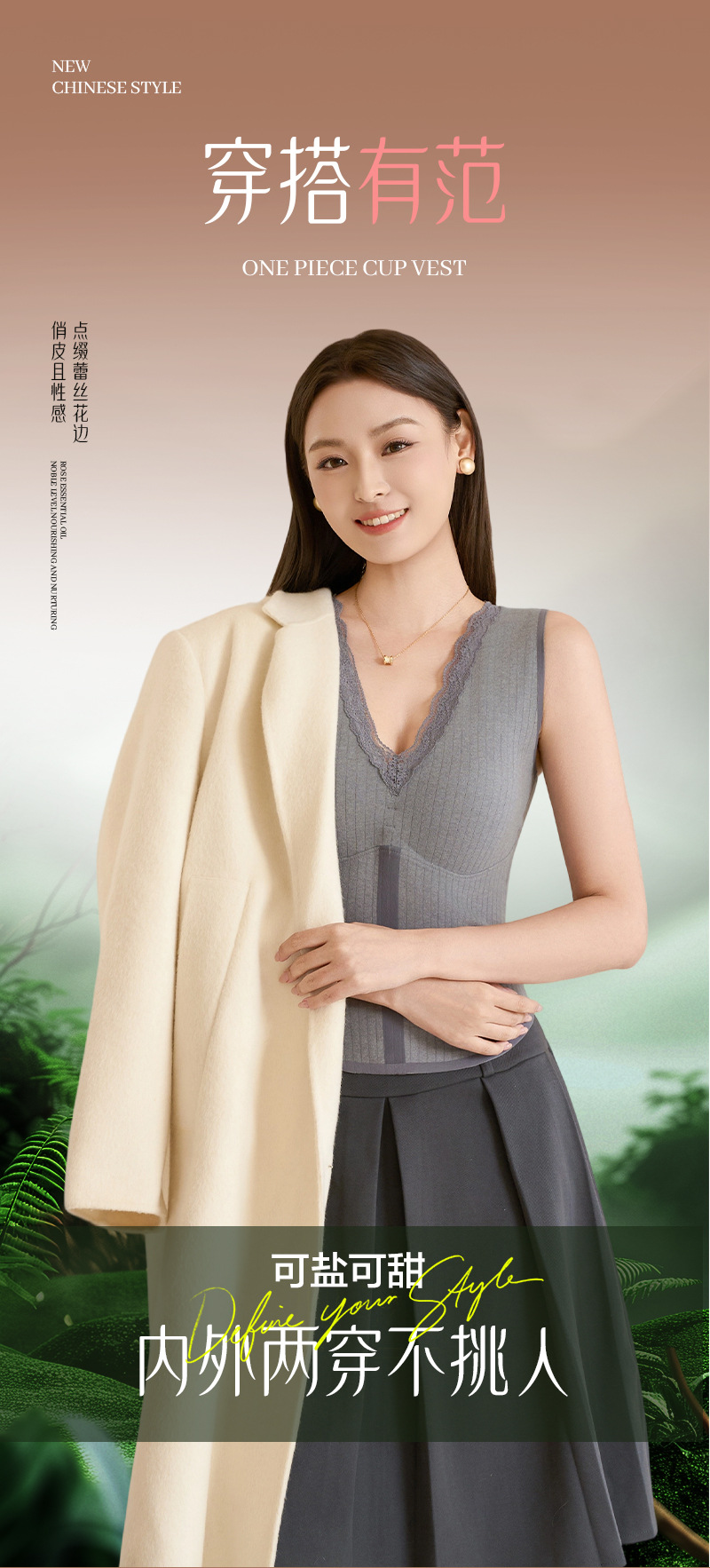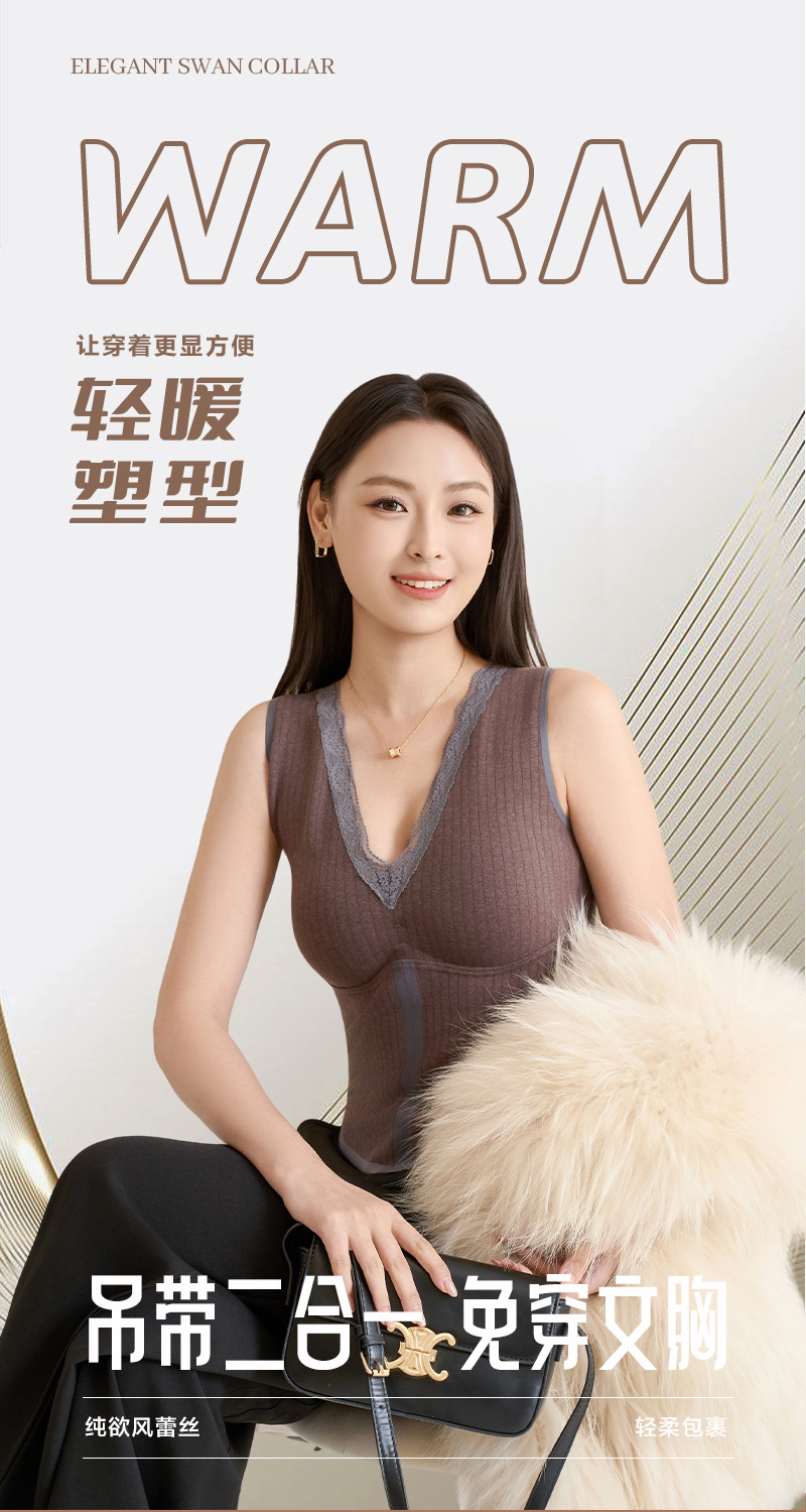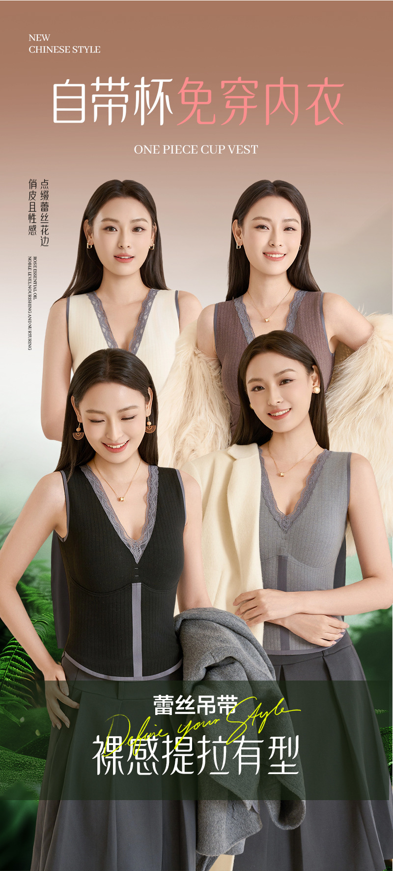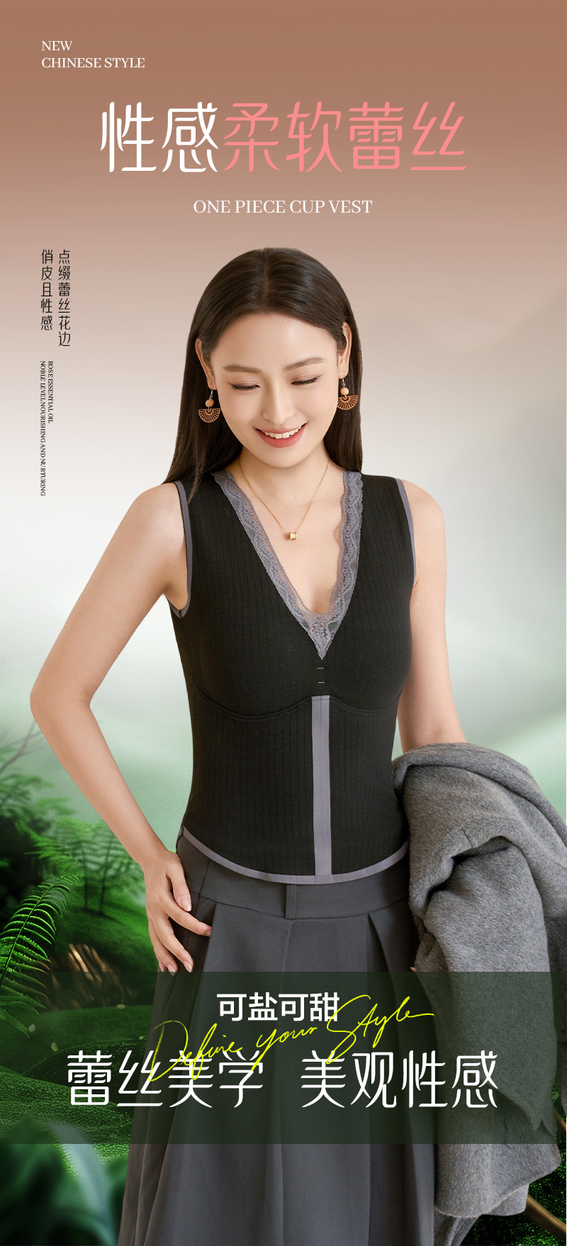 雀说蕾丝边V领阳离子无痕美背无钢圈性感舒适外穿条纹女士保暖背心女ALWT75