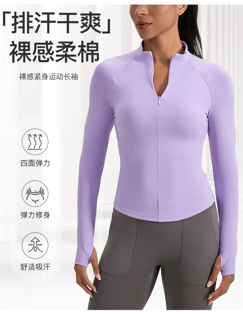 跃牌【欲动春风】系列 女士半拉链瑜伽服长袖立领运动健身上衣52559