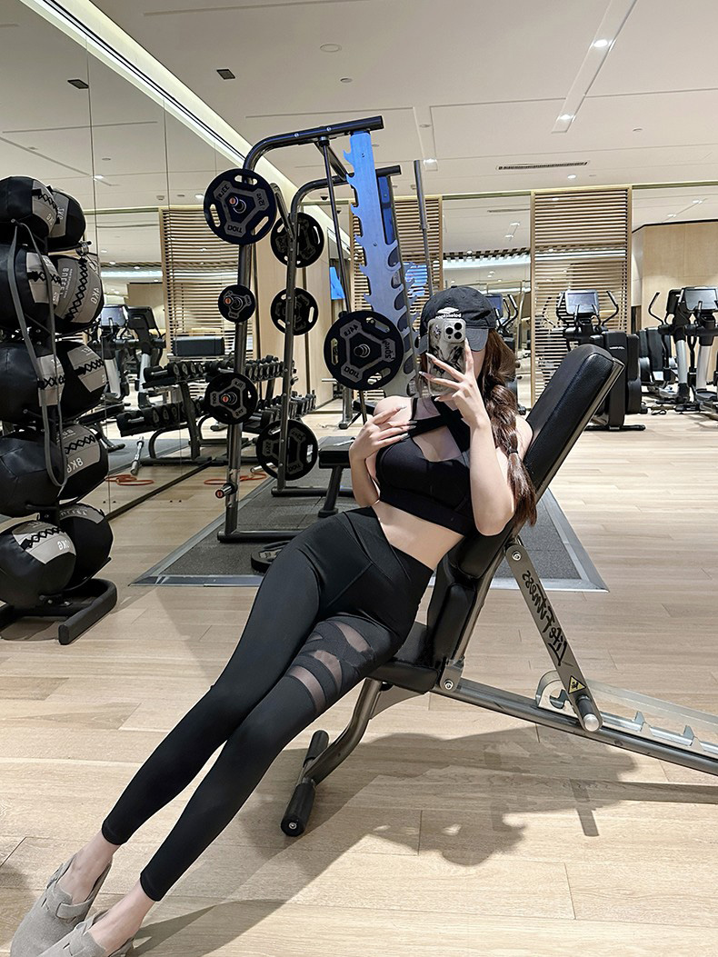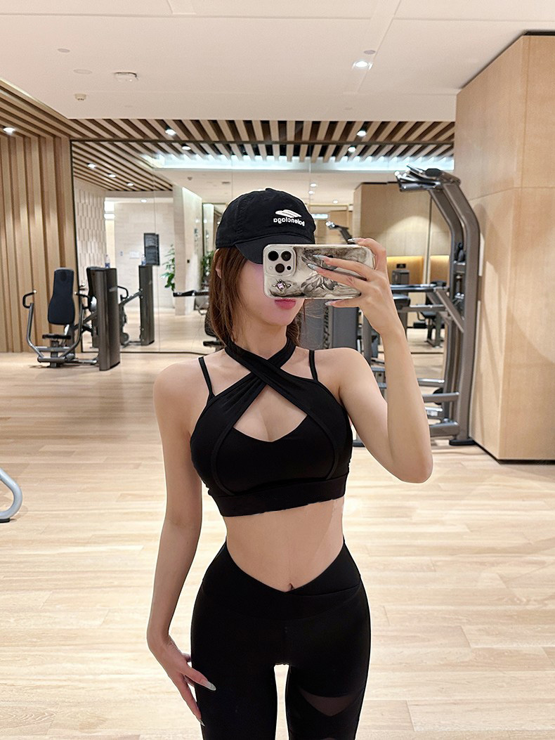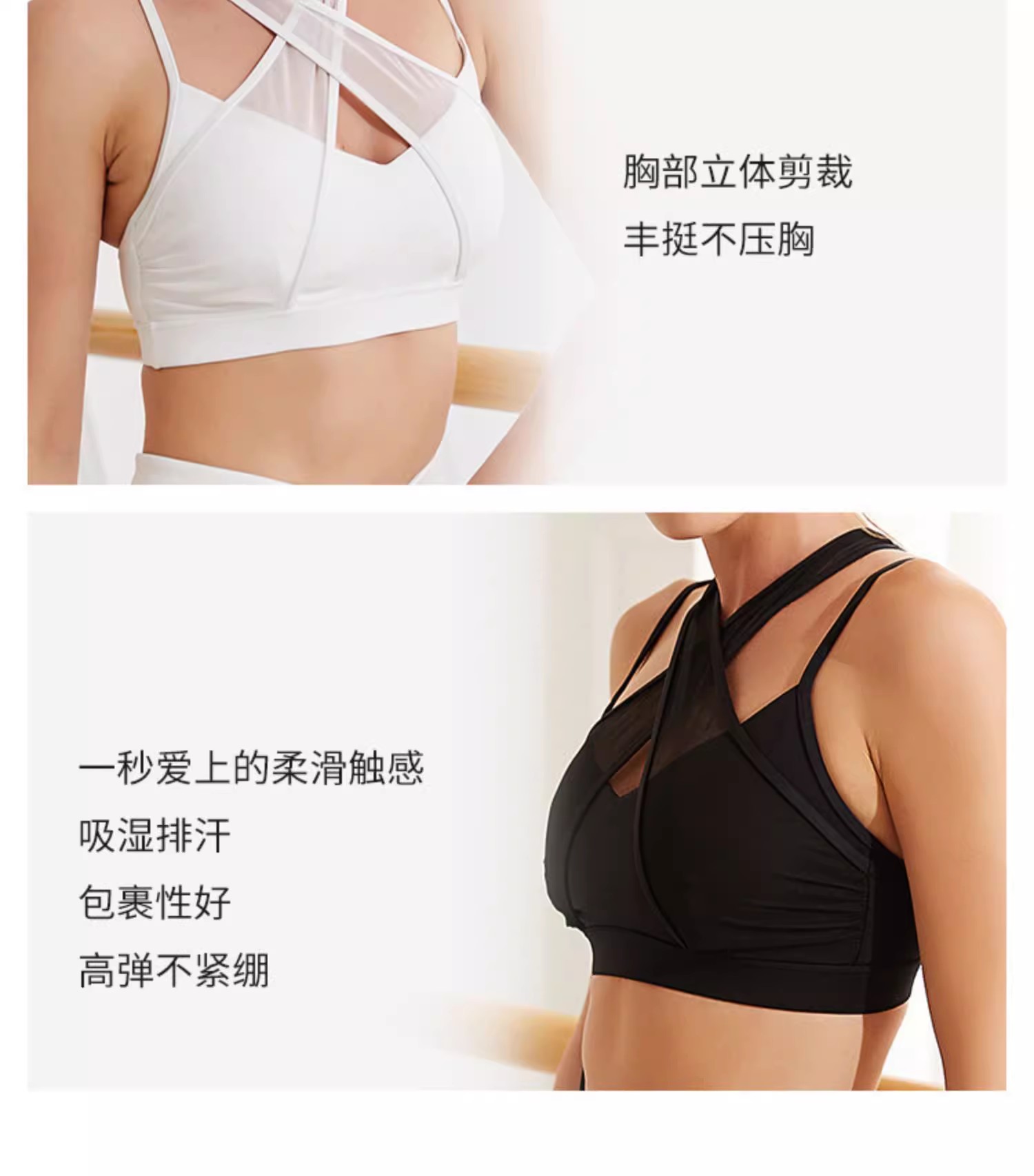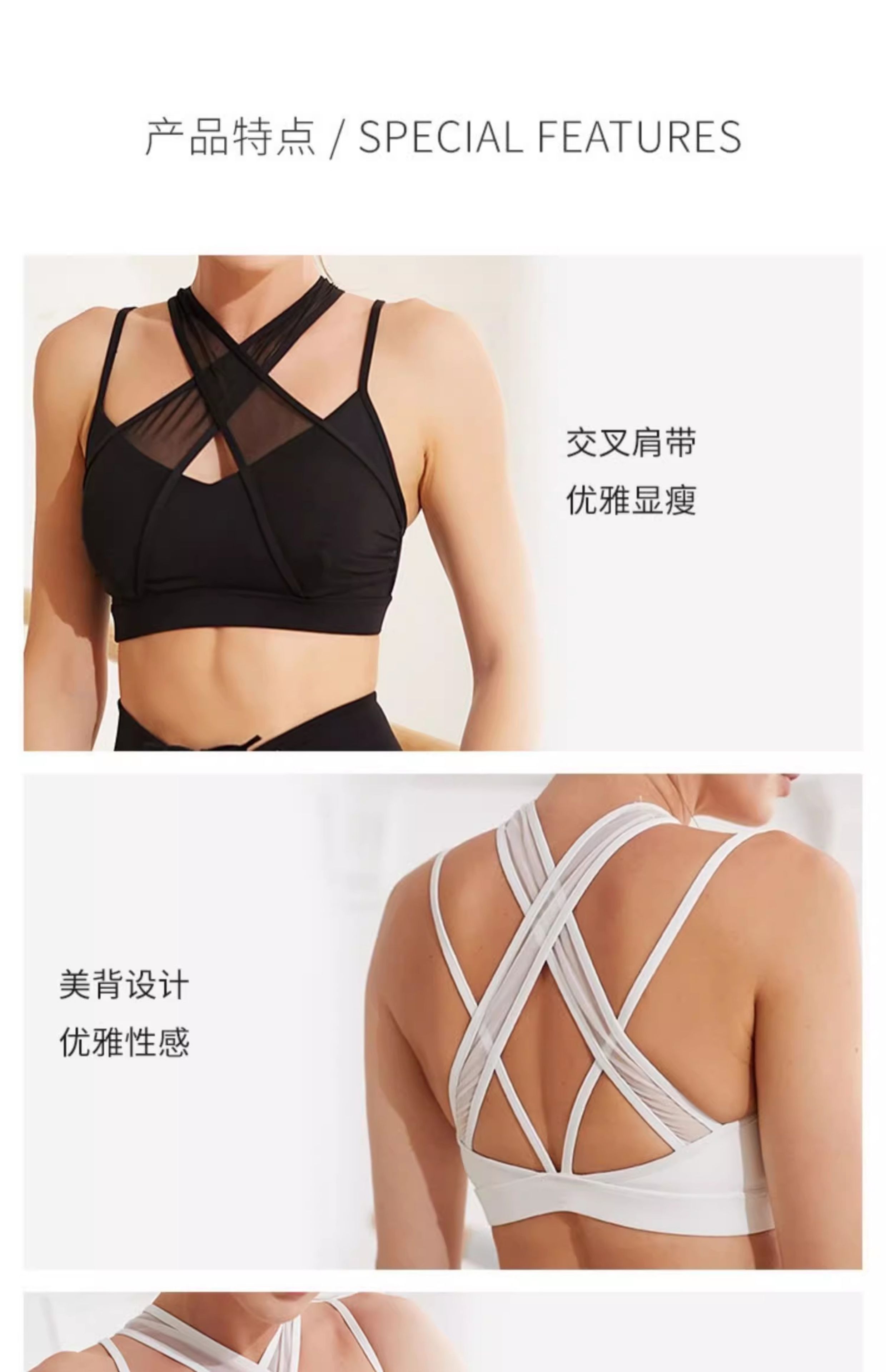 跃牌【菲芬之想】系列网纱交叉舒适瑜伽文胸聚拢透气无钢圈运动内衣高级感训练健身套装