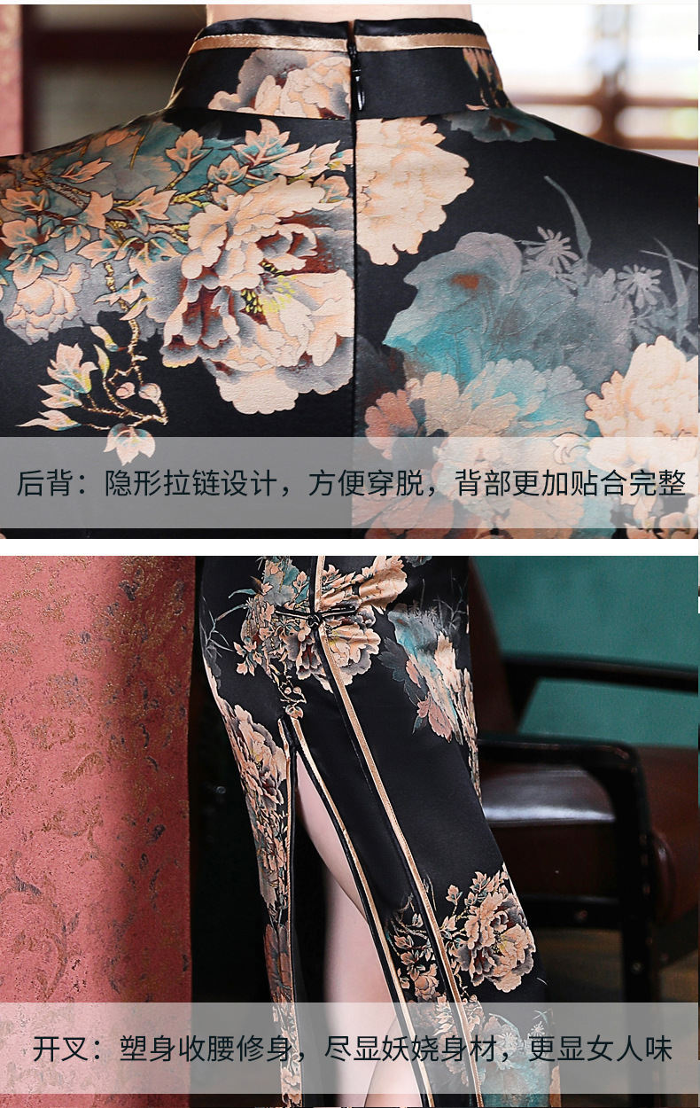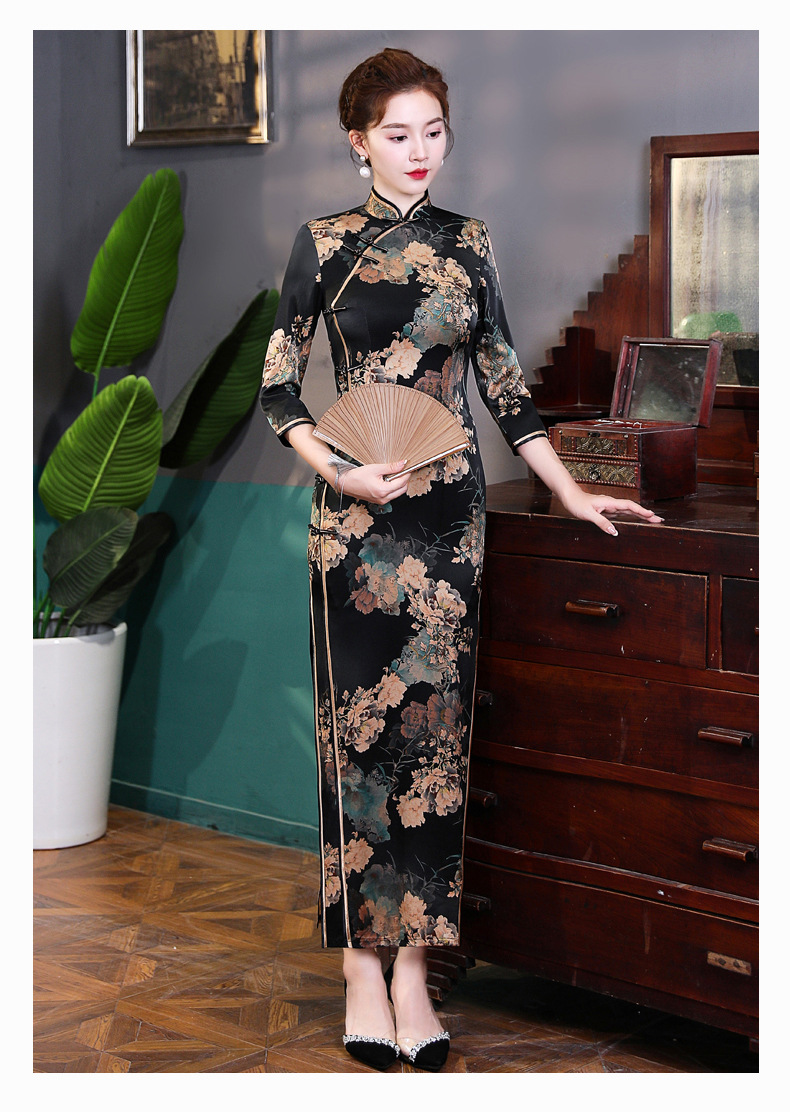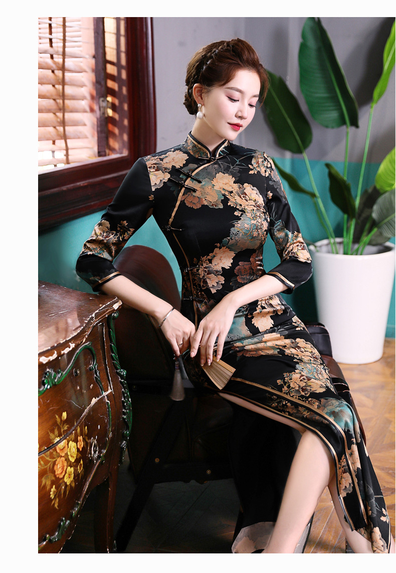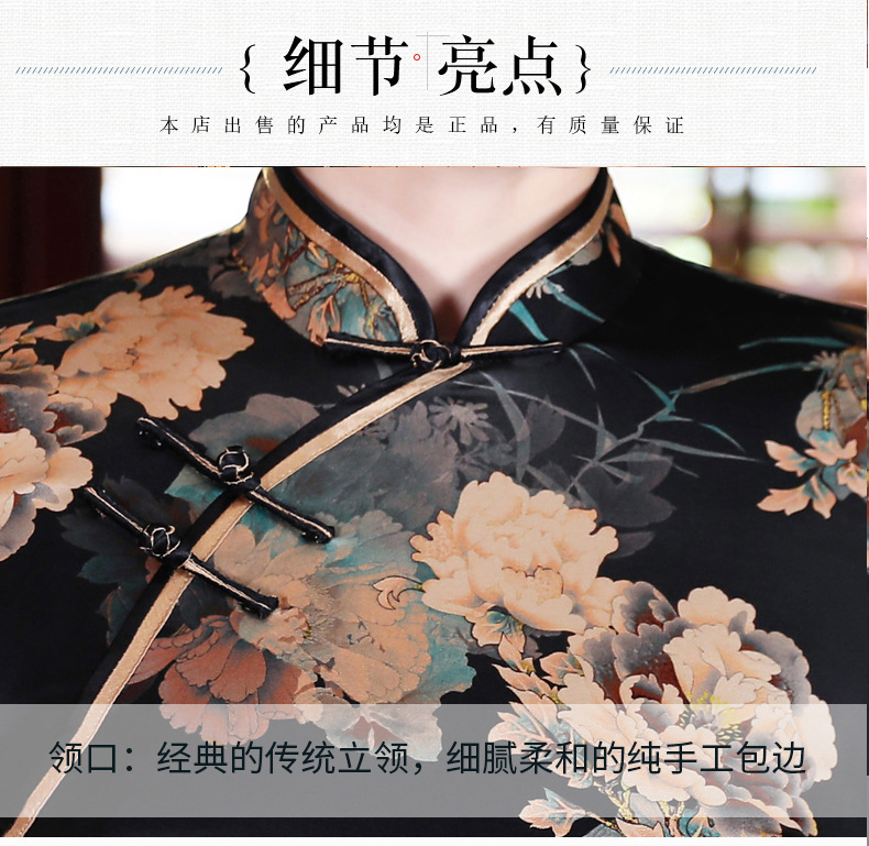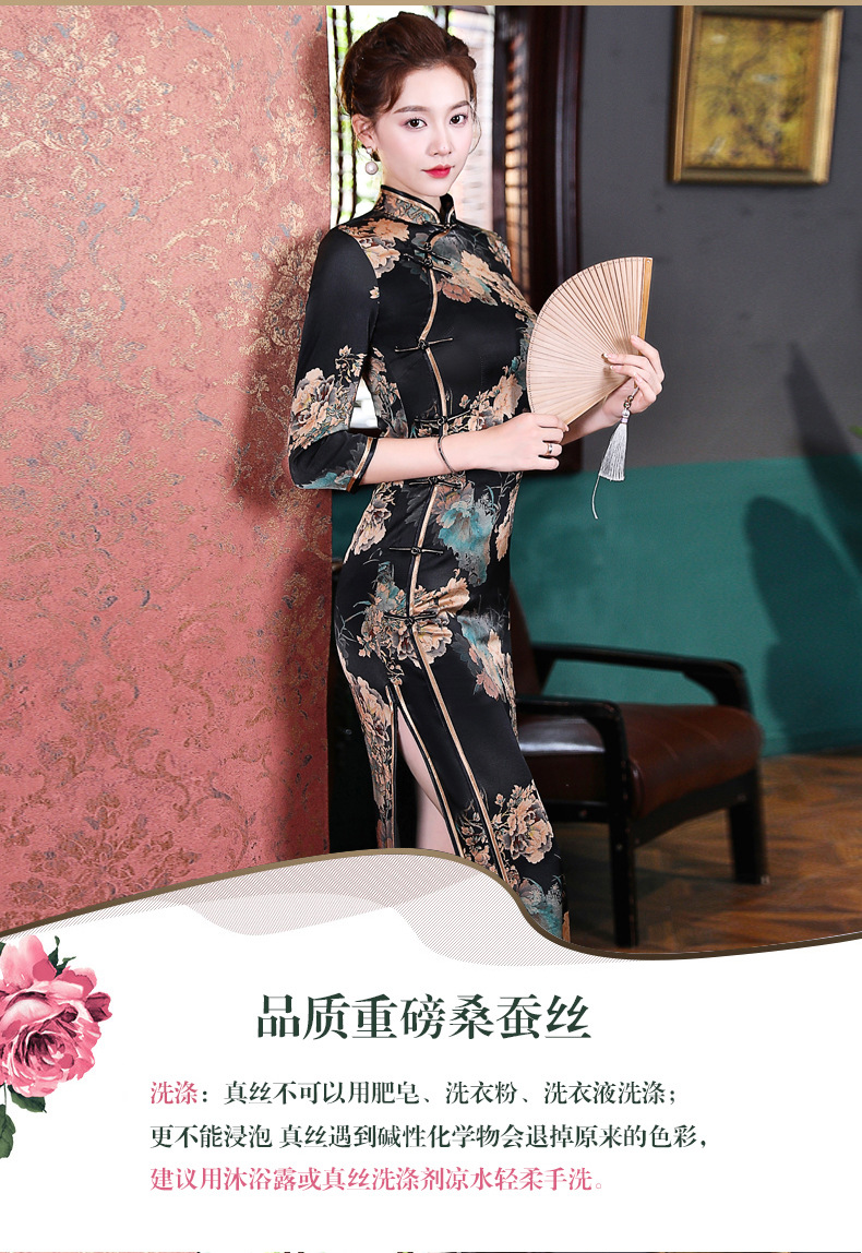 上海旗袍厂WX-2183桑蚕丝真丝旗袍中国风秋冬长袖女改良日常宴会优雅气质年轻款