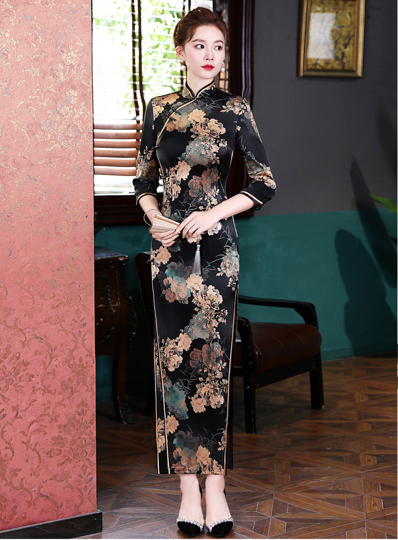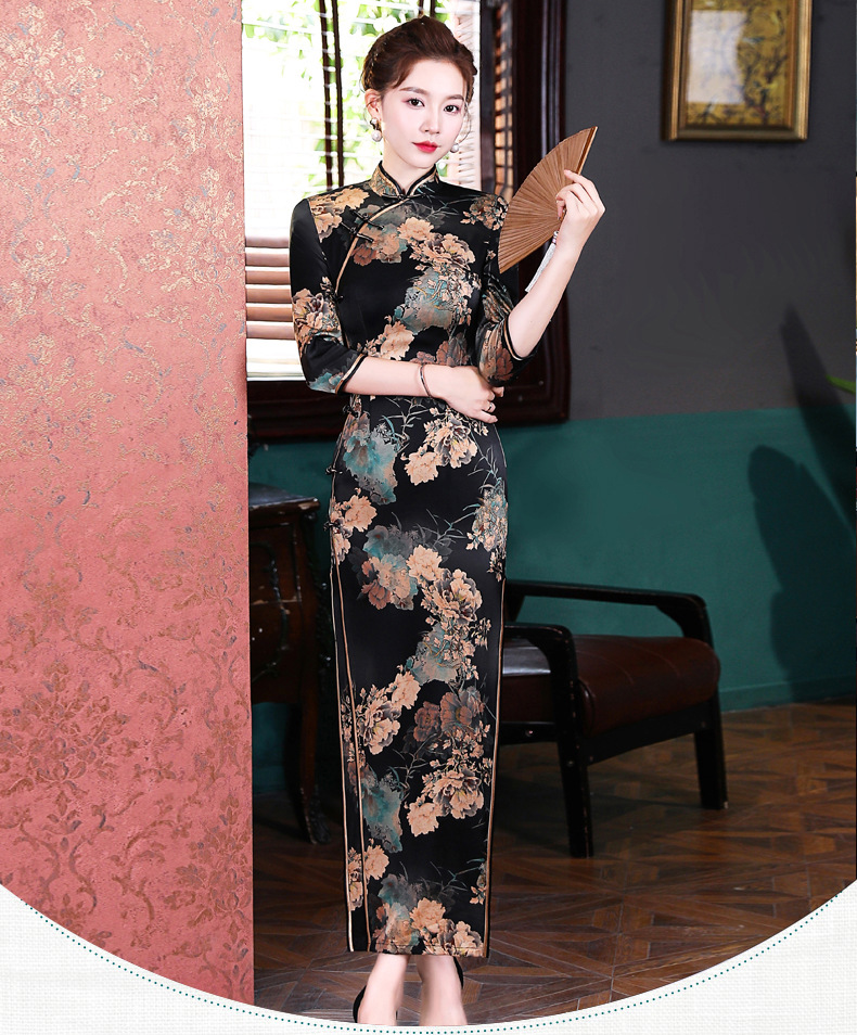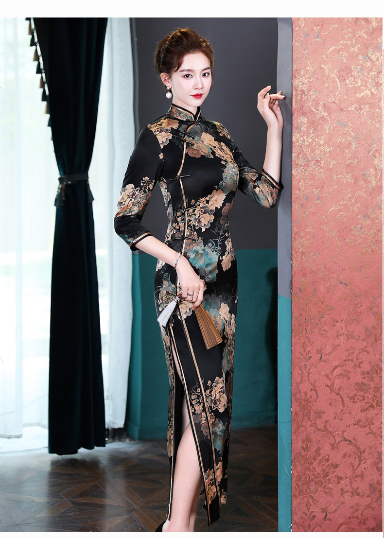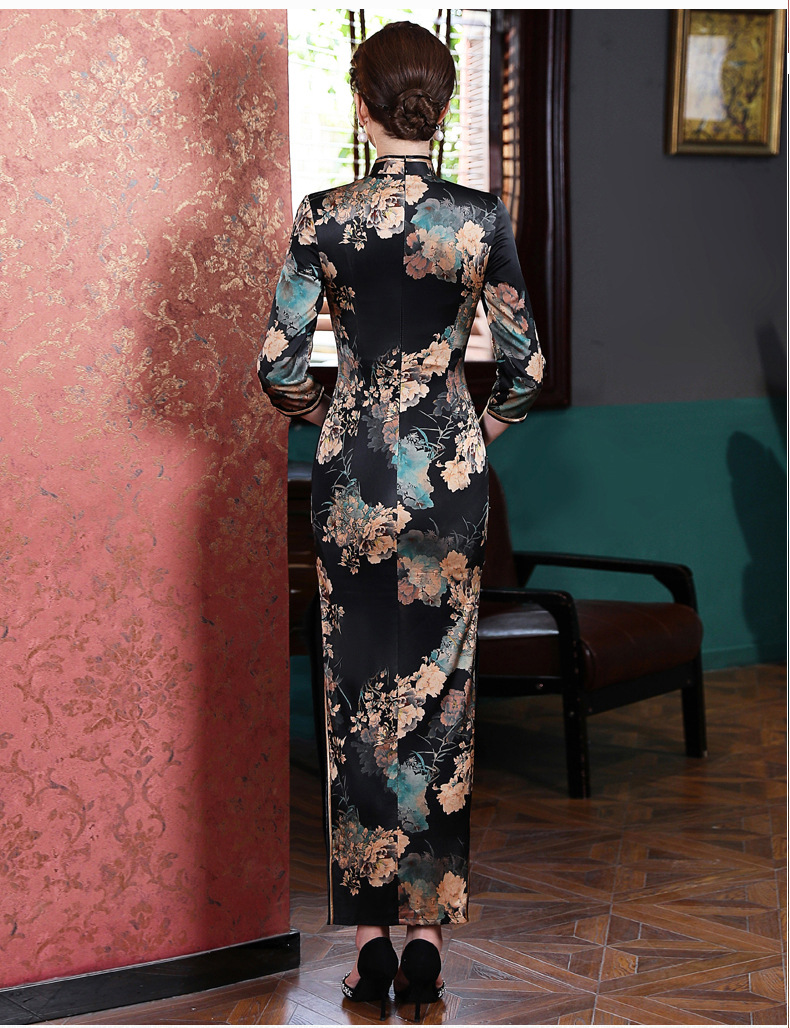 上海旗袍厂WX-2183桑蚕丝真丝旗袍中国风秋冬长袖女改良日常宴会优雅气质年轻款