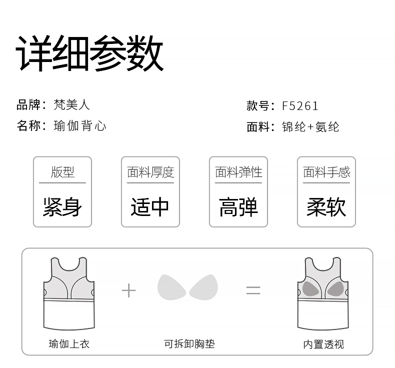梵美人 F5261 瑜伽背心 带胸垫 云感提花蕾丝