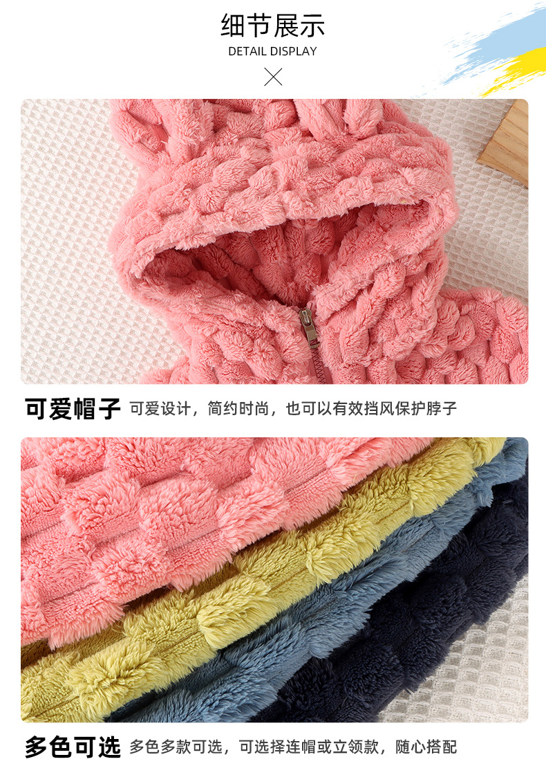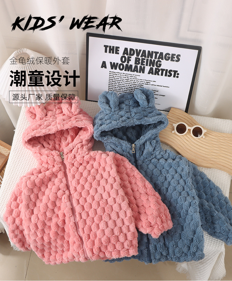 【金龟绒保暖外套,多色多款可选!】儿童秋冬季毛毛绒带帽外套男女童洋气休闲法兰绒拉链保暖上衣不仅能为儿童提供温暖,还能增加穿着的舒适感lm