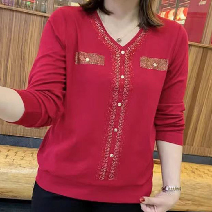 YX-271985593373 中老年女秋装长袖T恤四五十岁穿中年春秋打底衫洋气妈妈针织上衣