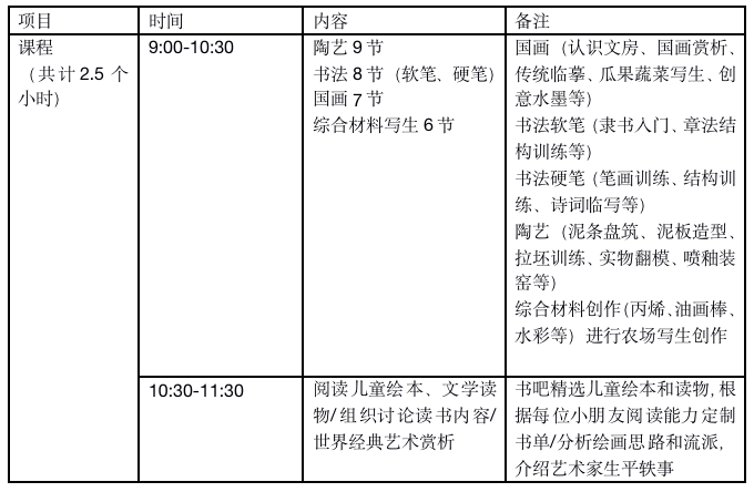 绿手指·九畝艺术工作室结合自身专业开设艺术绘画、绘本/名著赏读、经典艺术作品赏析三课结合的暑期艺术课程。农场的娱乐设施没有那么丰富,却有足够多田园风景和草木;工作室授课内容没有那么多样,但国画和陶艺足够专业;书吧没有过多电子设备,却有符合儿童兴趣的读物和艺术专业画册。