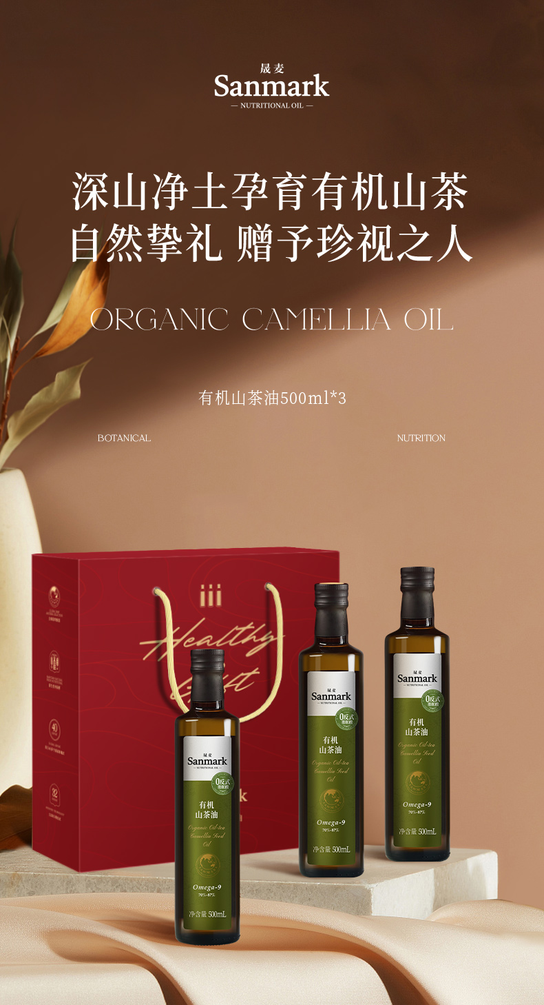 【OMEGA9系列】0反式脂肪酸热炒有机山茶籽油500ml*3礼盒装-会员专享