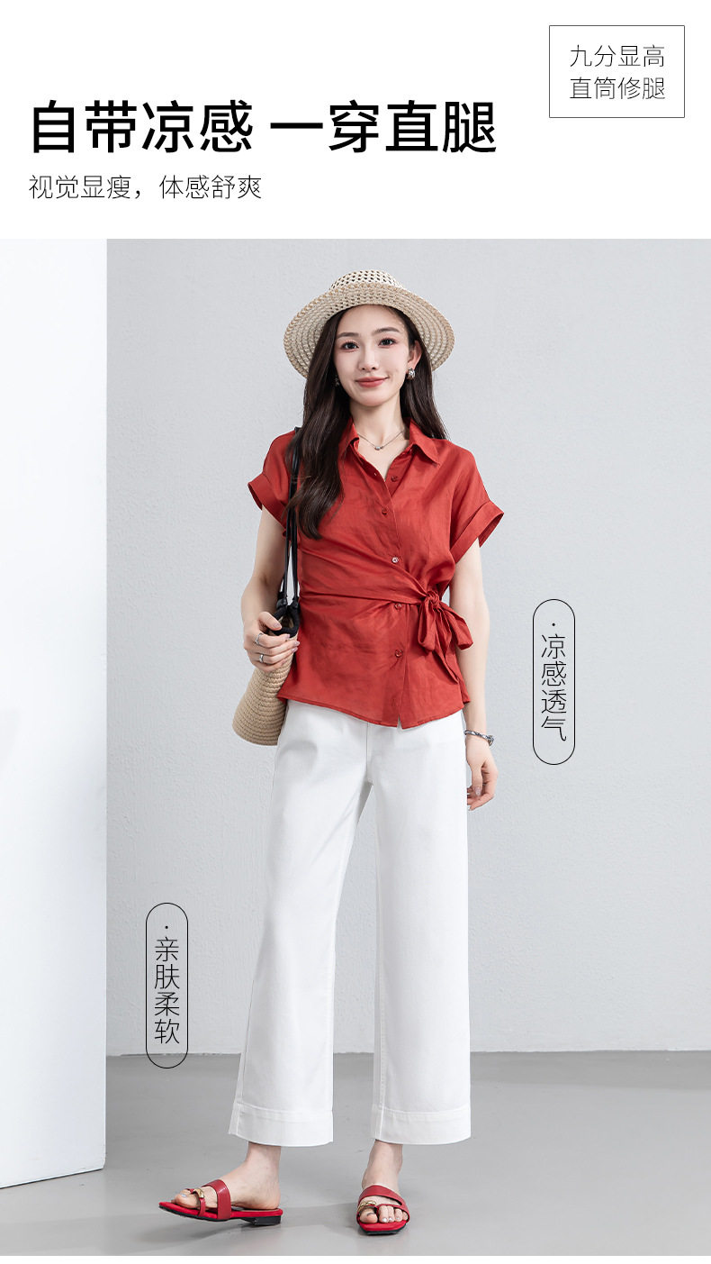 「高货xg」全新升级【铂金会员192/天猫259/差价67】(05740)洛诗琳气质百搭白色阔腿裤2026春季小个子高腰休闲九分裤