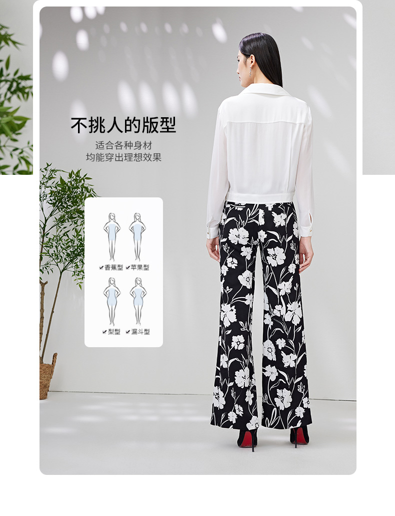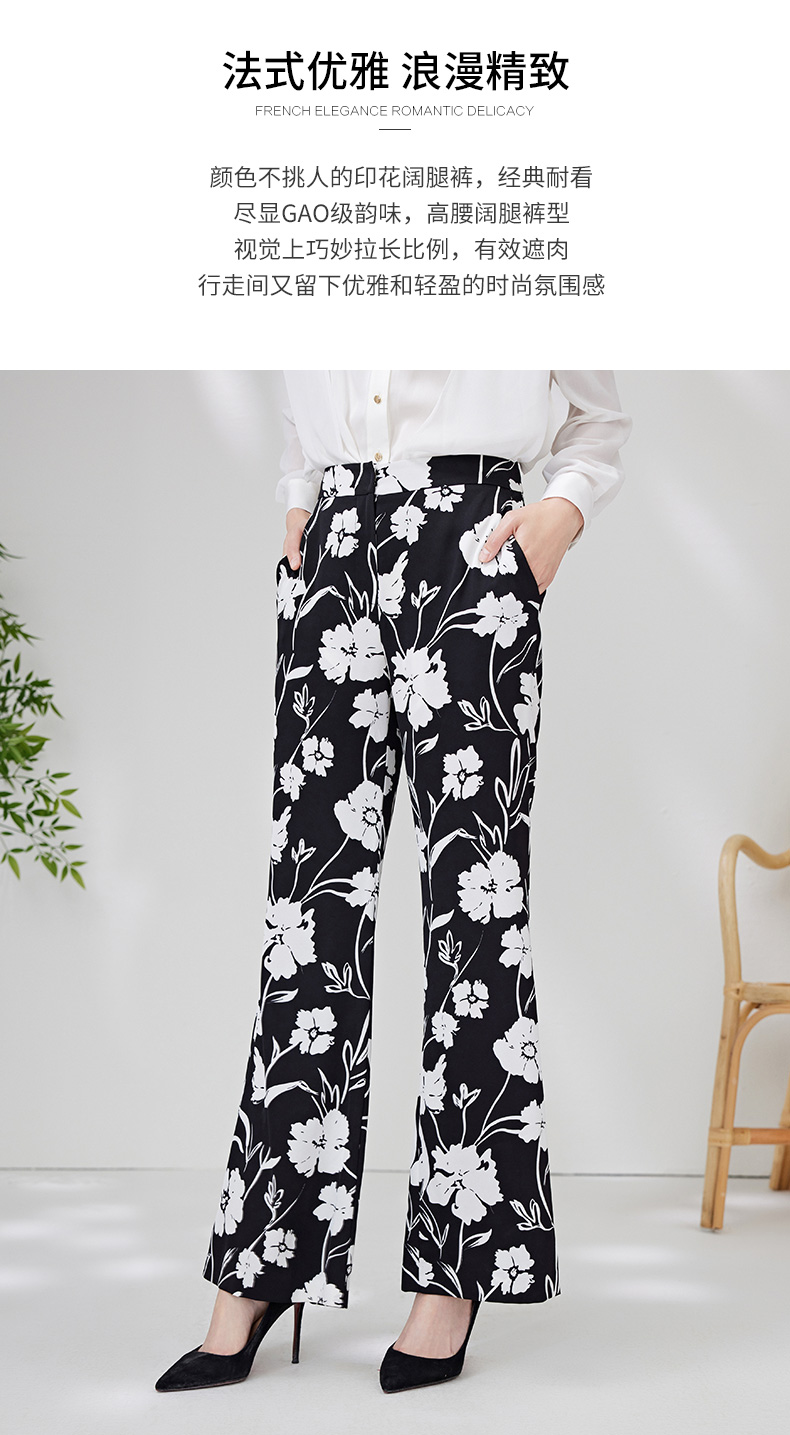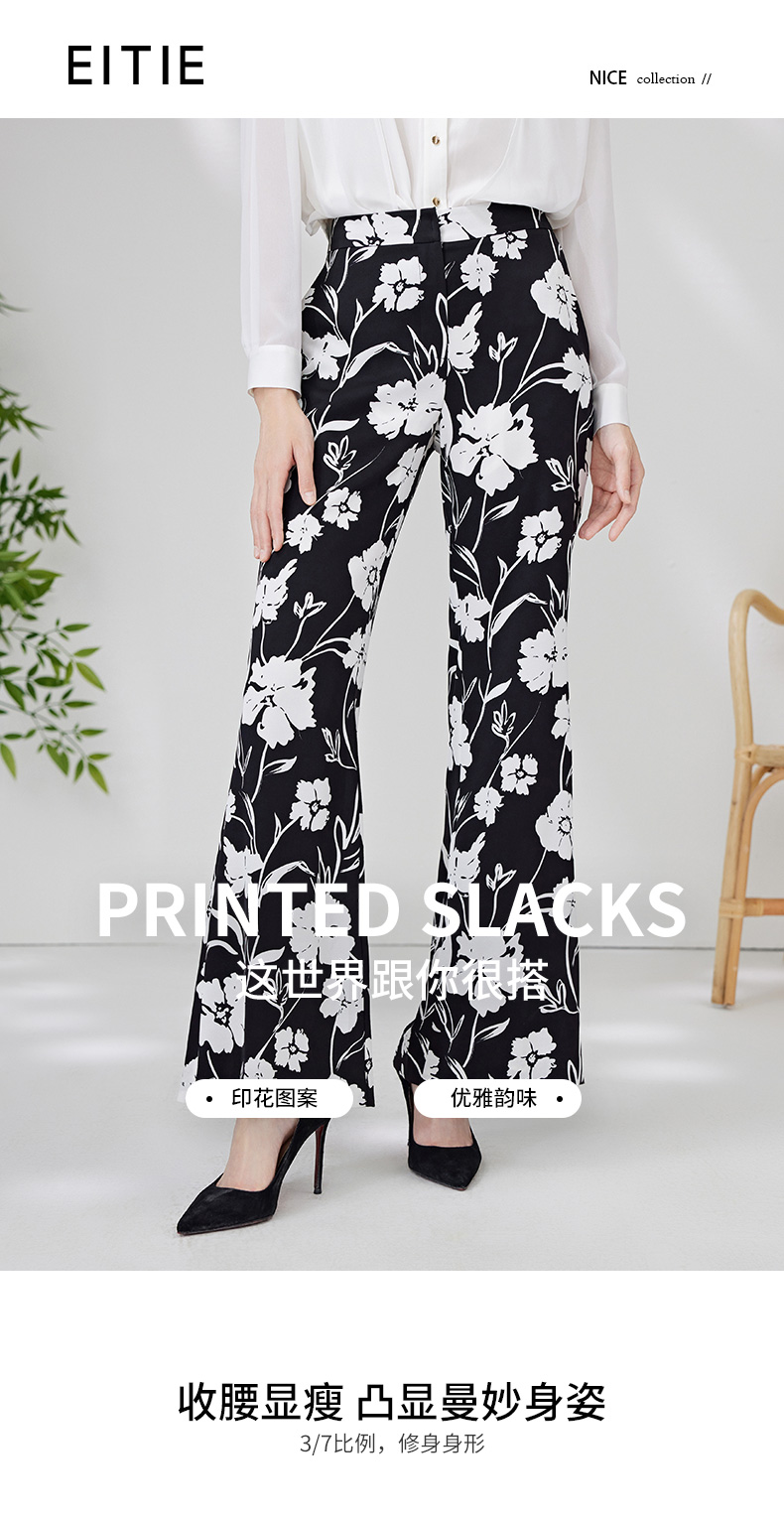 EITIE爱特爱夏季新款印花长裤宽松直筒休闲女裤7005703