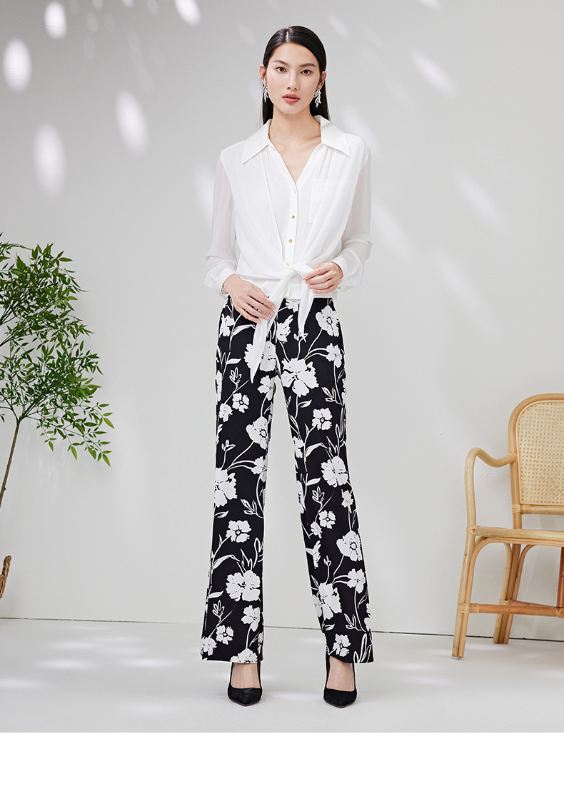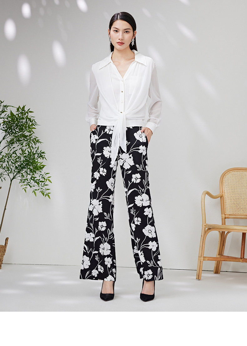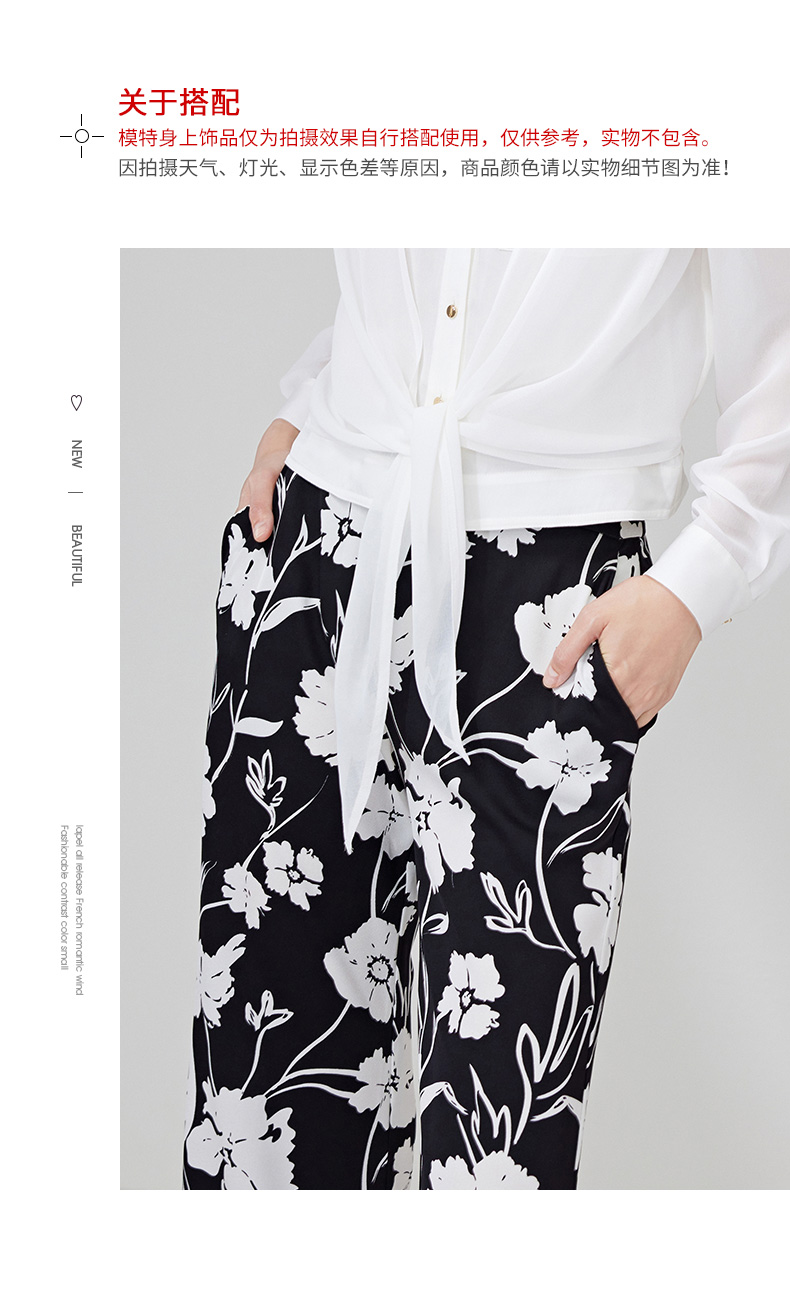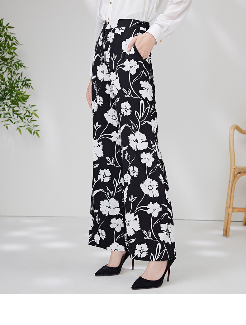 EITIE爱特爱夏季新款印花长裤宽松直筒休闲女裤7005703