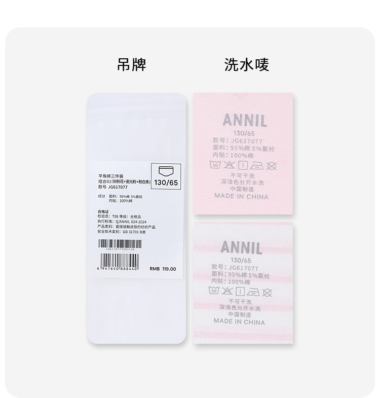 【实体店同款】女童平角裤三件装春季新款安奈儿童装JG617077