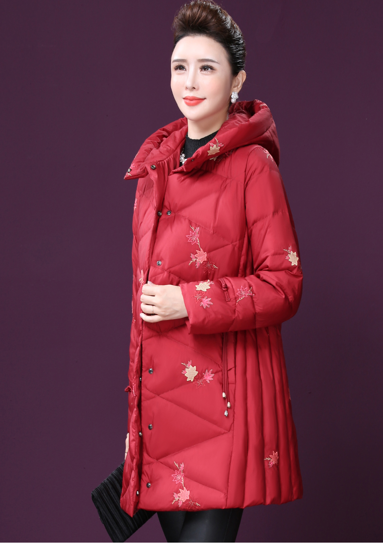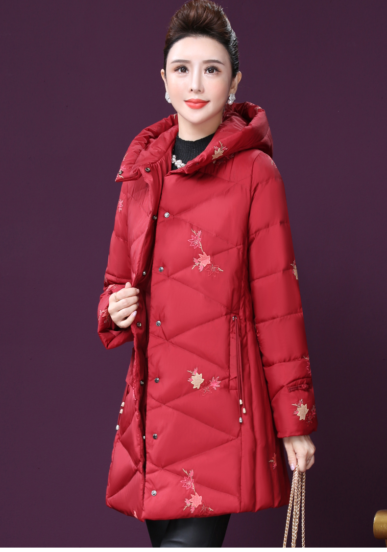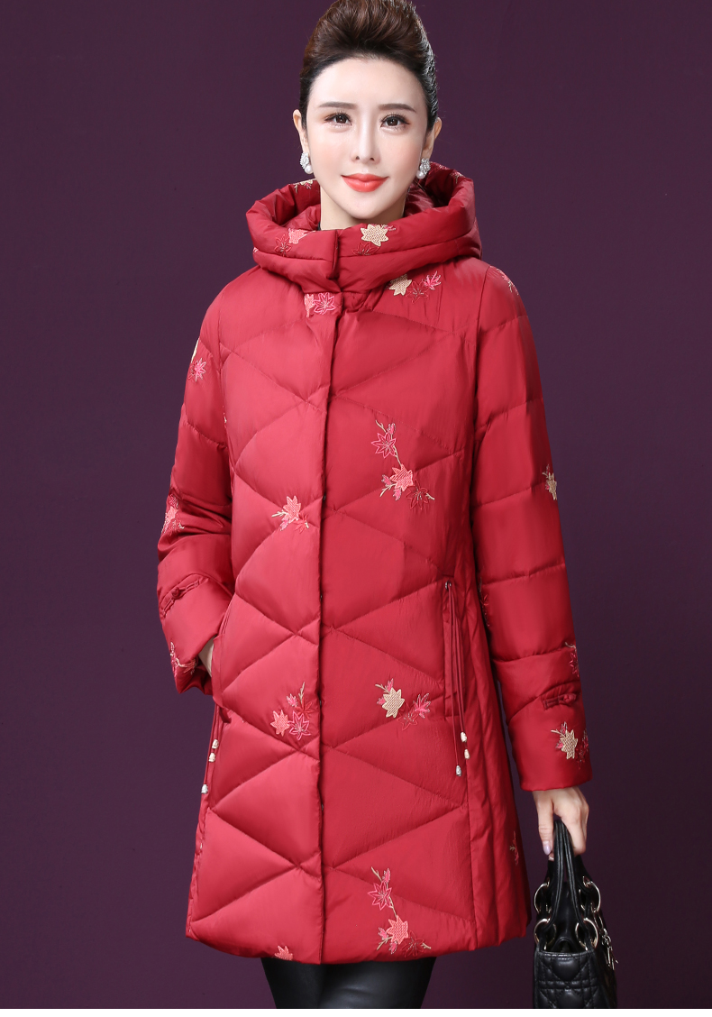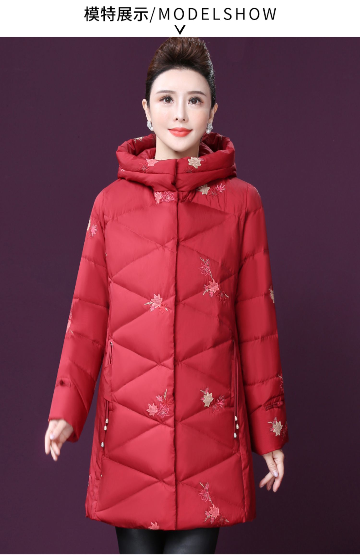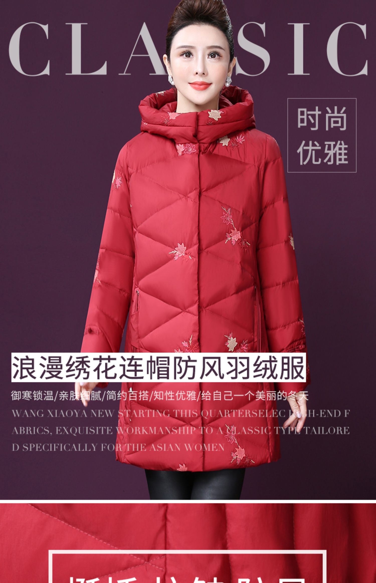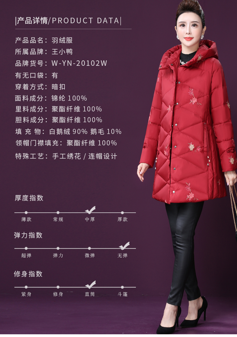 WXY-YN-20102W新款时尚气质宽松连帽保暖刺绣白鹅绒羽绒服外套